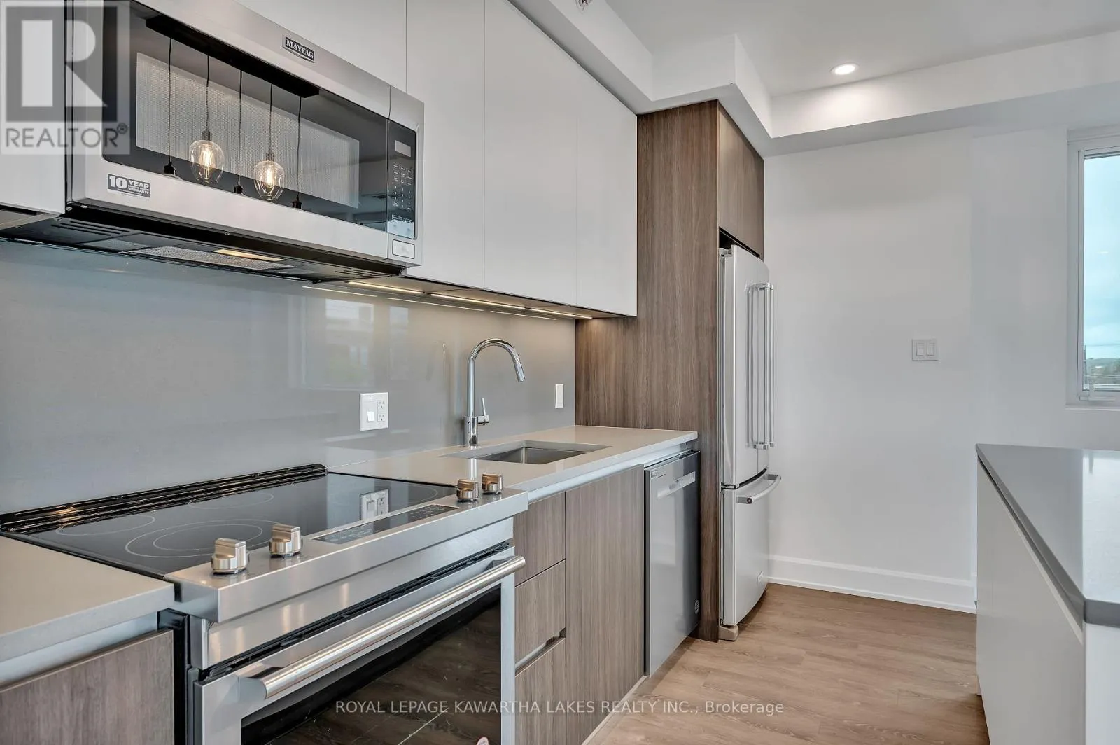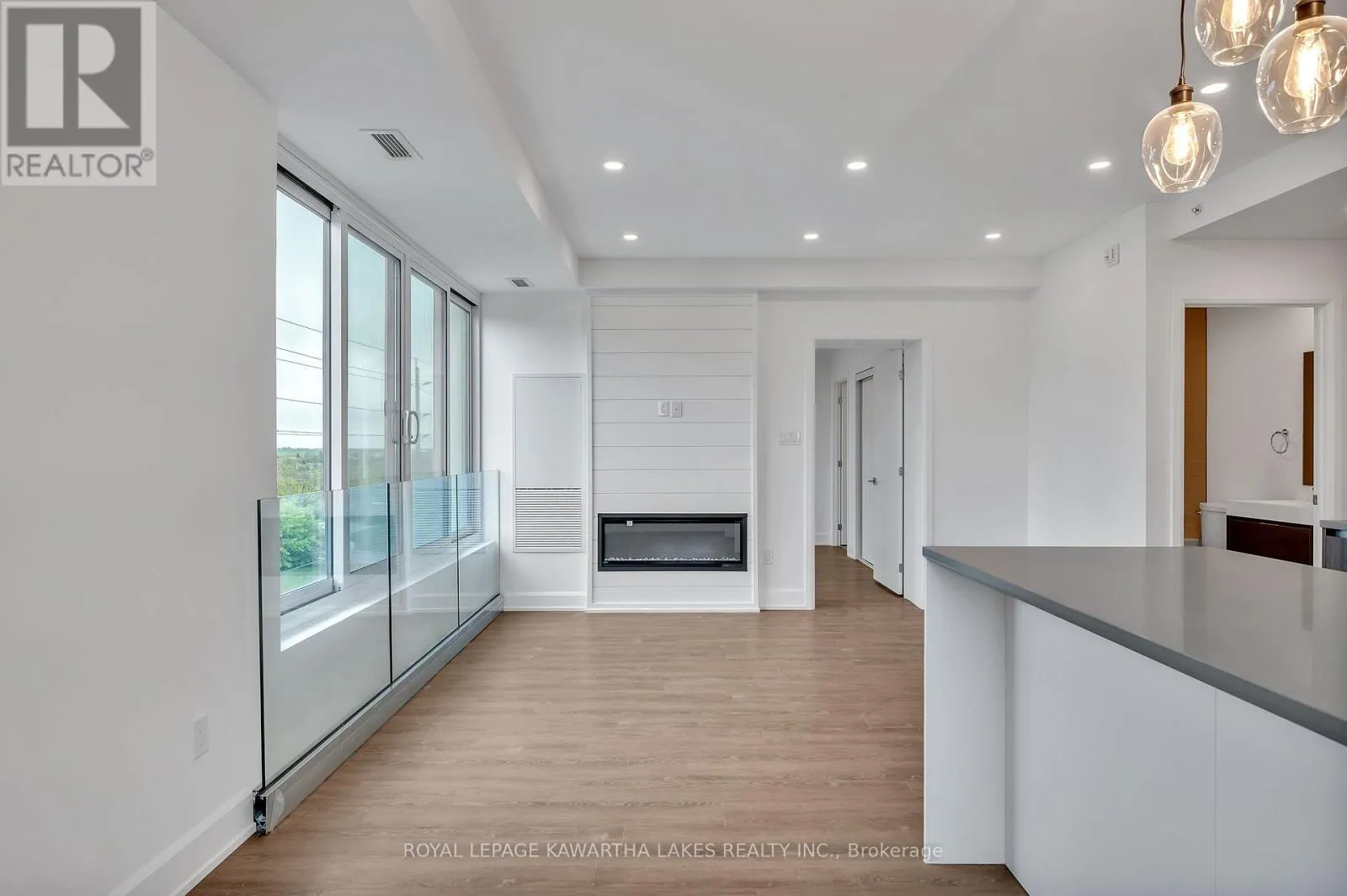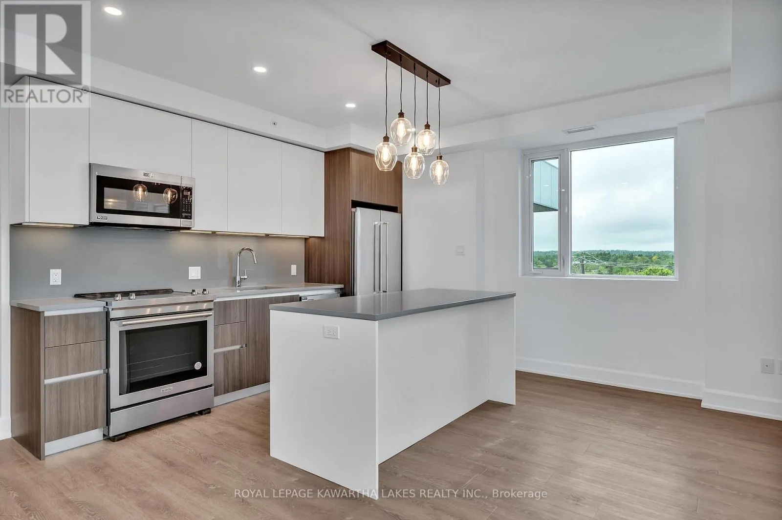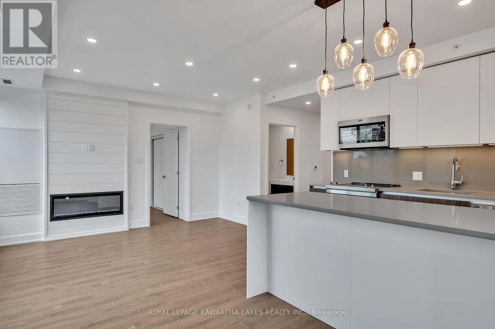 Cross Streets: Corner of Armour Road & Hunter Street East. ** Directions: Armour Road & Hunter Street East. Luxury Living in the Heart of Peterborough. Discover elevated condo living in this brand-new, stylish residence offering an open-concept layout with 9-foot ceilings and Gas Fireplace. The chef-inspired kitchen features an oversized island, quartz countertops, built-in stainless steel appliances, and custom cabinetry, perfect for cooking and entertaining. This modern condo includes 2 spacious bedrooms and 2 sleek bathrooms, designed for comfort and style. Designer upgrades are found throughout, creating a refined living experience. Enjoy top-tier amenities, including a contemporary lobby, 8th-floor lounge and party room with a two-sided fireplace, a private dining area that opens to a stunning rooftop terrace with panoramic views of the city. Stay active in the fully equipped fitness centre and take advantage of the on-site pet washing station. Ideally located in East City, you're steps from shops, cafes, bakeries, parks, and Rogers Cove Beach. Includes underground parking space P2-19 for added convenience. Move into Peterborough's most luxurious and vibrant condo community, where modern design meets unmatched lifestyle. Note - Heating costs are included in monthly condo fees. (id:27476)