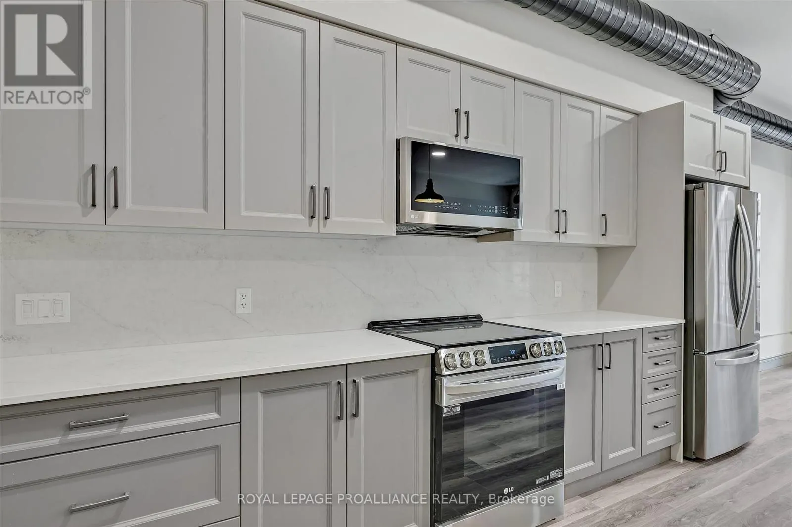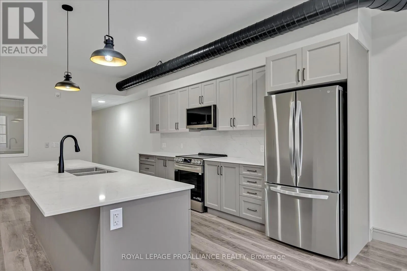 George St & Hunter St One Bed | One Bath | 1300 SQ FT | In-Suite Laundry. Finding a one-bedroom downtown Peterborough with this much space is rare, and this one is worth a closer look!! Welcome to Unit 1B at 380 George Street, a never-before-occupied, fully renovated 1-bedroom suite in a beautifully maintained building with controlled entry and timeless historic charm. With 1,300 sq ft of living space, this unit features a sleek kitchen with LG stainless steel appliances and a breakfast bar, an open-concept layout with dimmable lighting, large windows, a dedicated office nook, in-suite laundry, and custom closet organizers. A great fit for professionals, active downsizers, mature students or anyone looking to enjoy a walkable lifestyle with great food, culture, and community just outside their door. Only 45 minutes to Durham Region and 90 minutes to Toronto, experience the energy of downtown life at a smaller cost than the big city. $2,250/month + hydro, heat/AC, and internet. Water & HWT included. No smoking or vaping. Rental application, credit check, employment letter & references required. * Offsite parking space available at additional cost. (id:27476)