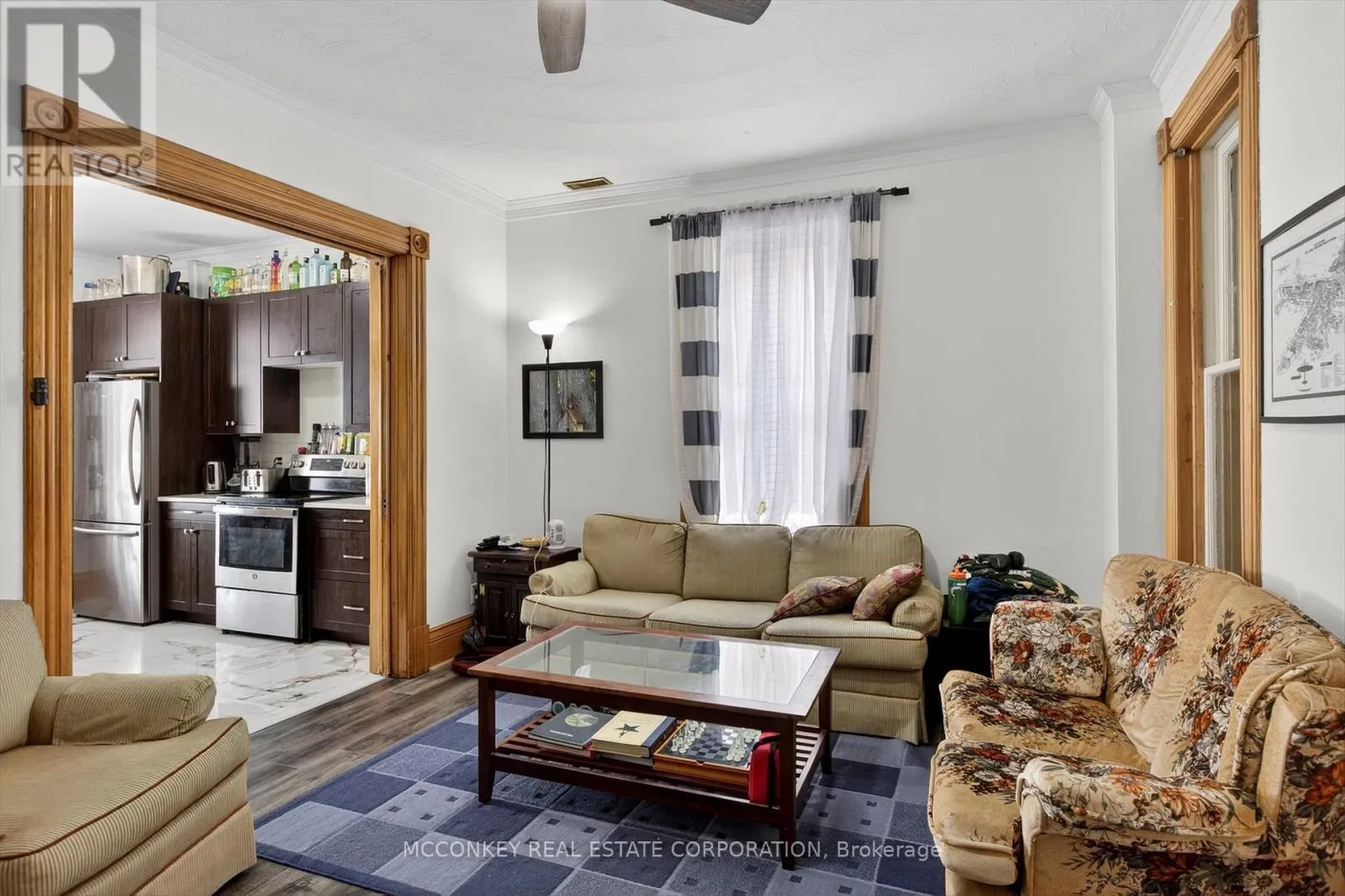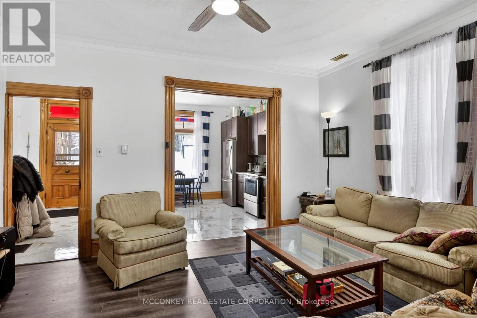 Cross Streets: Reid St & McDonnel St. ** Directions: Hwy 115 N. to Parkway, to Clonsilla, left/N at Monaghan Road, right /East on McDonnel to Stewart St. Where heritage meets modern style, this family home has been lovingly owned by three generations of the same family. The property features three bedrooms, a Newer Updated 4-piece bathroom, and a 2-piece bathroom, as well as a beautifully renovated kitchen by Buchanan kitchens, showcasing exquisite porcelain tiles. The restored wood trim and stunning stained glass windows contribute to the home's unique charm. There are French pocket doors All Glass 100 years old, in wall of the living room. A modern 4-piece bathroom on the main floor, featuring laundry facilities, and three spacious bedrooms on the second floor, accompanied by a 2-piece bathroom, this property offers the perfect blend of style and functionality. Its proximity to PRHC, Jackson's Park, and downtown's excellent dining options makes it an attractive option for first-time buyers and investors, particularly given its potential for rental income from Trent University students. (id:27476)