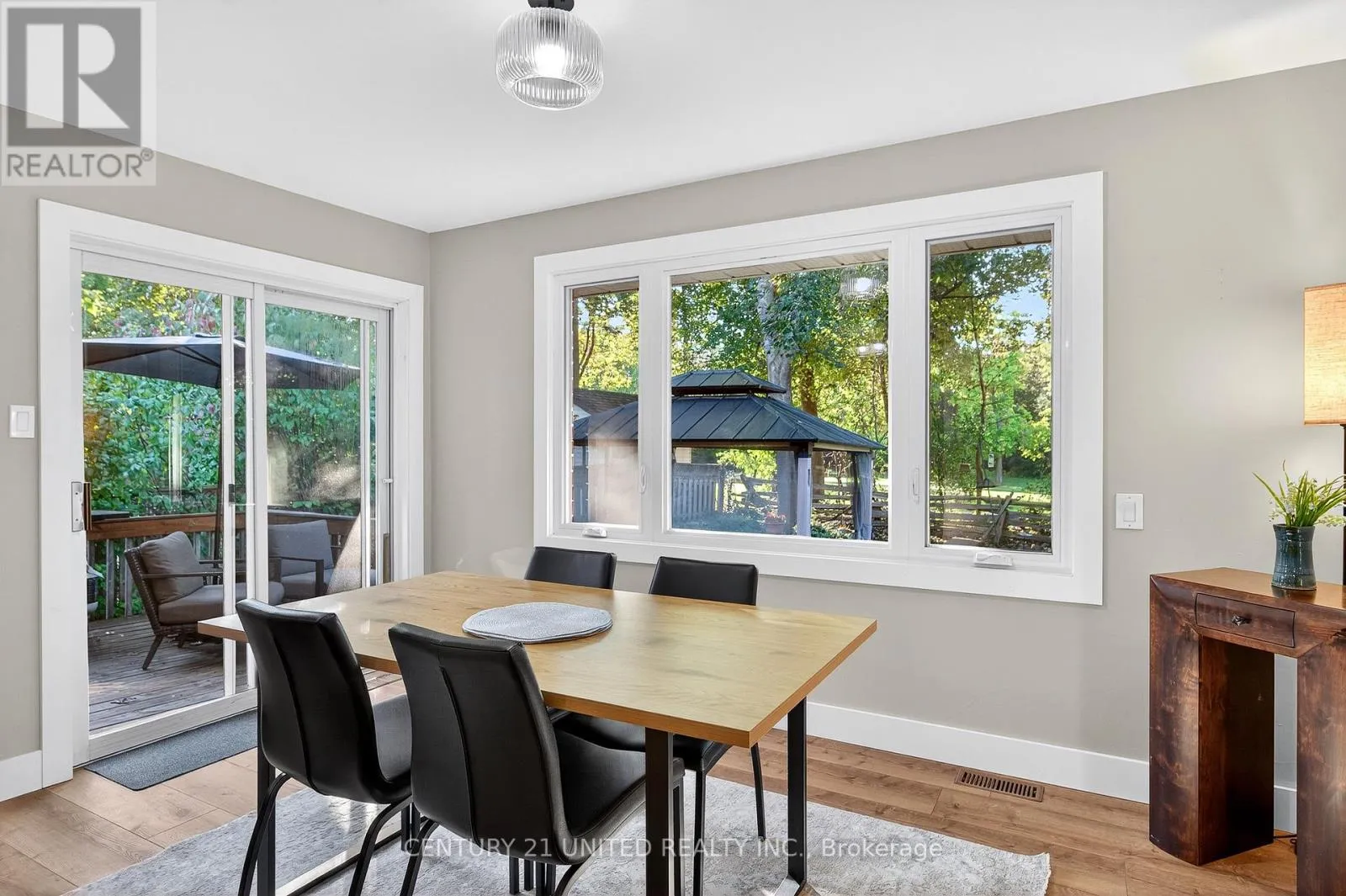Frances Stewart Road Finally a home with enough space for your growing family, in a fantastic neighbourhood, backing on to a prestigious golf course! 1309 Scollard Drive has 5 bedroom, 3 and half baths, a 2 car garage, and has had a number of recent updates and improvements. The main floor is all about rooms to gather. There's an updated eat-in kitchen overlooking the back yard and golf course, and a more formal dining room as well. In additional to the living room there is also a cosy family room with fireplace. A rarity among larger homes in the area, all 5 bedrooms are located on the upper level, plus two full bathrooms including the primary ensuite. The lower level is versatile with 2 rooms that could either be additional bedrooms or office/rec room spaces. Plus there's a ton of storage and a full bathroom on the lower level as well. The showstopper is the backyard. Beautifully landscaped and leading right out to the Peterborough Golf and Country Club. This is also a great spot for snowshoeing and cross country skiing in the off season. This is a pre-inspected home. (id:27476)
