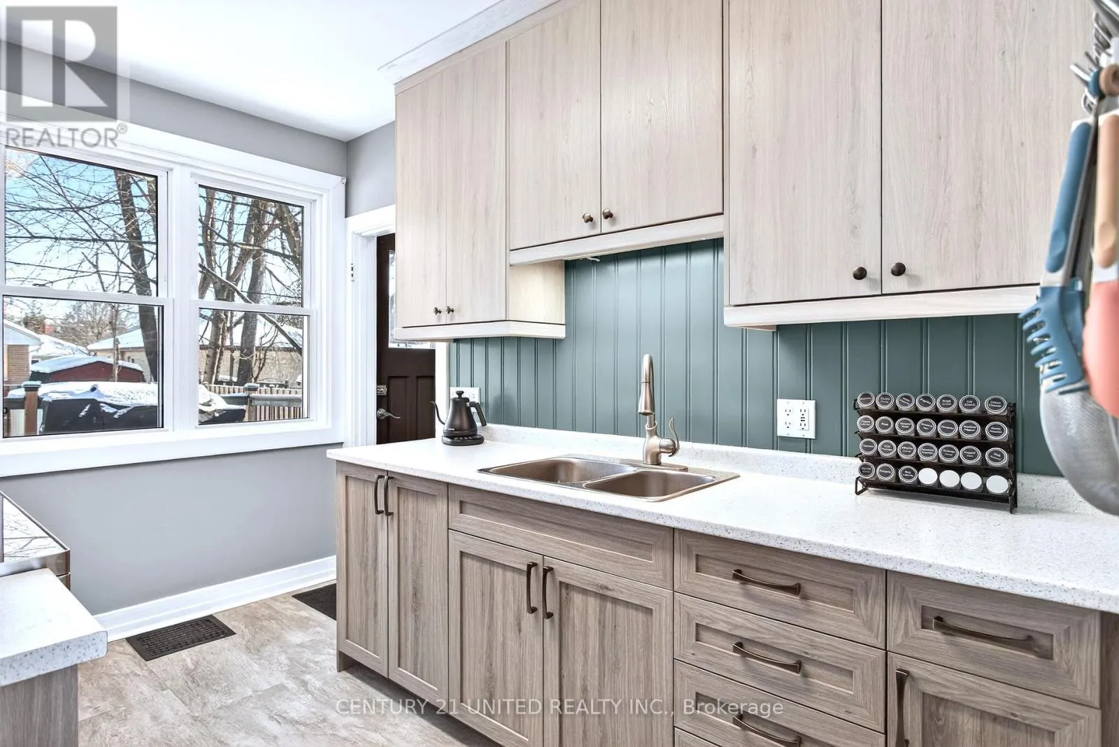 Dumble Ave Lovely brick home set on a quiet north-end cul-de-sac, featuring a brand new 2025 kitchen with new stainless steel appliances overlooking a fully fenced, private backyard. The upper level includes a newly updated bathroom with a spa-like soaker tub, while the lower level offers a functional layout with a second new bathroom featuring a beautiful walk-in shower (with glass being installed soon), quartz-topped vanity, and convenient stacked laundry. New flooring has been added in select areas, and a newer, large back deck extends the living space outdoors, with direct access to the lower level. A separate entrance provides flexibility and potential for an in-law suite. Close to Trent University, transit, schools, and everyday amenities - a north-end home with meaningful updates throughout. (id:27476)