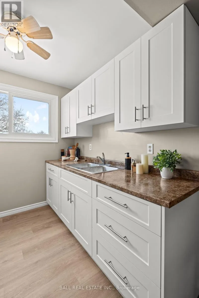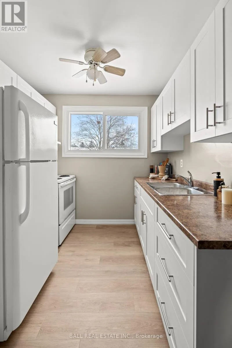 Cross Streets: Southlawn & Sydenham. ** Directions: River Rd South to Southlawn to Sydenham. This beautifully updated townhouse presents an exceptional opportunity for first-time buyers or those seeking low-maintenance living. Featuring brand-new flooring throughout both levels and a fully renovated kitchen with modern finishes, the home is truly move-in ready. Freshly painted in a neutral palette, the interior offers a bright and welcoming atmosphere. The partially finished basement provides additional living space with excellent potential for further customization to suit your needs. Convenient on-site parking within the complex adds to the home's practicality and appeal. Don't miss the opportunity to own this charming, thoughtfully updated residence. (id:27476)