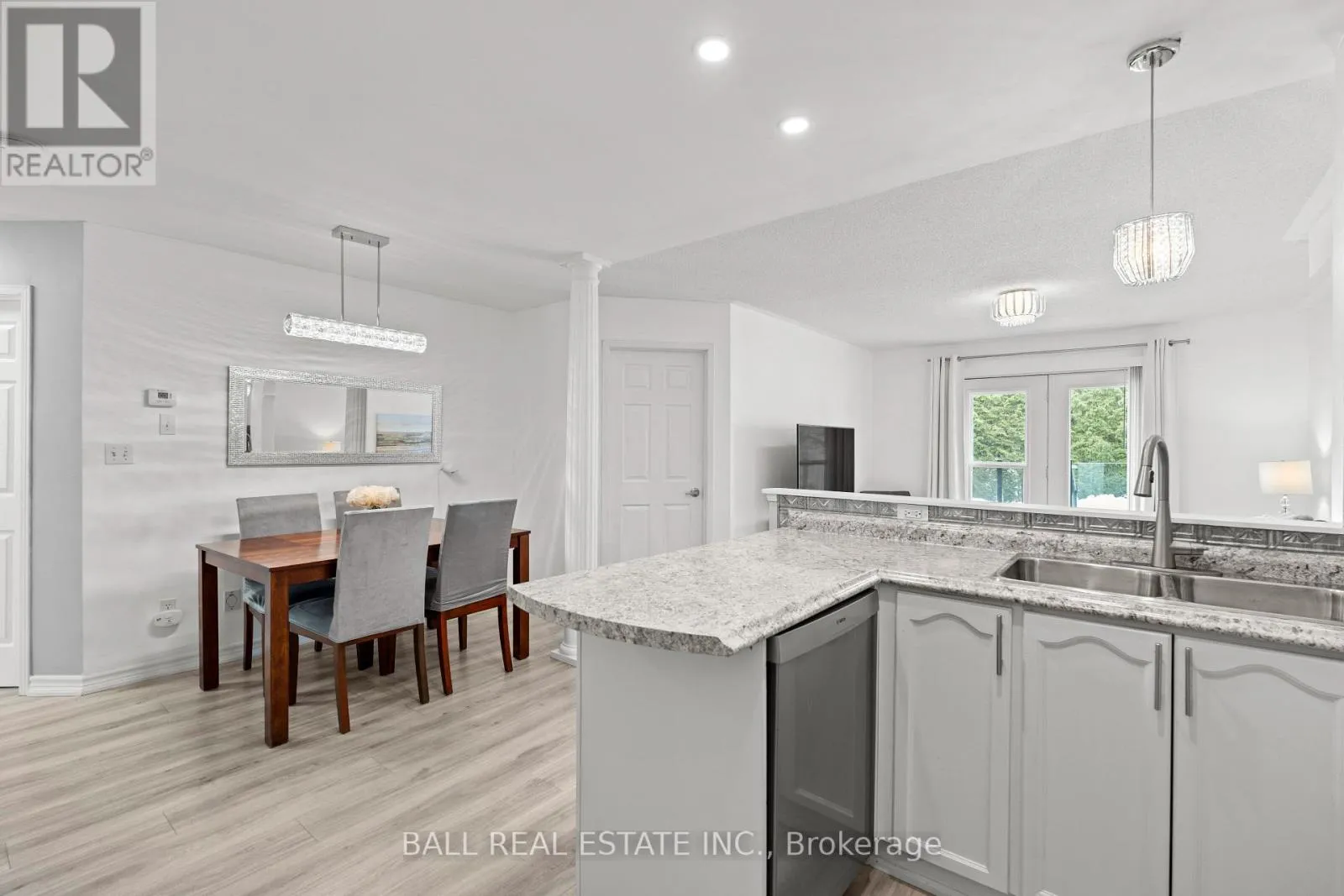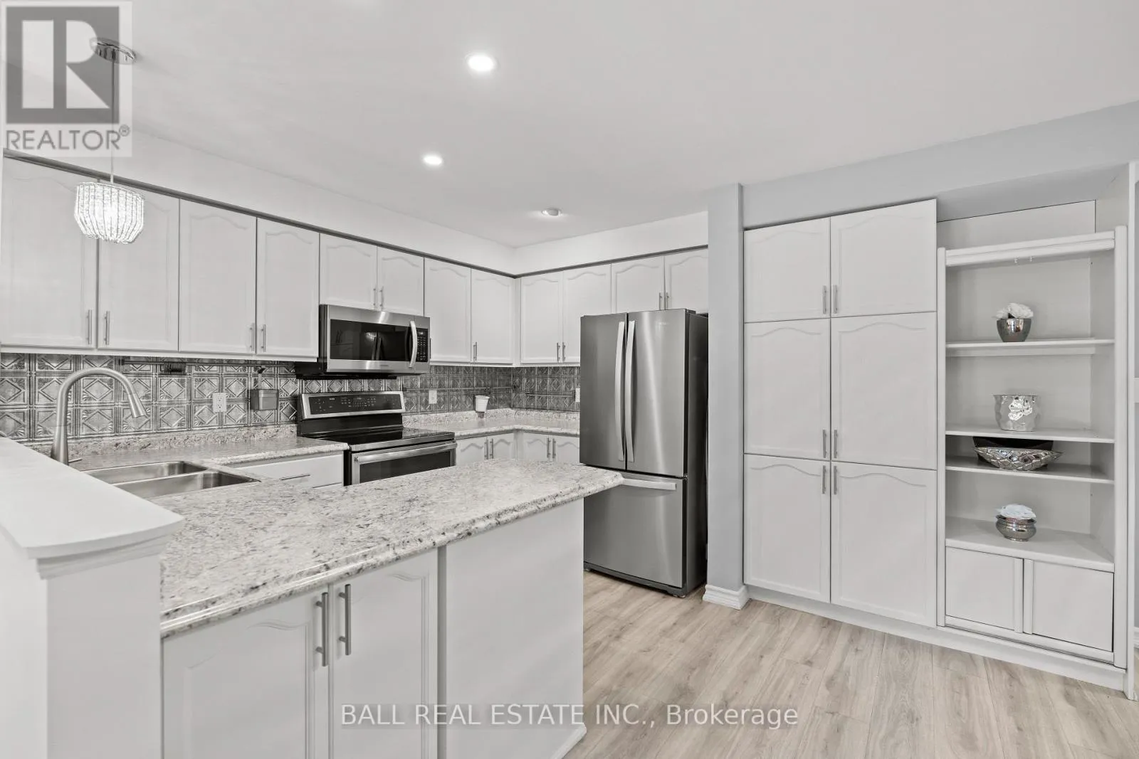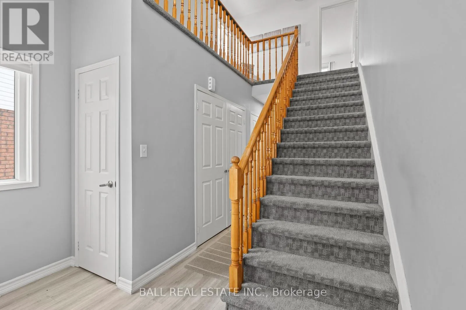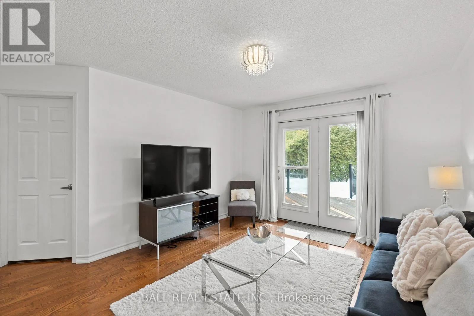 Glenforest Blvd and Eagle Cres Welcome to 1263 Eagle Crescent, a warm and inviting home tucked into one of Peterborough's sought-after West End neighbourhoods. Set on a quiet street and backing onto green space with a pond beyond, this property offers a rare balance of privacy and comfort while being just minutes to everyday conveniences and PRHC. The main level features a bright open-concept layout where the living, dining, and kitchen areas flow naturally together, creating a functional space for both daily living and gathering with family and friends. Large windows fill the space with natural light, and the majority of the home has been freshly painted with updated lighting fixtures throughout, giving it a clean, refreshed feel. The primary bedroom is conveniently located on the main floor along with an updated full bathroom and the added practicality of main-floor laundry. Upstairs, you'll find two additional bedrooms and another updated full bathroom, offering great separation for kids, guests, or a home office setup. Step outside to the backyard designed for both relaxation and entertaining, including a new wooden fence along the east side for added privacy. The deck features a retractable remote-controlled awning and a direct gas line hookup for the BBQ, perfect for summer evenings. The yard is supported by an ELF sprinkler system, and the 1.5 car garage includes a work bench for hobbies or storage. Located close to parks, schools, shopping, and amenities, this home combines everyday convenience with a peaceful residential setting. Cozy, functional, and thoughtfully updated in a family-friendly neighbourhood, it's a wonderful place to call home. (id:27476)