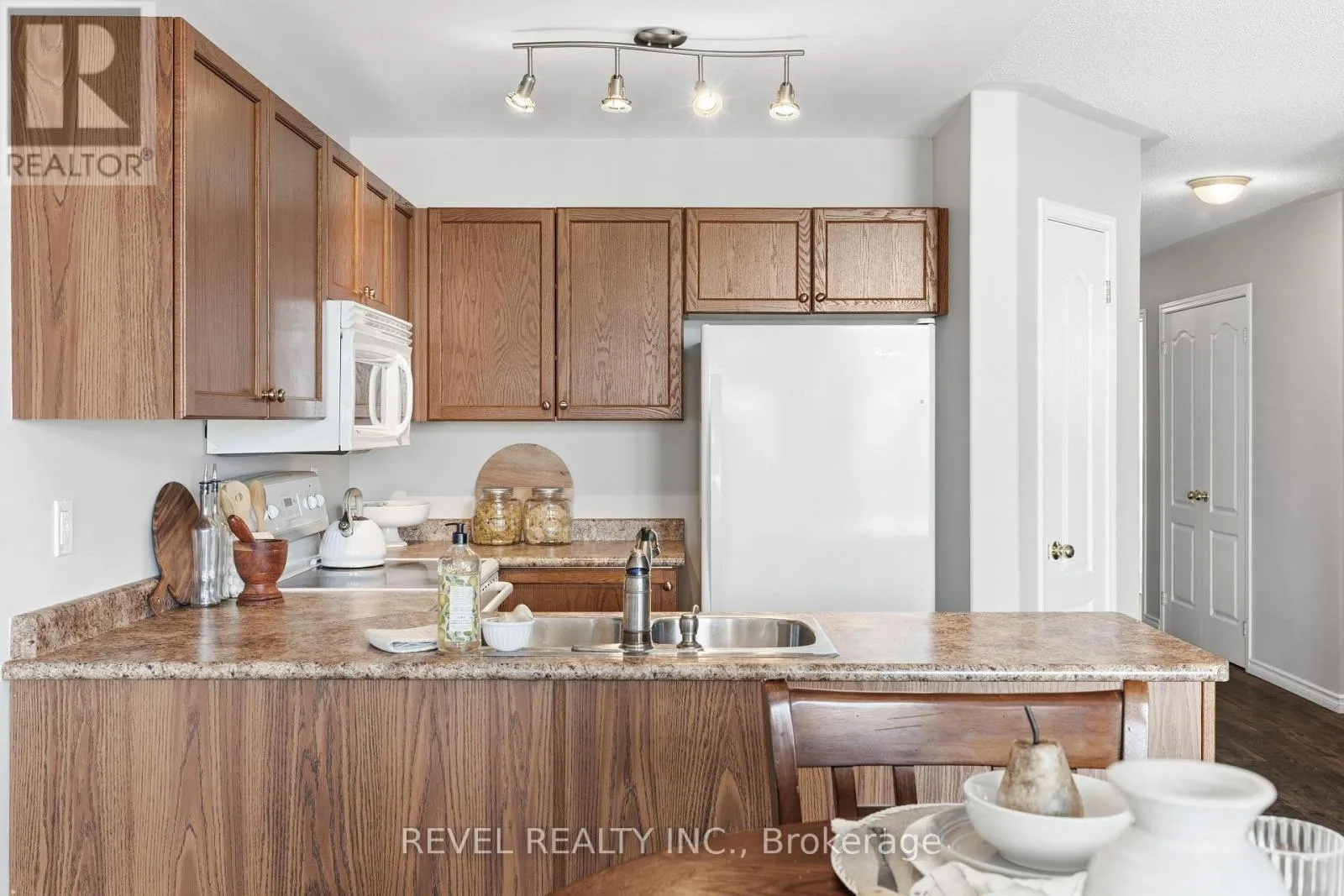 Spillsbury/Clancy Beautifully maintained raised bungalow located in one of Peterborough's sought-after west-end neighbourhoods. This bright and inviting 2+2 bedroom, 2-bath home offers a classic brick and vinyl exterior and an attached single-car garage. Gleaming flooring flows throughout the main level, highlighting a spacious living room with a coffered ceiling. The functional eat-in kitchen features a pantry and opens to the dining area with a walkout to deck, overlooking a yard-perfect for relaxing or entertaining. The main floor offers two bedrooms, including the primary bedroom and a second bedroom ideal for a nursery, guest room, or home office. Finished lower level adds incredible versatility, featuring an additional 2 bedrooms, second kitchen, full bathroom, laundry area, ample storage, and a full walkout, making it ideal for extended family or investment potential. Conveniently located close to shopping, parks, schools, golf courses, hospital, and places of worship. Move in ready and offering excellent investment or in-law suite potential-this home checks all the boxes. (id:27476)