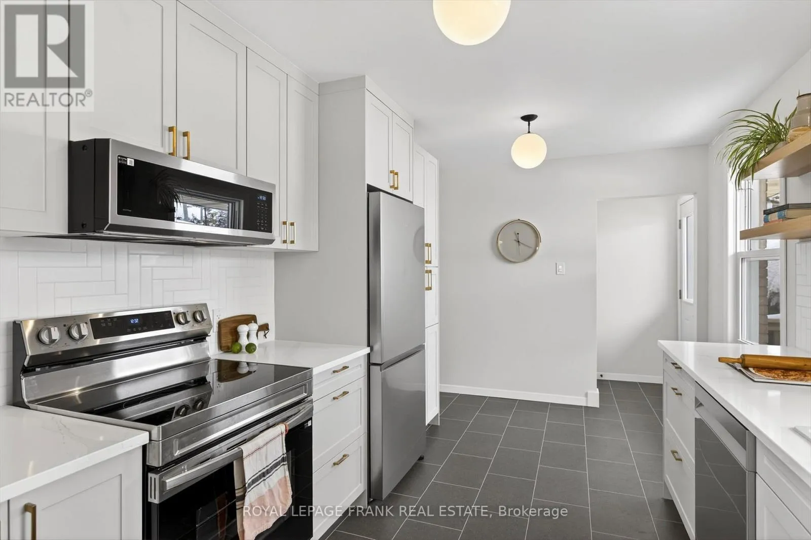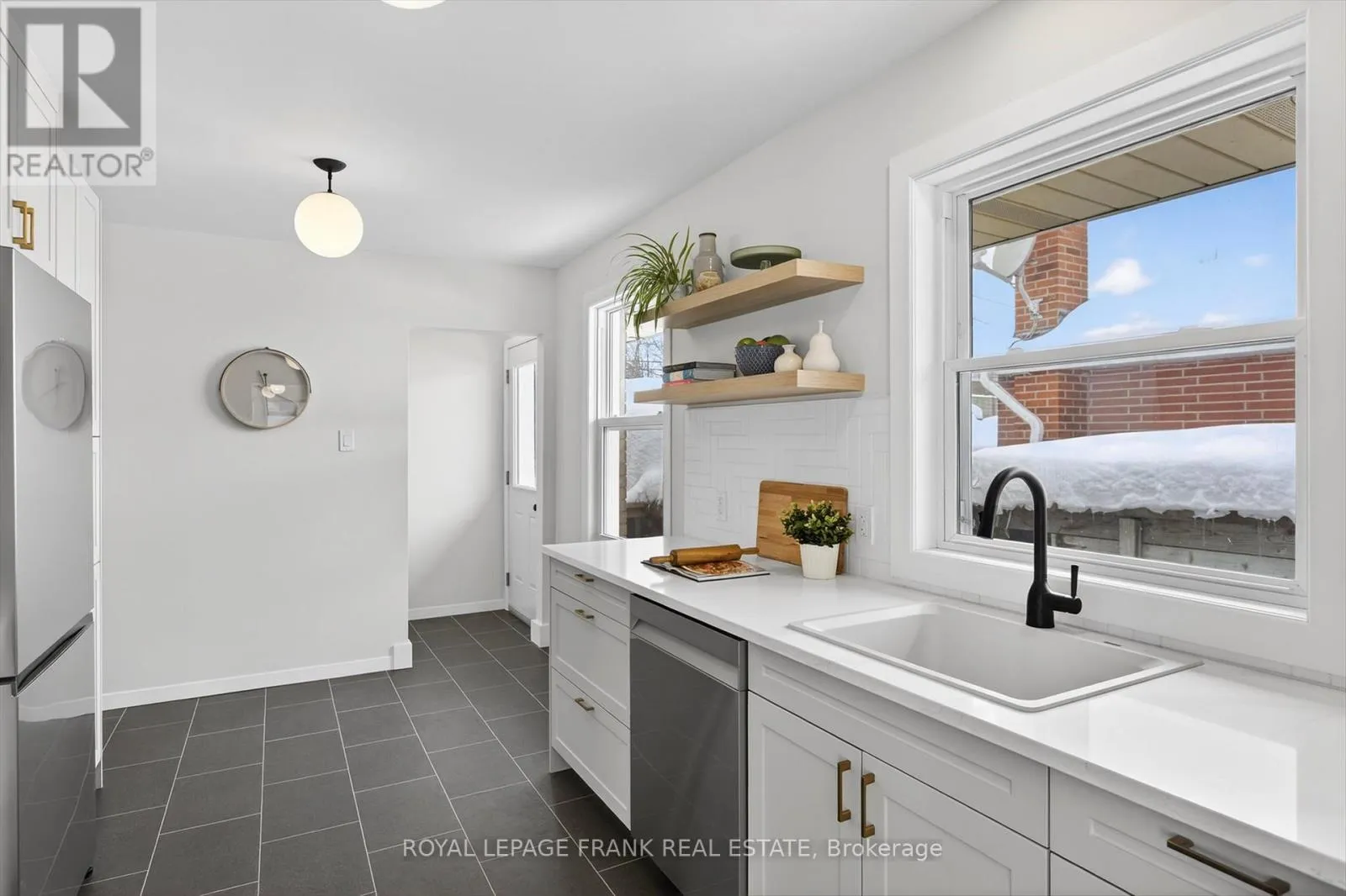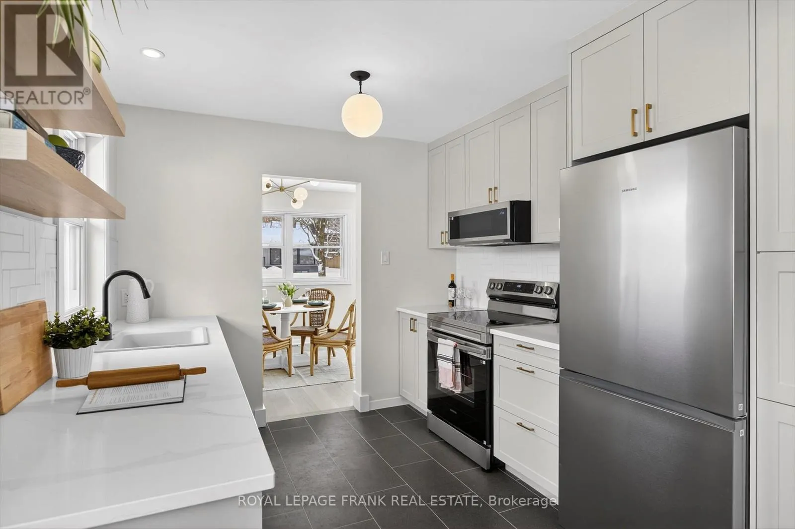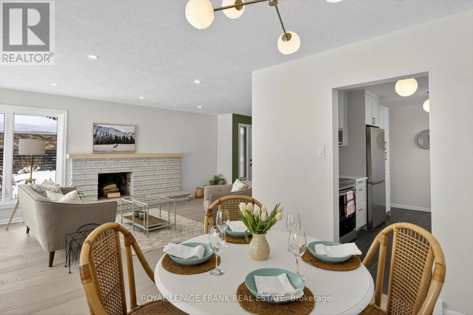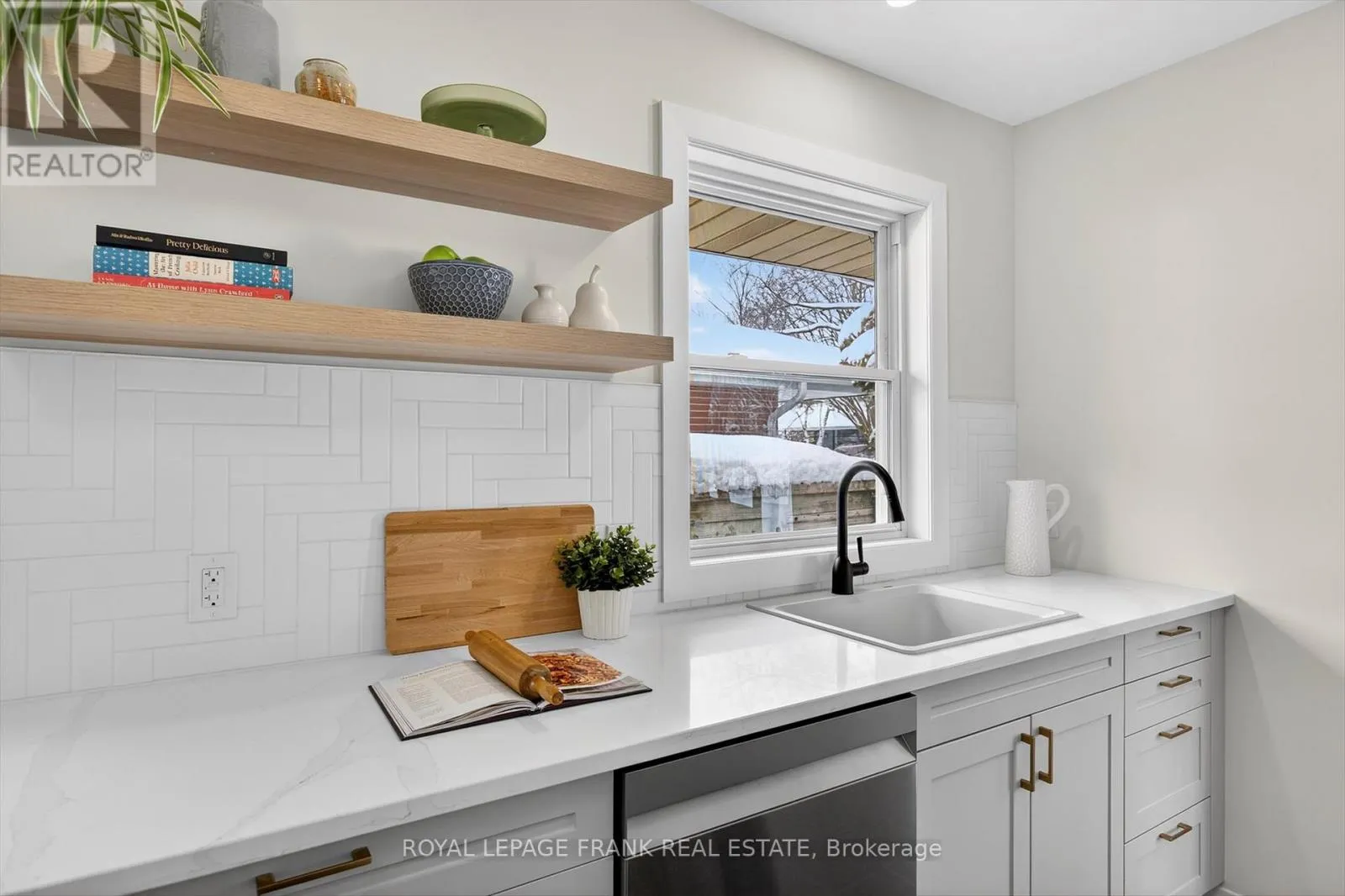 Cross Streets: Weller St. and Hopkins Ave. ** Directions: Off Weller St west of Monaghan Rd. This wonderful almost level-entry, three-bedroom bungalow has been newly renovated throughout with style galore. The bright, stylish living room flows nicely into the dining room; the fireplace, the focal point, is mirrored by the great light fixture in the dining room. Everything in the kitchen is new and sleek, with quartz counters, copper handles on the cupboards to add warmth and new stainless steel appliances. Walk-out from the kitchen to the deck for barbecuing. The bedrooms are all a good size. Large windows and large closets galore! The main bath was carefully designed to feel luxurious. Beautiful blue subway tiles in a stacked formation, a solid wood vanity with a quartz countertop and fantastic bird wallpaper to finish off the look. The main floor has been updated with hardwood flooring and vinyl in the kitchen, entry and bathroom. Downstairs you will find a newly renovated rec-room with large windows, pot lights, and new carpeting. There is plenty of room left for a 4th bedroom and the perfect spot for a 2nd bath while leaving the other half of the basement for whatever your heart desires; workshop space, a home gym or my favourite idea, a pottery studio. This exceptional family home is conveniently located just steps from the hospital and schools, with easy access to downtown. The exterior provides a mostly fenced yard with new flagstone steps and a pathway to the large yard. Some trees and climbing vines have been started and will grow in the spring creating private green oasis for a backyard. (id:27476)