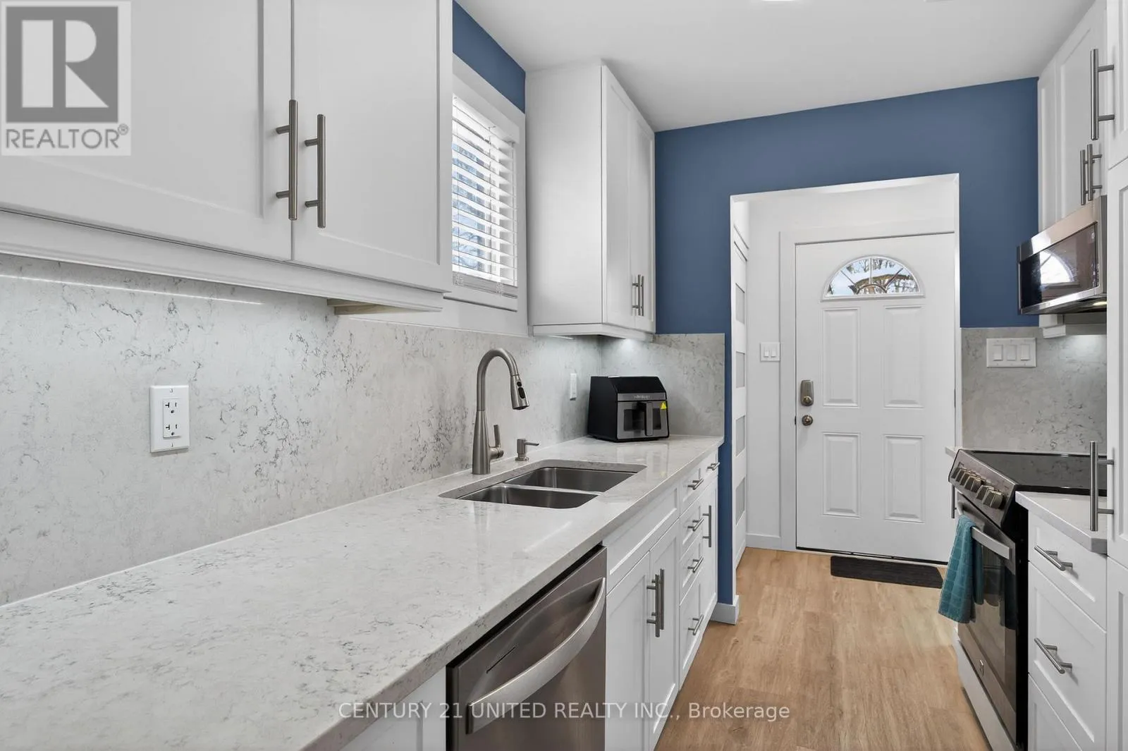 Parkhill Rd East & Armour Rd This is your "Welcome Mat" to East City, one of Peterborough's most sought-after neighbourhoods!! This bright and inviting 4-level backsplit is designed with family living in mind and showcases numerous thoughtful updates. This carpet-free home offers front and side entrances, an updated, efficient Kitchen complete with appliances and East facing window. Open Living and Dining area filled with natural light from South-facing picture window. Upper level features Primary Bedroom, a Second Bedroom and 4-Piece Bath. The lower level adds 2 additional Bedrooms, currently used as an office and den, while the basement hosts Finished Recreation Room with wet bar, 3-Piece Bath, Utility combo with Laundry and a separate storage room. Newer heat pump heating and cooling systems provide year round comfort. Outside, enjoy a private drive and partially fenced rear yard, along with the scenic community that balances historic charm with modern amenities. This is a perfect place to call home! (id:27476)