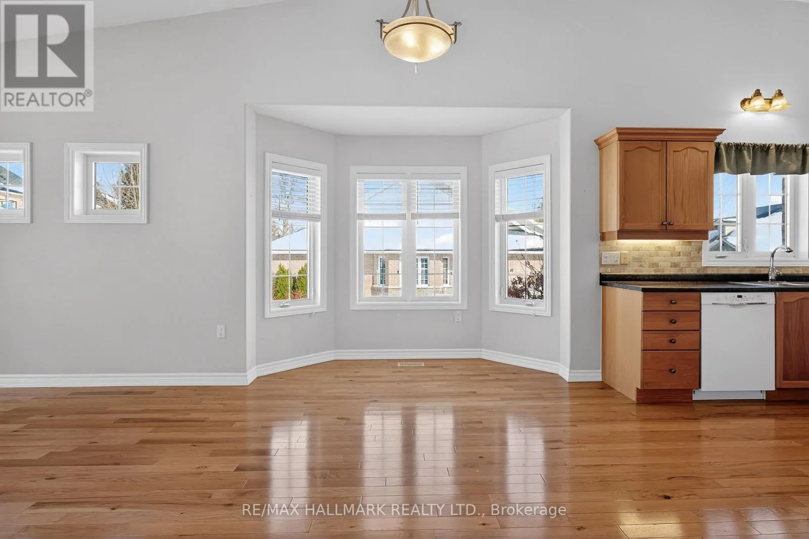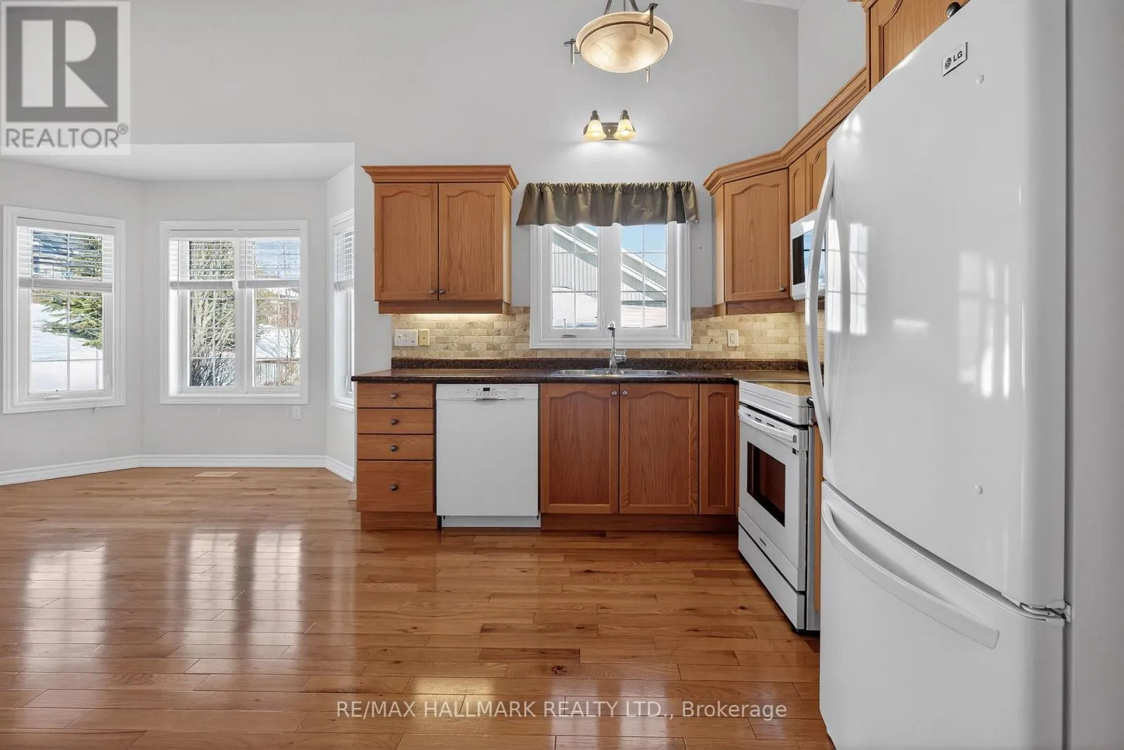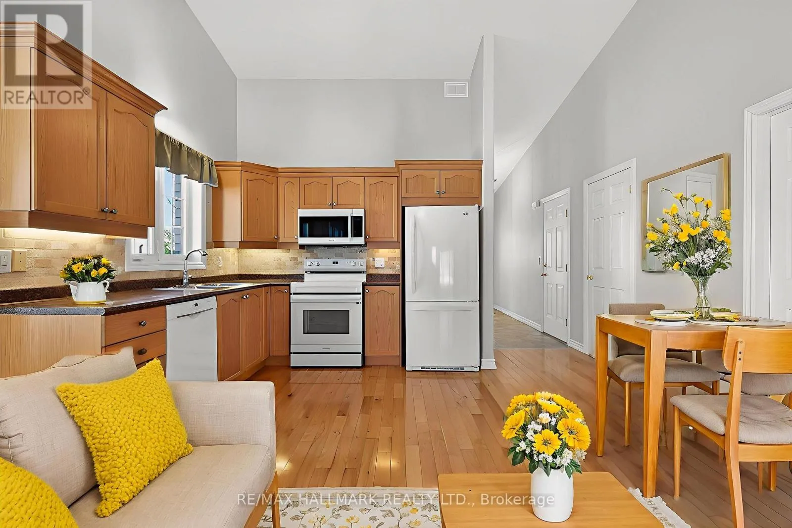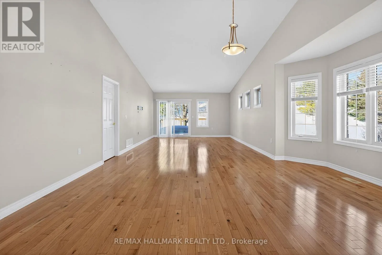 Cross Streets: Lansdowne St W & Village Cres. ** Directions: LANSDOWNE STREET WEST PAST CLONSILLA, TURN SOUTH ONTO VILLAGE CRESCENT [LOCATED BETWEEN CALVARY CHURCH AND MPAC BUILDING]. Beautiful bungalow-style home featuring SOARING VAULTED CEILINGS and an expansive open-concept Living Room and Dining Room with GLEAMING HARDWOOD FLOORS throughout the main living space. Oversized windows fill the home with Natural Light, creating a BRIGHT AND AIRY atmosphere and a WELCOMING FLOW throughout. Spacious Kitchen with AMPLE CABINETRY, Tile Backsplash, Double Sink, Built-In Microwave, Dishwasher, Refrigerator and Stove overlooking the Main Living Area, ideal for ENTERTAINING WITH EASE or comfortable everyday living. Walk-out from the Living Room to a PRIVATE ELEVATED DECK Overlooking Open Green Space with NO DIRECT REAR NEIGHBOURS, offering PEACEFUL VIEWS and ADDED PRIVACY. Generous Primary Bedroom with LARGE WALK-IN CLOSET and plush broadloom designed for RELAXED COMFORT. Well-appointed 3-Piece Bathroom with GLASS ENCLOSED SHOWER and extended vanity providing FUNCTIONAL DESIGN. Convenient Main Floor Laundry for everyday practicality. Full unfinished Basement with EXCELLENT CEILING HEIGHT, Large Windows and Cold Storage Room presenting FUTURE DEVELOPMENT POTENTIAL for additional Living Space, Recreation Room or Bedrooms. Attached single-car Garage with opener and interior access adds everyday convenience. A wonderful opportunity to enjoy OPEN-CONCEPT LIVING in a quiet setting close to Amenities, Parks and Transit. (id:27476)