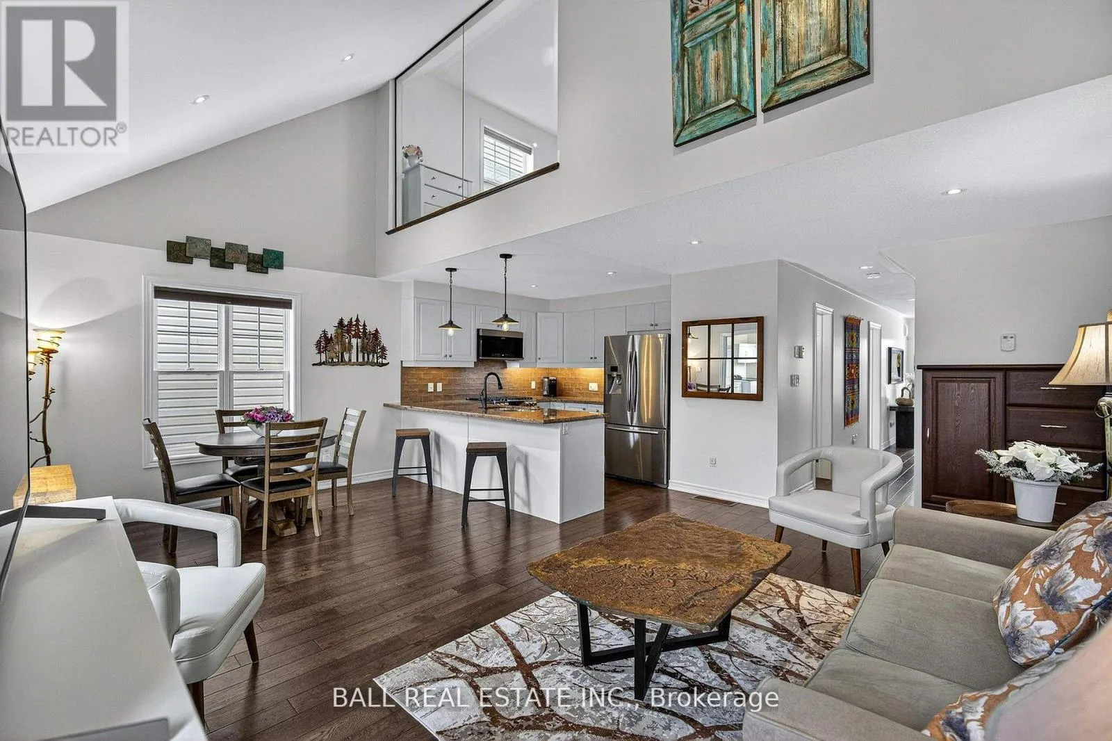 Flitton Ave & Grange Way Welcome home to comfort, style, and community. Built in 2013, this stunning one & half story residence is perfectly suited for families seeking everyday convenience in a vibrant neighborhood. The main floor showcases an open concept kit/din/living area with cathedral ceiling, gas fire place, stone countertops and S/S appliances - ideal for everyday living and entertaining alike. The primary suite features a walk-in closet & private en-suite while two-piece powder room adds convenience for guests. A laundry and mud room connect seamlessly to the attached double car garage and open to a private courtyard with a gas BBQ hookup, perfect for outdoor enjoyment. Upstairs, a flexible bonus space that overlooks the main living area and is accompanied by a second bedroom and full bathroom. The fully finished lower level offers a spacious rec room, large bedroom, three-piece bath and generous storage. Close to schools, shopping centers, and playgrounds - this home delivers the perfect blend of location, lifestyle, and livability. (id:27476)