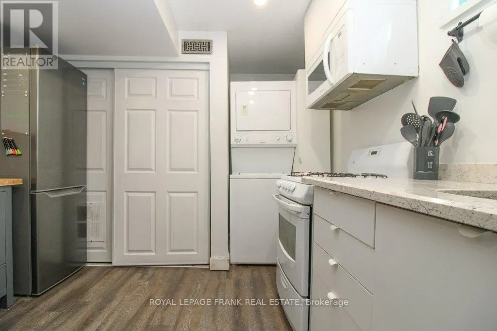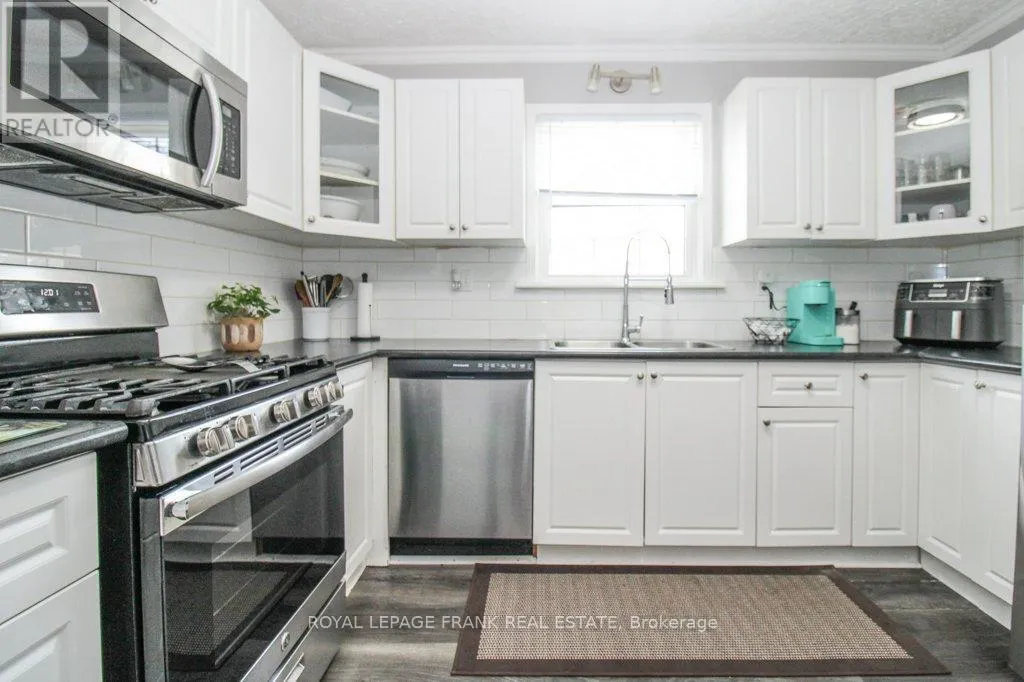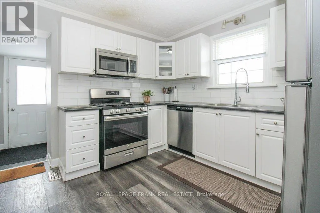 Goodfellow Rd and St. Mary's St. Charming 1.5 storey home on a quiet street in central Peterborough, just a short walk to shopping, parks, schools and everyday amenities. The bright main floor features an inviting living and dining area, spacious kitchen with gas stove, office, bedroom and convenient main floor laundry. Upstairs offers a cozy primary suite with abundant storage. The lower level has a separate entrance and a fully contained in-law suite with two bedrooms, a kitchenette, a living and dining area and its own laundry - ideal for extended family or income potential. Enjoy a large fenced yard with a double wide paved driveway with parking for six vehicles. A fantastic opportunity in a prime central location. Updates include a new furnace and AC in 2019, an egress window in 2021, electrical and plumbing updates in 2021, a new kitchen counter, sink, and dishwasher in 2021, exterior waterproofing in 2023, a bathroom and main floor laundry remodel in 2025, and interlock walkway, landscaping and paved drive between 2023 and 2025. (id:27476)