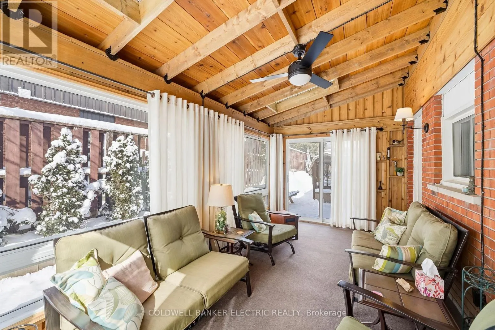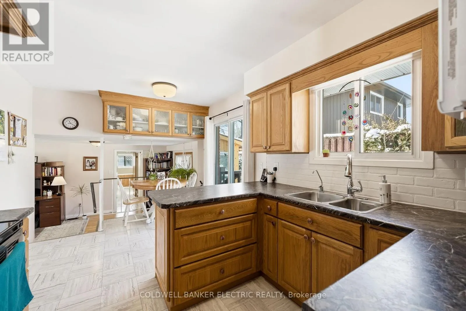 Wallis/Sherbrooke Situated on a quiet street, this 5+1 bedroom home with detached garage, generous parking, ample green space, and a flexible lower level with income helper potential is in a desirable established neighbourhood. Conveniently located close to schools, playgrounds, parks, and everyday amenities, this spacious and well-maintained, side-split home sits on a beautifully landscaped corner lot with mature trees and no sidewalks. The detached heated garage offers an ideal space for hobbies and creative projects with its built-in work tables and cabinets, and extra storage with a convenient loft above, while available 7-car parking accommodates family and guests. Inside, discover 5 bedrooms on the upper floors including a generous primary bedroom with ensuite and well-proportioned additional bedrooms with sizeable closet space and new carpeting. The front-facing living room is large and welcoming, and features gleaming hardwood floors and a custom-built faux fireplace flanked by bookshelves-perfect for relaxing or entertaining. The eat-in kitchen, with an under-sink reverse osmosis water filtration system, opens to a family room - making everyday living effortless - while separate main-floor laundry adds convenience. The lower level provides a private retreat with a bed/sitting room, kitchenette, gas fireplace and 3-piece bath; ideal for extended family, overnight guests, or potential in-law accommodation. Imagine hosting birthday parties, holiday gatherings, or summer BBQs on the backyard deck and patio - you'll be surrounded by nature and birdsong in your own private backyard oasis! A bright 3-season cedar sunroom at the rear offers a relaxing spot for conversation, stargazing through the dual skylights, or entertaining, with sliding doors on both sides for easy access to the outdoor space. With substantial living areas, a functional layout, and room for family, guests, hobbies and potential additional living arrangements, this home offers comfort, versatility & opportunity. (id:27476)