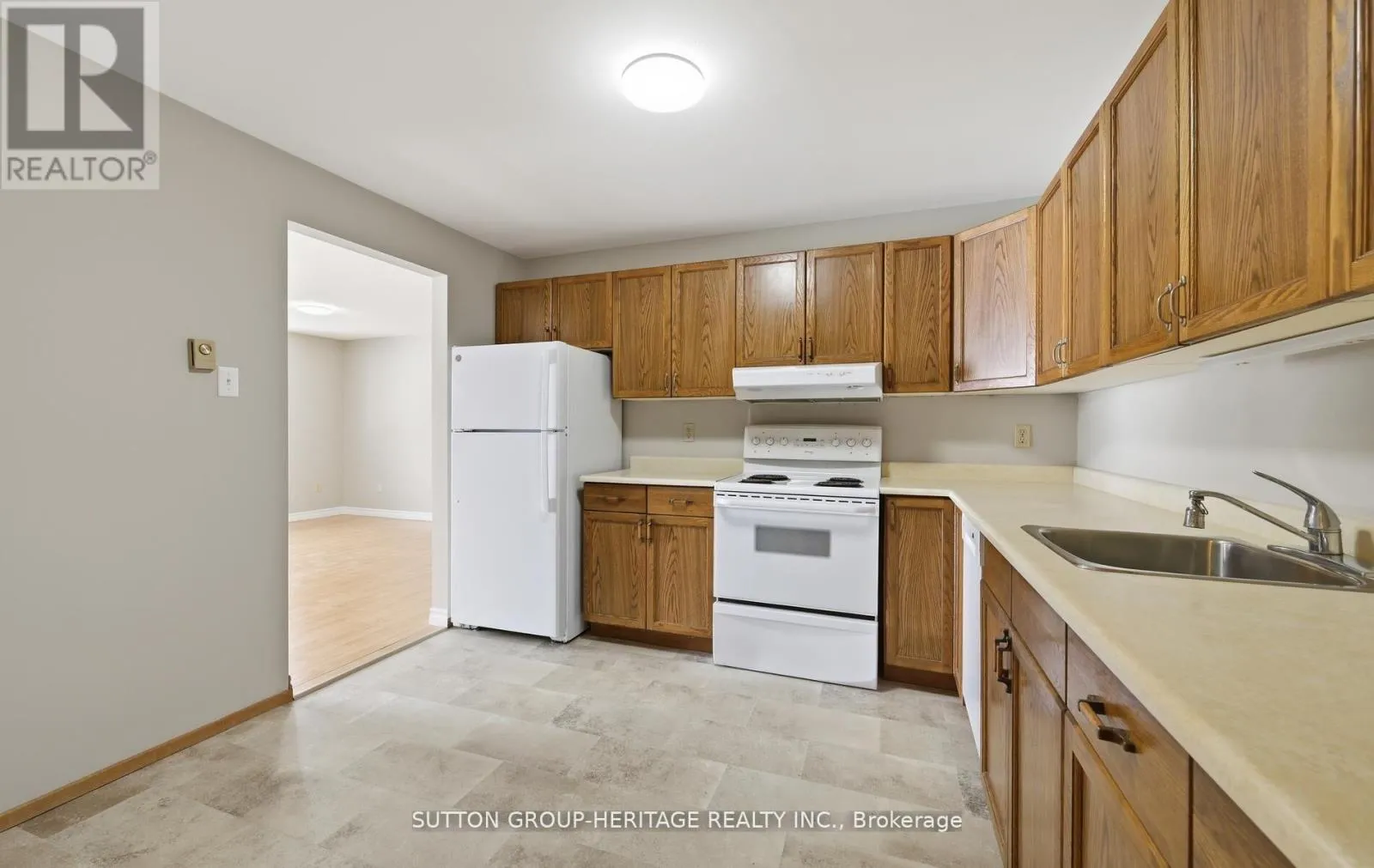 Inglewood Rd & Mountland Dr Beautifully maintained 2-bedroom, 1-bathroom condo offering comfortable and convenient living in the heart of Peterborough. This bright unit features an open-concept living and dining area highlighted by large windows that fill the space with natural light. The kitchen showcases newer flooring, an abundance of cabinetry, and a large open space creating a fresh and functional area for everyday living and entertaining. Both bedrooms are generously sized, providing ample space and flexibility for a variety of lifestyles. Enjoy the convenience of in-unit laundry with a newer washer and dryer, along with one dedicated parking space and three visitor parking spots available for guests. Located close to shopping, parks, dining, transit, and many of Peterborough's everyday amenities, this condo offers an ideal blend of comfort and accessibility. (id:27476)