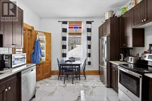 Cross Streets: Reid St & McDonnel St. ** Directions: Hwy 115 Parkway N to Clonsilla, right on Clonsilla few km to Monaghan, Left/ N on Monaghan to then right or East to Stewart St. Charming family home has been lovingly owned by three generations of the same family. The property features three bedrooms all on 2nd level + a 2-piece bathroom . Newer Updated 4-piece bathroom on main floor with laundry! Beautifully renovated kitchen by Buchanan kitchens, showcasing flashy porcelain tiles. The restored wood trim & stunning stained glass windows contribute to the home's unique charm. There are French All Glass pocket doors a 100 years old, in wall of the living room. Room to build a garage in the rear, as was once was a garage there in the past! Desirable proximity to PRHC, Jackson's Park, and a short stroll downtown to superb dining options makes it an attractive option for 1st time buyers & investors, particularly given its potential for rental income from Trent U students. (id:27476)