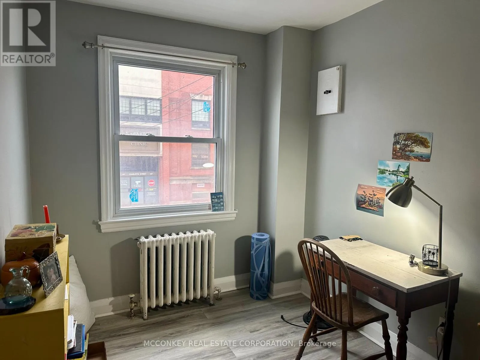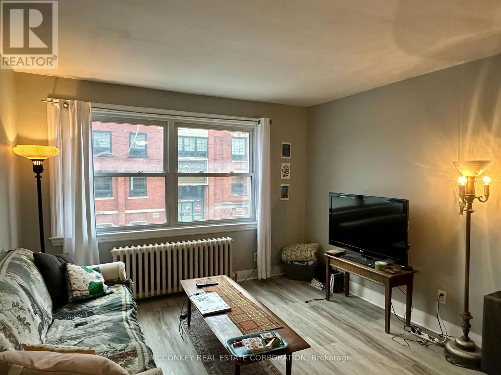 Cross Streets: Reid St. ** Directions: North side of Charlotte St. between Reid St. & Rubidge St. This 2 Bedroom plus den upstairs apartment for rent is located above a flower shop on Charlotte St., directly across from the Kawartha Cardiology Clinic. The apartment has been freshly painted and features new flooring throughout, with a living room, kitchen (including fridge & stove) and a 3 piece bathroom. Two parking spots are included and a laundromat is conveniently located across the road. The rent is $1,550.00 per month, plus heat, hydro & hot water (Approx. $225 to $250 monthly). It is a well maintained, comfortable space in a central location, perfect for those seeking a convenient place to live. Applicants without pets preferred. (id:27476)