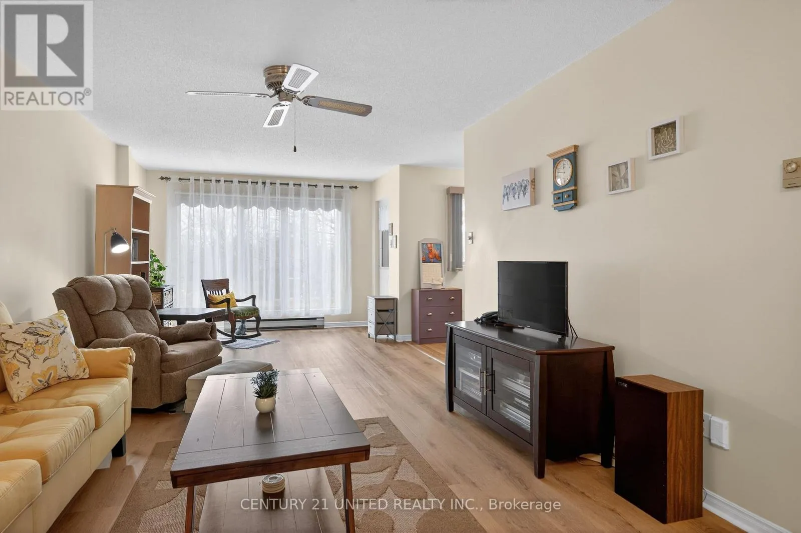 Ashburnham & Lansdowne Bright, Spacious Condo Living in Peterborough's Sought-After East End! This beautifully updated 2-bedroom, 2-bathroom condo in The Ashburnham offers 1,167 sq. ft. of thoughtfully designed, one-level living in a secure and well-maintained building. Step inside to a warm and inviting entryway with a charming half-wall that opens into a bright, spacious layout. Freshly painted throughout, this unit features an open-concept living and dining area with a walkout to an enclosed balcony, perfect for enjoying your morning coffee or unwinding in the evenings, all while surrounded by the privacy of mature maple trees. The eat-in kitchen has been tastefully refreshed with refurbished cabinetry and countertops and includes all appliances. The generous primary bedroom easily accommodates a king-size bed and offers two walk-in closets, a rare and highly desirable feature, along with a private 3-piece ensuite. A second bedroom and full 4-piece bathroom provide comfortable space for guests or a home office. Ideally located just minutes from Beavermead Park, Rogers Cove, and scenic walking and biking trails, this home is perfect for those who love an active, outdoor lifestyle. Enjoy quick access to Highway 115 for commuters, while also being close to East City's charming shops, bakeries, restaurants, and everyday amenities. Offering a welcoming, community-oriented atmosphere with excellent access to public transit, this condo is perfect for those seeking low-maintenance living without compromising on space, comfort, or location. (id:27476)