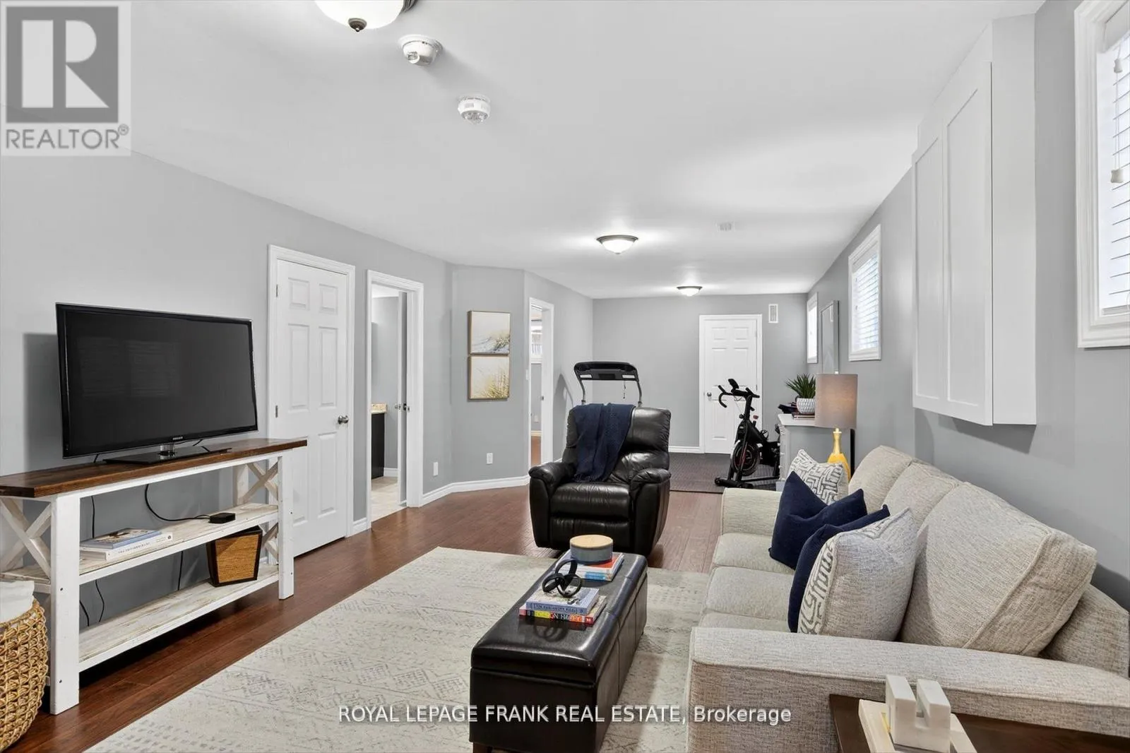 Parkhill Rd W/Chandler This lovely level-entry bungalow provides ease of living in Peterborough's north-west community. Large foyer leads up to main level open concept living space with gleaming hardwood flooring with walk-out to large deck; open to kitchen with breakfast bar and stainless steel appliances. Two good sized bedrooms; primary with ensuite. Full second guest bathroom. On the lower level you'll find a 3rd bedroom, large family room, another full bath as well as laundry and storage/utility areas. Natural gas heating and central air. Landscaped front entrance, paved drive, and double driveway. Move in ready - this home just shines. Home Inspection Report available. (id:27476)