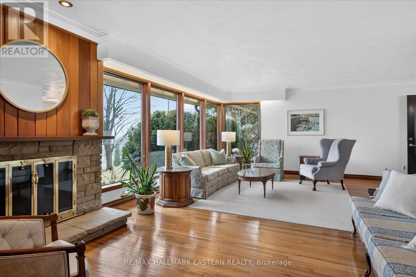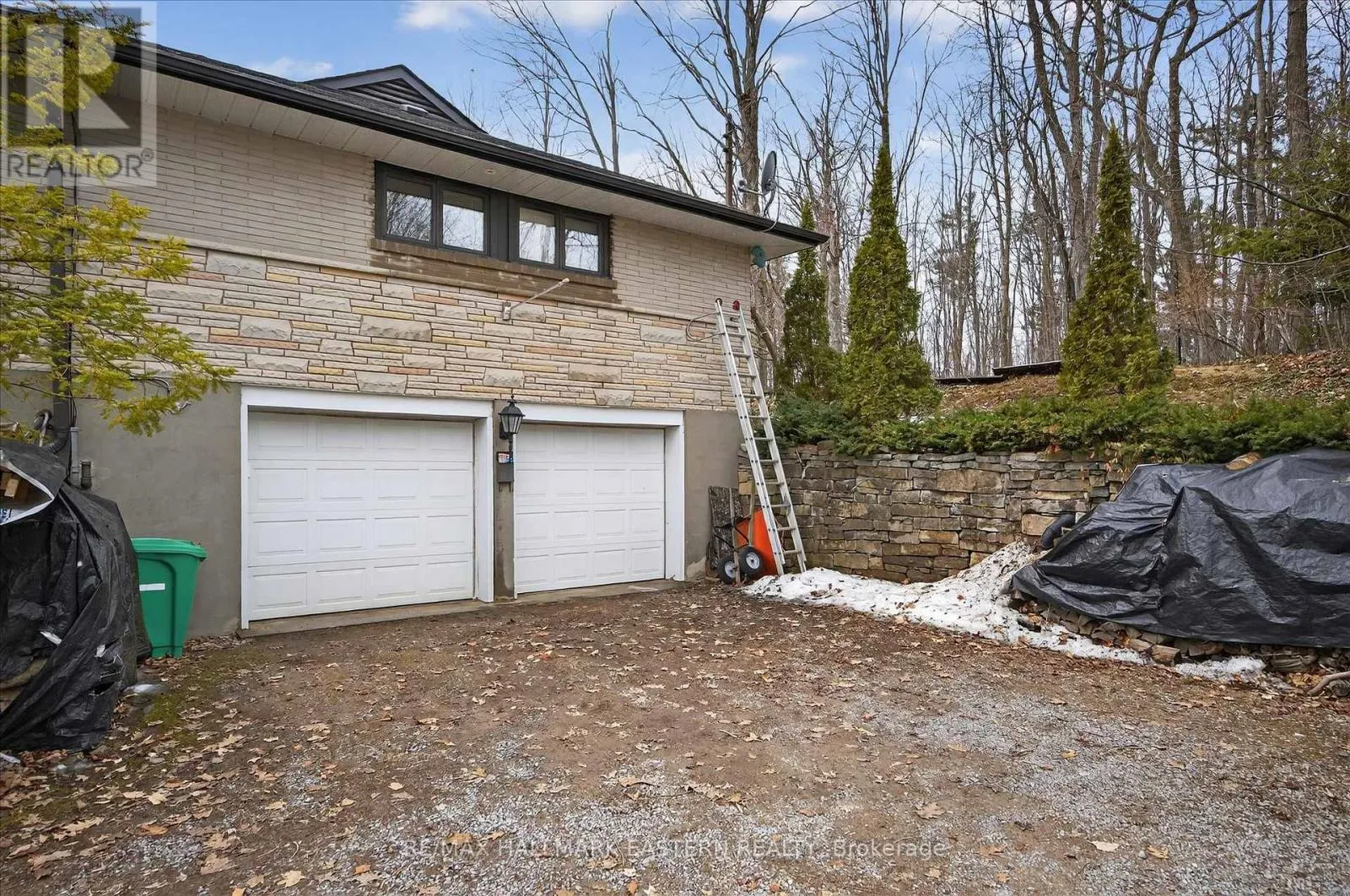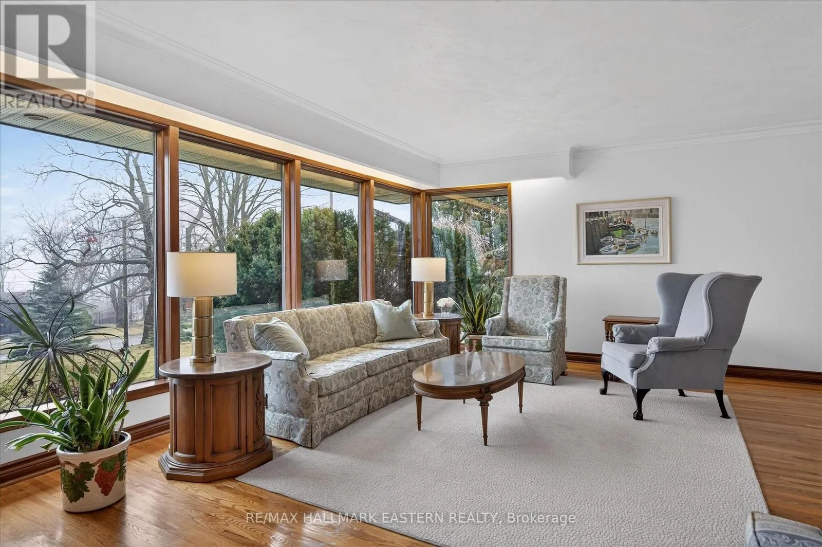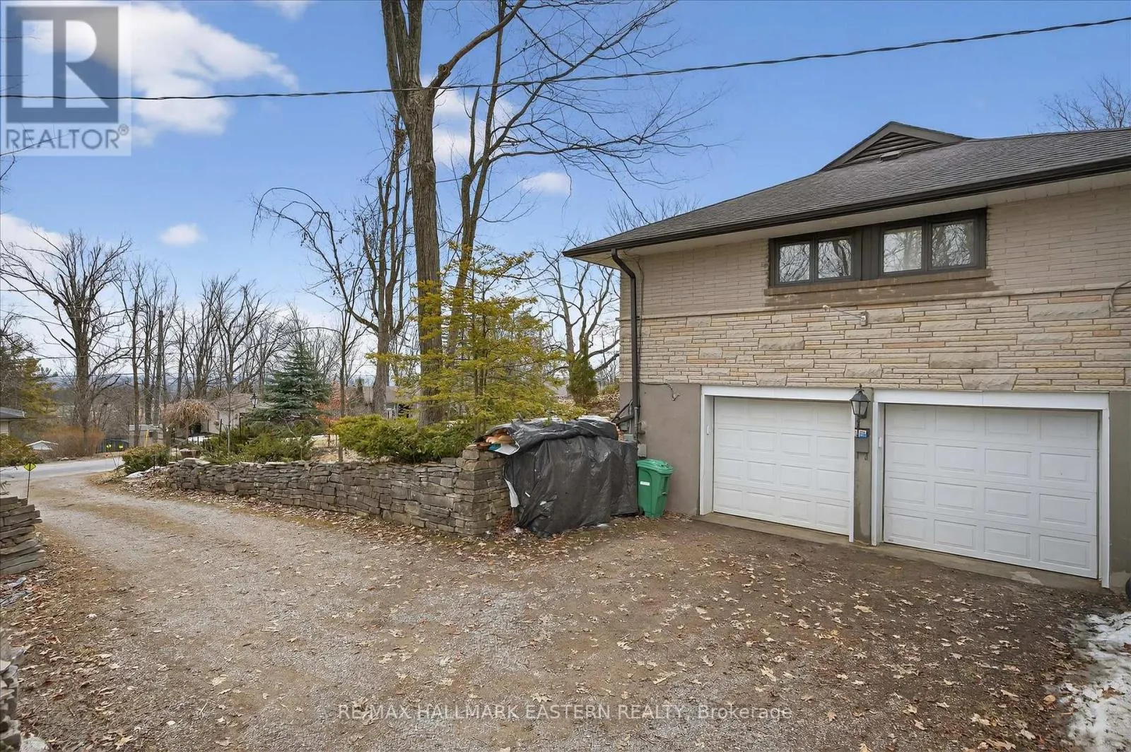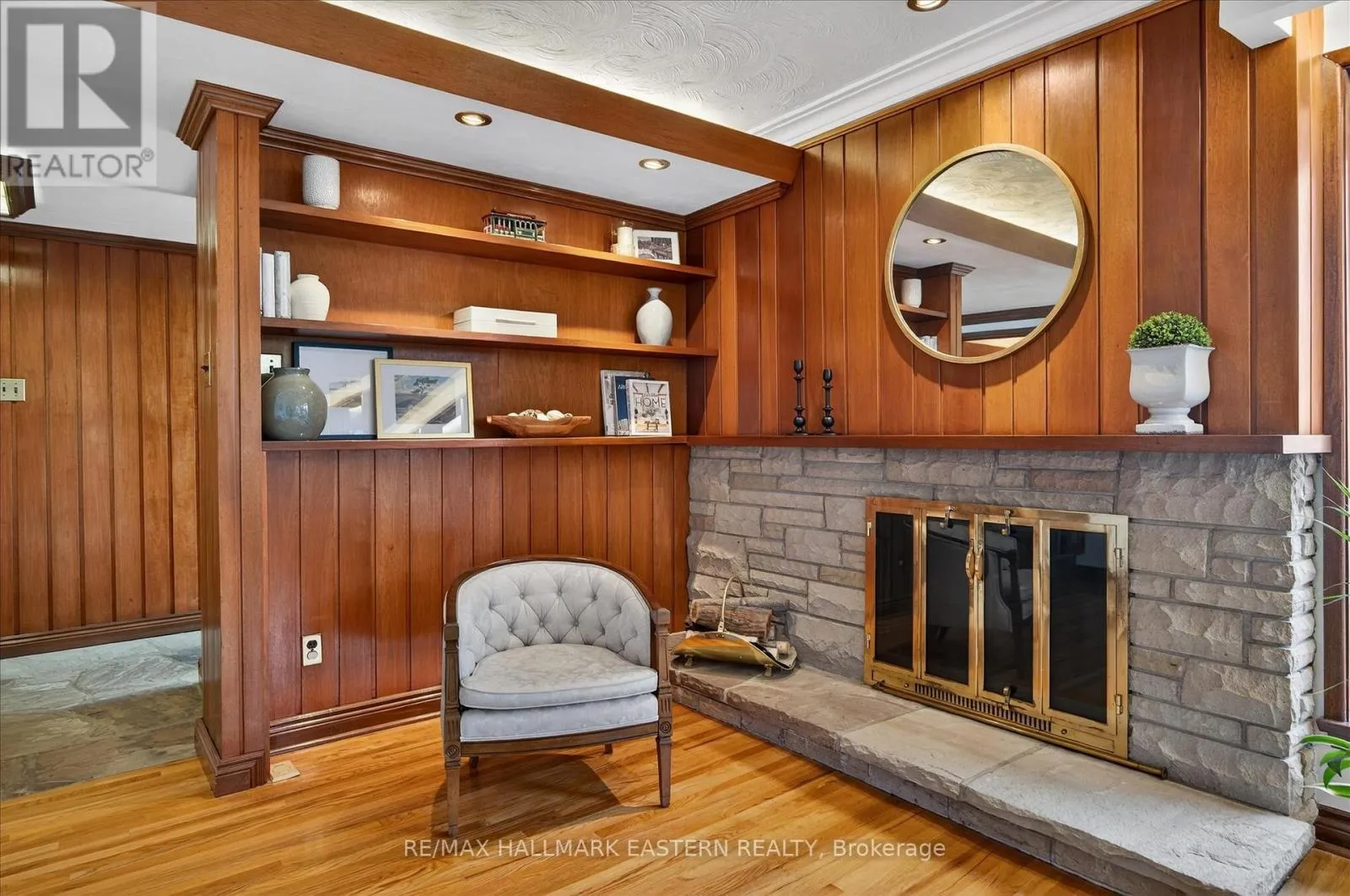 Cross Streets: kawartha Heights and Crestwood Ave. ** Directions: Sherbrooke St, south on Woodglade, first right on Ridgewood Road to 143. Rare opportunity to own this executive custom-built brick bungalow in one of Peterborough's most desirable west-end neighbourhoods. Situated on an elevated 1/2 acre private lot, this home offers sweeping views and backs directly onto the forested Oakwood Park. From the street the home exudes curb appeal with it's light shade of brick and stone complemented by dark trim. The interior features spacious primary rooms starting with the expansive living room (528 sq ft) a true showstopper, boasting floor-to-ceiling windows, luxurious wood accents and a wood-burning fireplace. The dining room includes a built in buffet and walk out to a screened in room, perfect for hot summer dining. The kitchen, featuring custom wood cabinetry, flows seamlessly into a spacious family room with sliding doors leading to a private flagstone patio. The main level includes three bedrooms and two bathrooms, including the primary ensuite with soaker tub. And if additional living space is needed the basement provides a versatile recreation room with a second wood fireplace, a home office, a third bathroom, and direct garage access, offering excellent in-law potential. Enjoy the tranquility of a quiet, treed setting while remaining minutes away from top-rated schools, grocery stores, and public transit. This home perfectly blends nature-inspired living with modern convenience. Experience the best of west-end living on a quiet street where you can hear the birds. (id:27476)