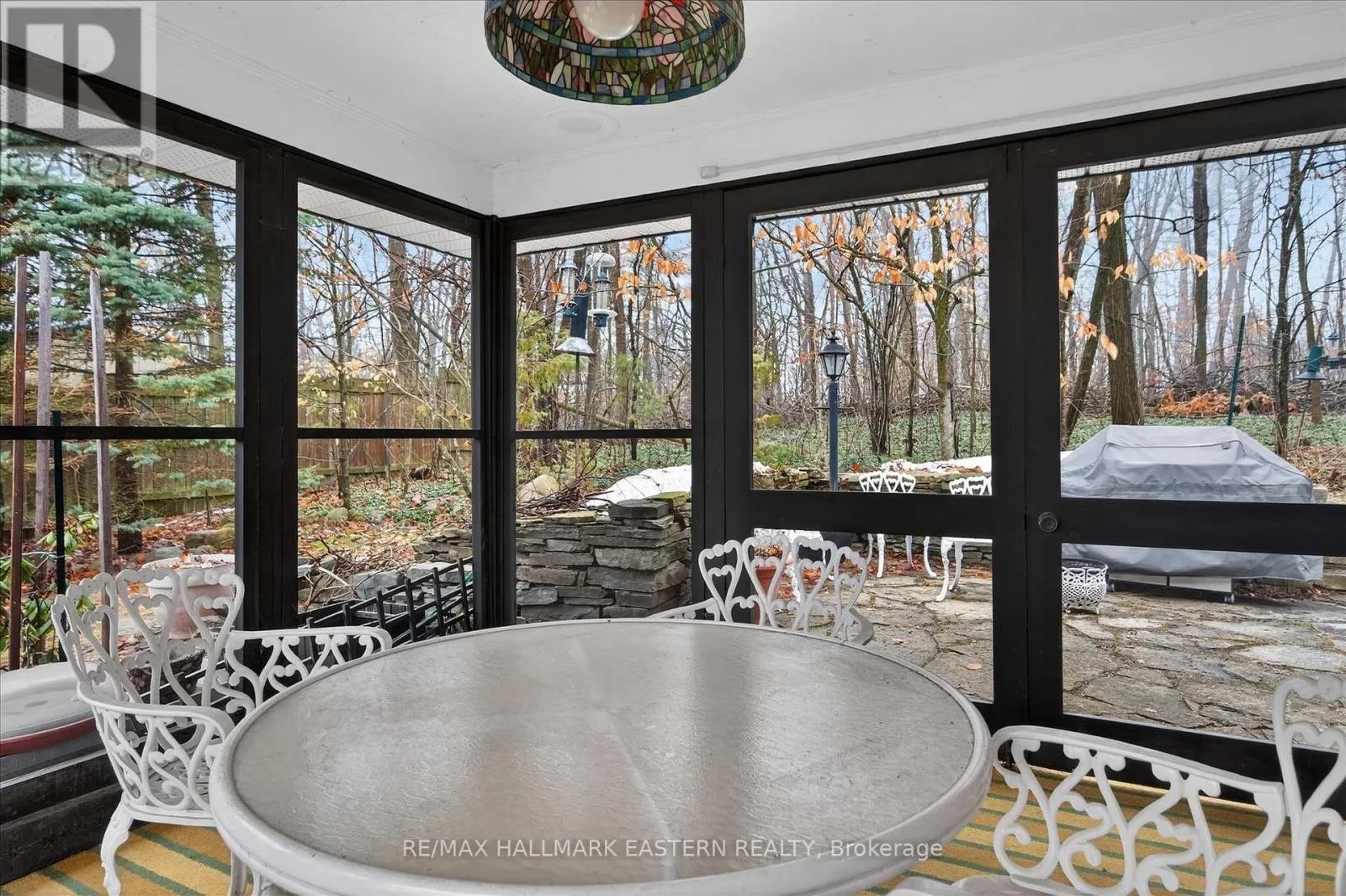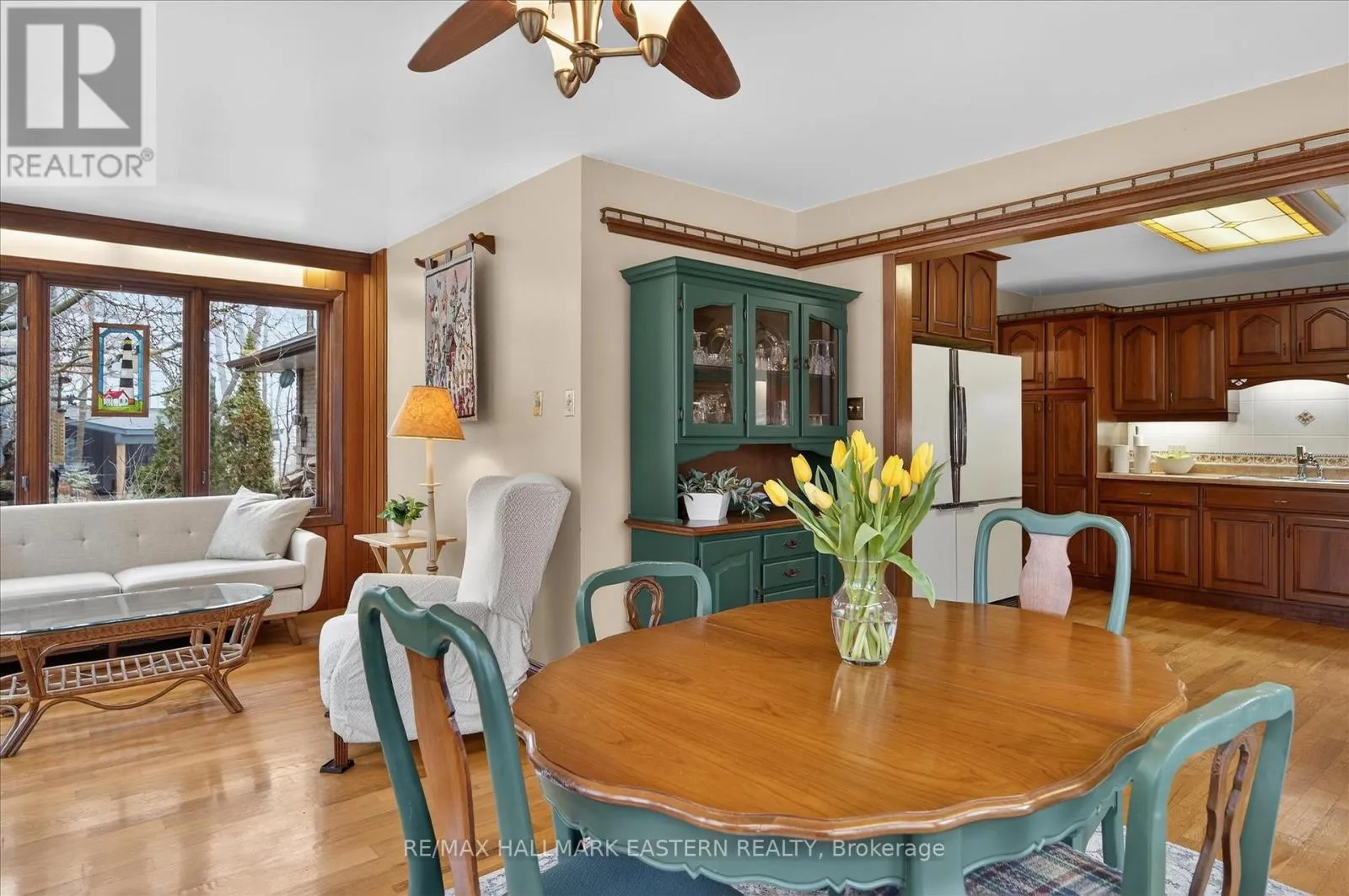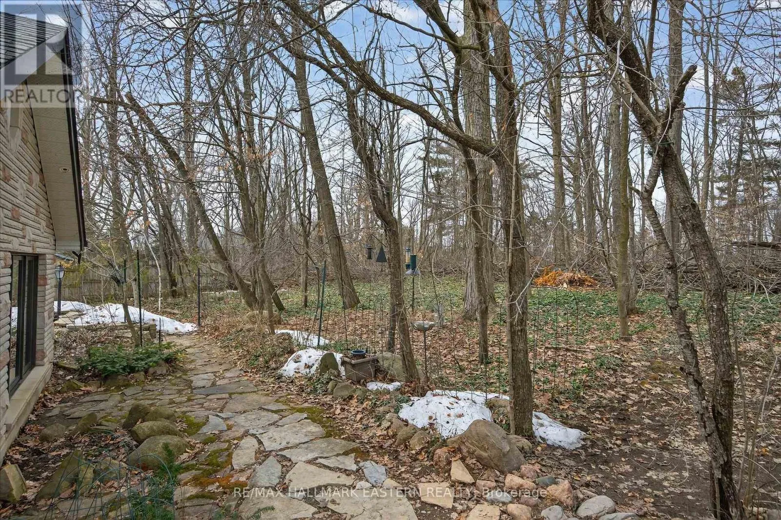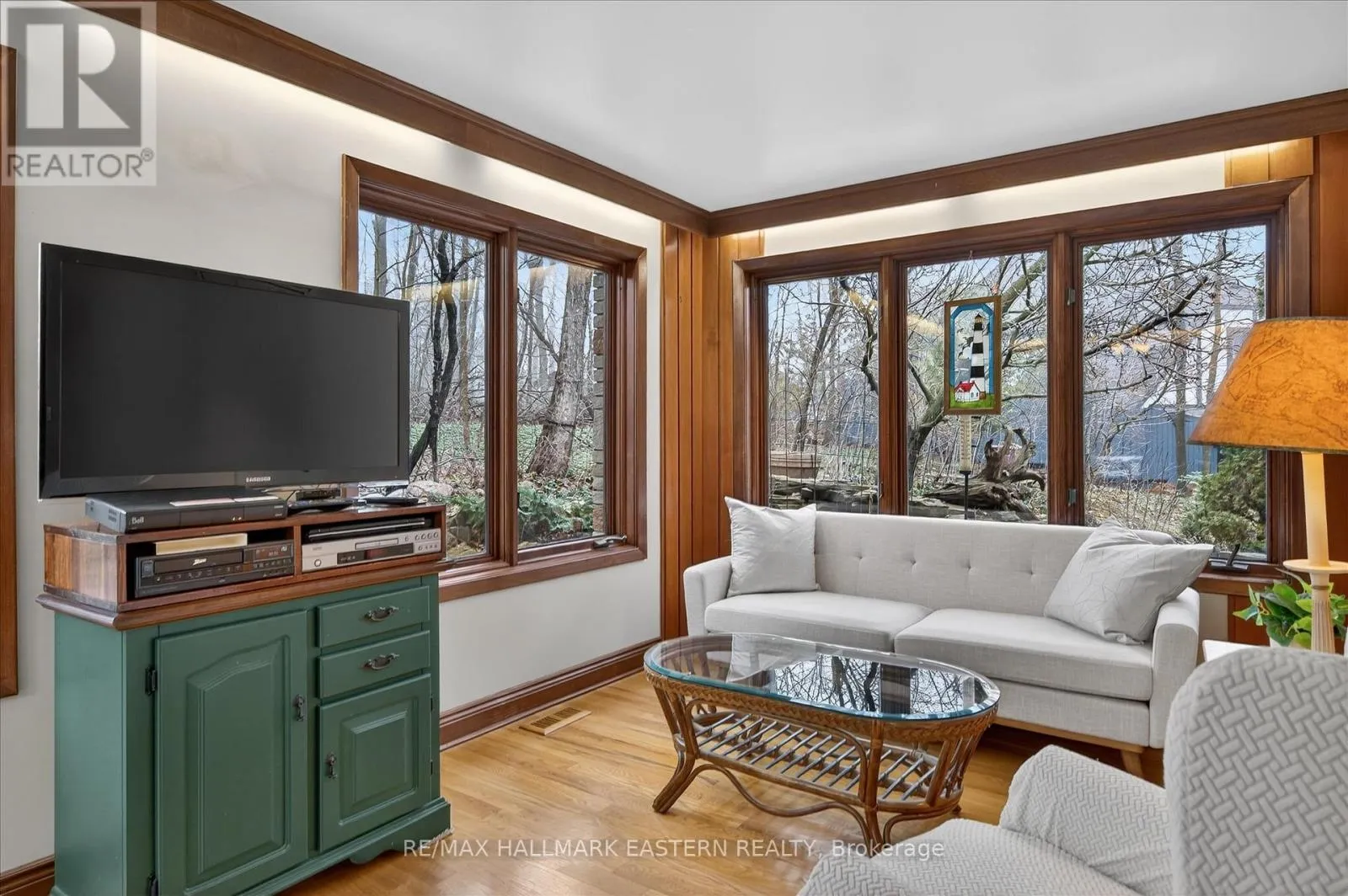 Cross Streets: kawartha Heights and Crestwood Ave. ** Directions: Sherbrooke St, south on Woodglade, first right on Ridgewood Road to 143. Rare opportunity to own this executive custom-built brick bungalow in one of Peterborough's most desirable west-end neighbourhoods. Situated on an elevated 1/2 acre private lot, this home offers sweeping views and backs directly onto the forested Oakwood Park. From the street the home exudes curb appeal with it's light shade of brick and stone complemented by dark trim. The interior features spacious primary rooms starting with the expansive living room (528 sq ft) a true showstopper, boasting floor-to-ceiling windows, luxurious wood accents and a wood-burning fireplace. The dining room includes a built in buffet and walk out to a screened in room, perfect for hot summer dining. The kitchen, featuring custom wood cabinetry, flows seamlessly into a spacious family room with sliding doors leading to a private flagstone patio. The main level includes three bedrooms and two bathrooms, including the primary ensuite with soaker tub. And if additional living space is needed the basement provides a versatile recreation room with a second wood fireplace, a home office, a third bathroom, and direct garage access, offering excellent in-law potential. Enjoy the tranquility of a quiet, treed setting while remaining minutes away from top-rated schools, grocery stores, and public transit. This home perfectly blends nature-inspired living with modern convenience. Experience the best of west-end living on a quiet street where you can hear the birds. (id:27476)