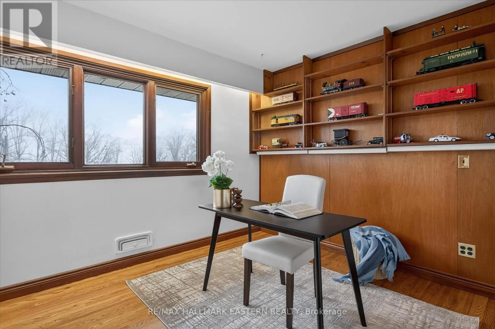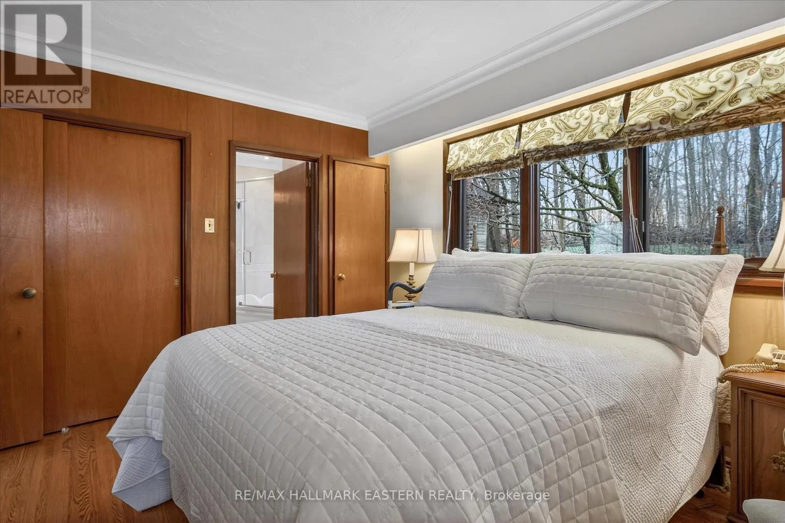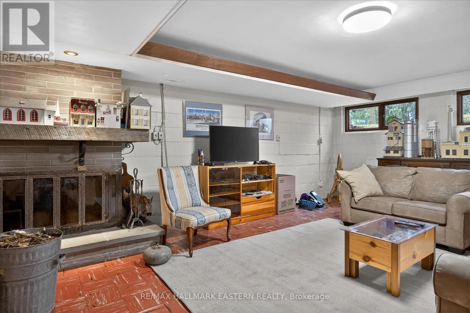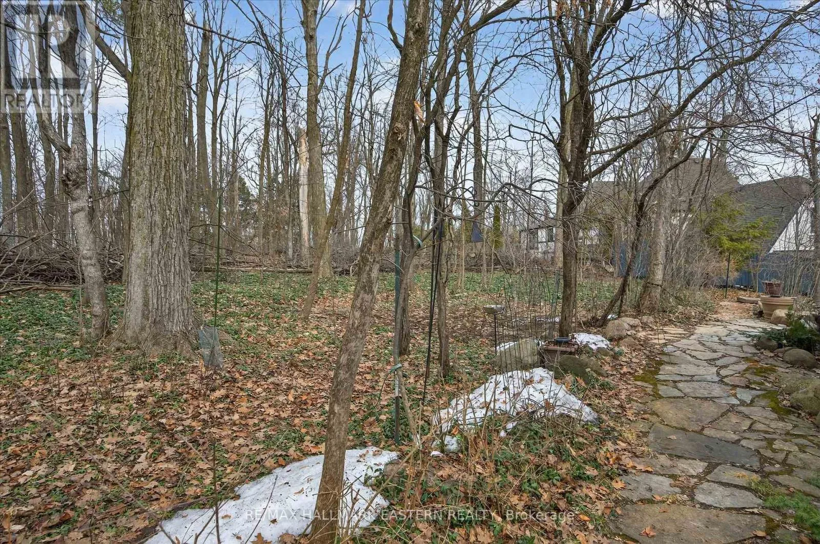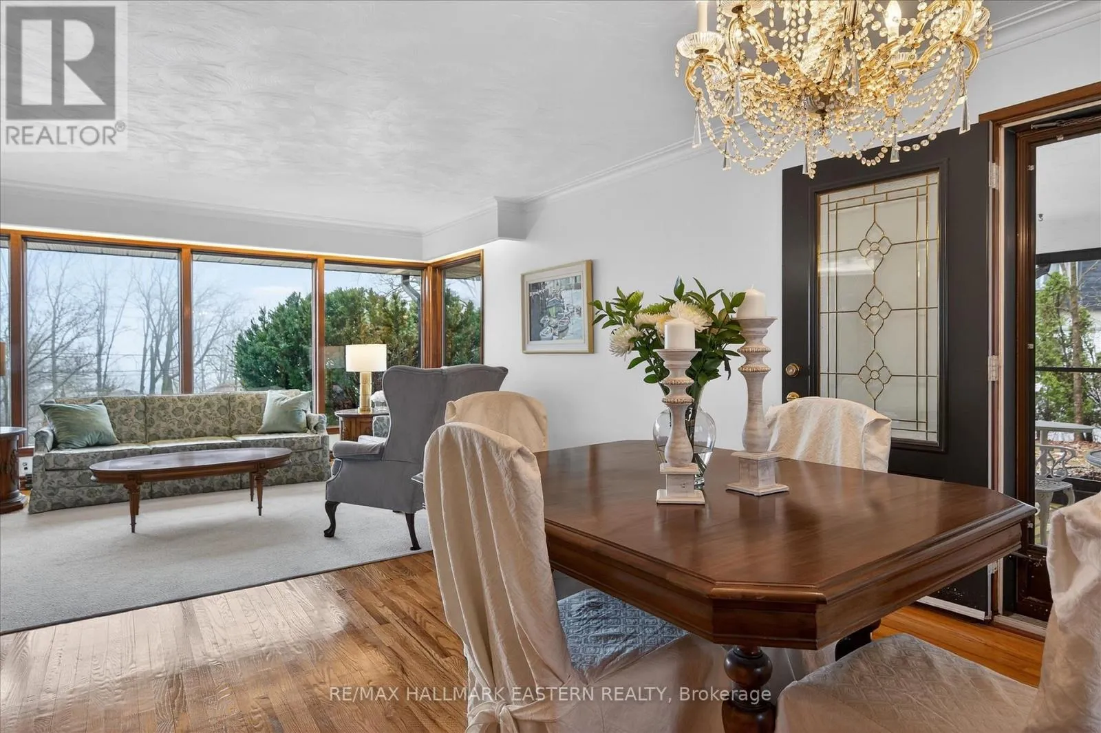 Cross Streets: kawartha Heights and Crestwood Ave. ** Directions: Sherbrooke St, south on Woodglade, first right on Ridgewood Road to 143. Rare opportunity to own this executive custom-built brick bungalow in one of Peterborough's most desirable west-end neighbourhoods. Situated on an elevated 1/2 acre private lot, this home offers sweeping views and backs directly onto the forested Oakwood Park. From the street the home exudes curb appeal with it's light shade of brick and stone complemented by dark trim. The interior features spacious primary rooms starting with the expansive living room (528 sq ft) a true showstopper, boasting floor-to-ceiling windows, luxurious wood accents and a wood-burning fireplace. The dining room includes a built in buffet and walk out to a screened in room, perfect for hot summer dining. The kitchen, featuring custom wood cabinetry, flows seamlessly into a spacious family room with sliding doors leading to a private flagstone patio. The main level includes three bedrooms and two bathrooms, including the primary ensuite with soaker tub. And if additional living space is needed the basement provides a versatile recreation room with a second wood fireplace, a home office, a third bathroom, and direct garage access, offering excellent in-law potential. Enjoy the tranquility of a quiet, treed setting while remaining minutes away from top-rated schools, grocery stores, and public transit. This home perfectly blends nature-inspired living with modern convenience. Experience the best of west-end living on a quiet street where you can hear the birds. (id:27476)