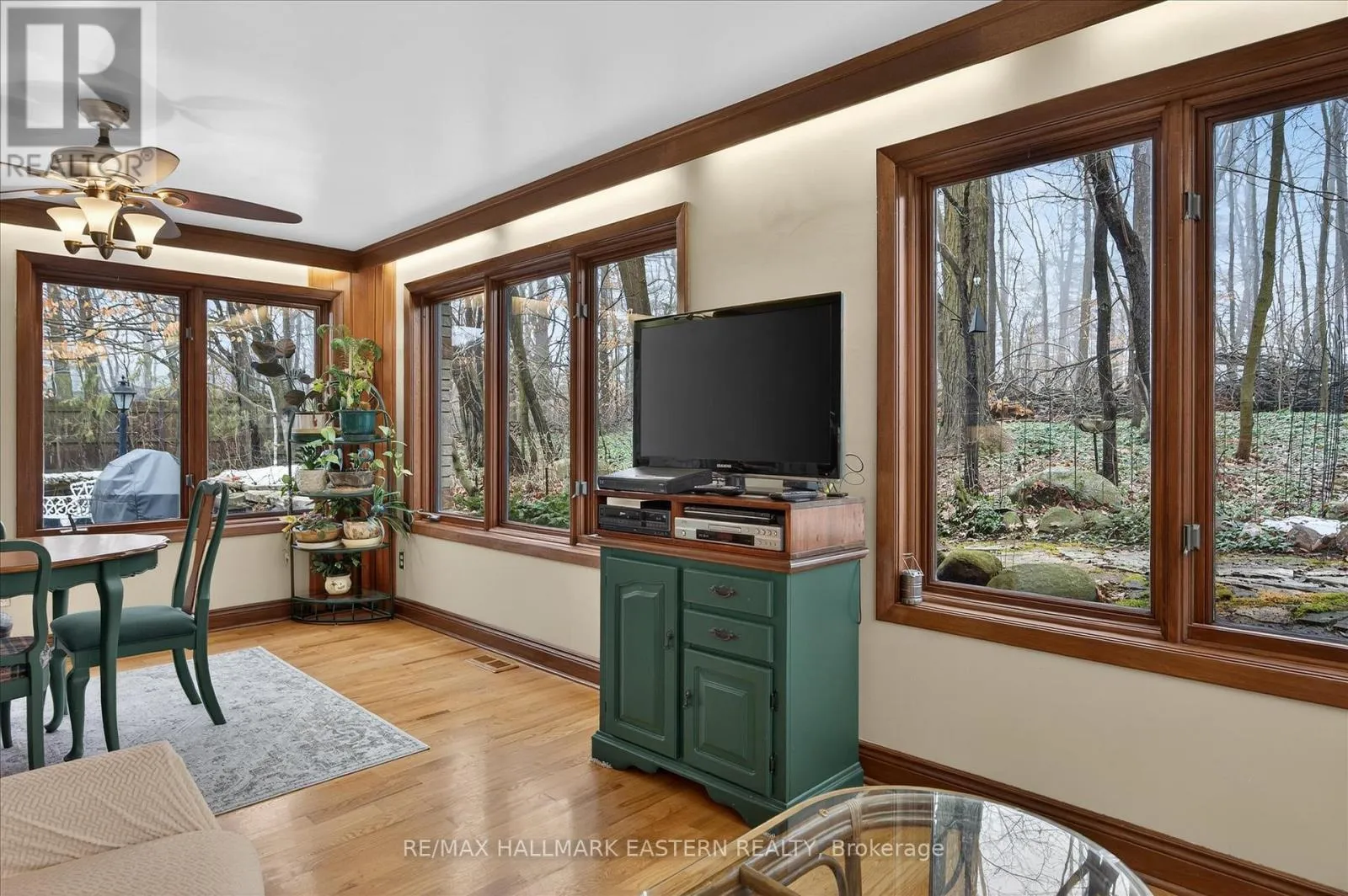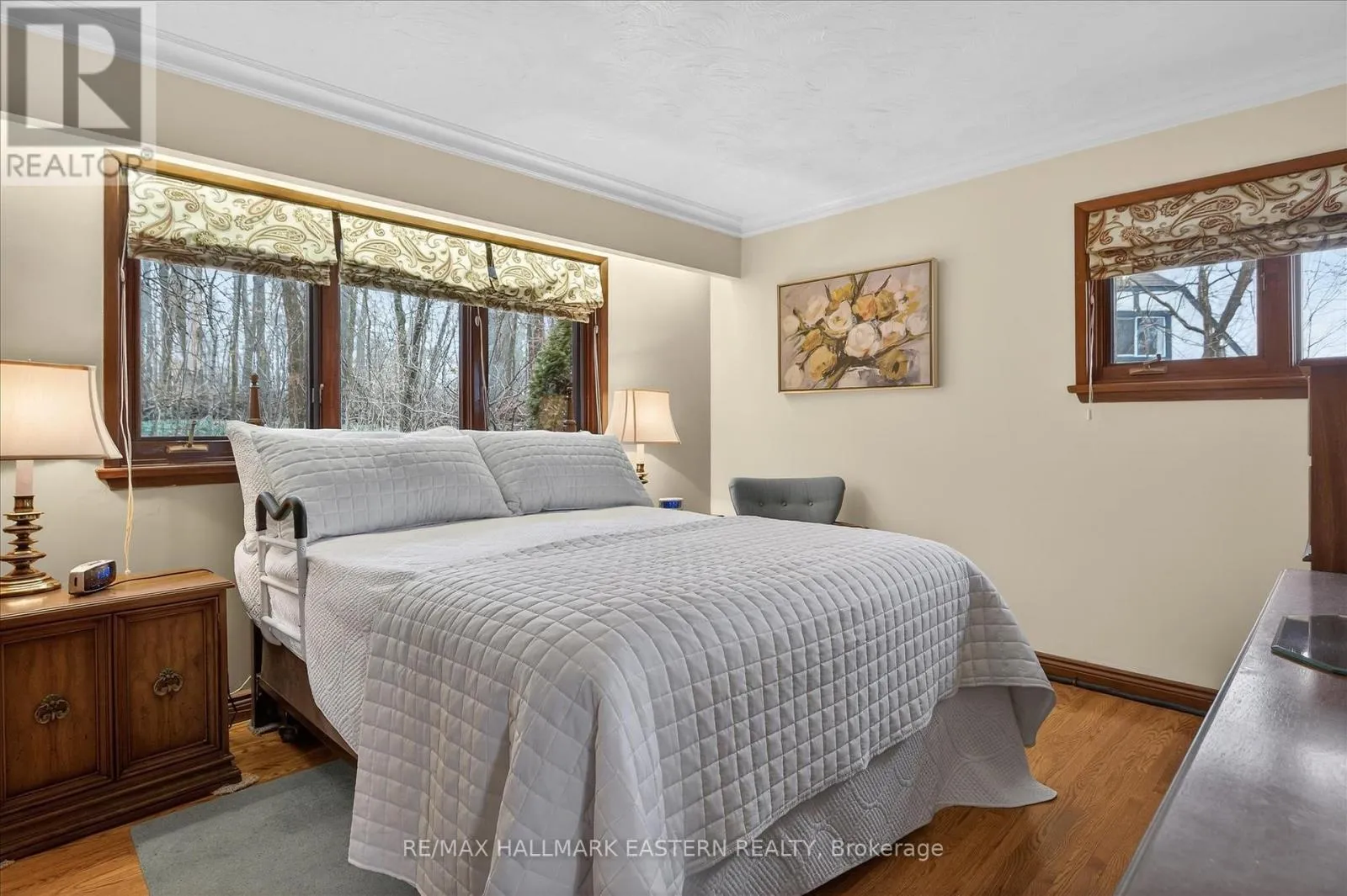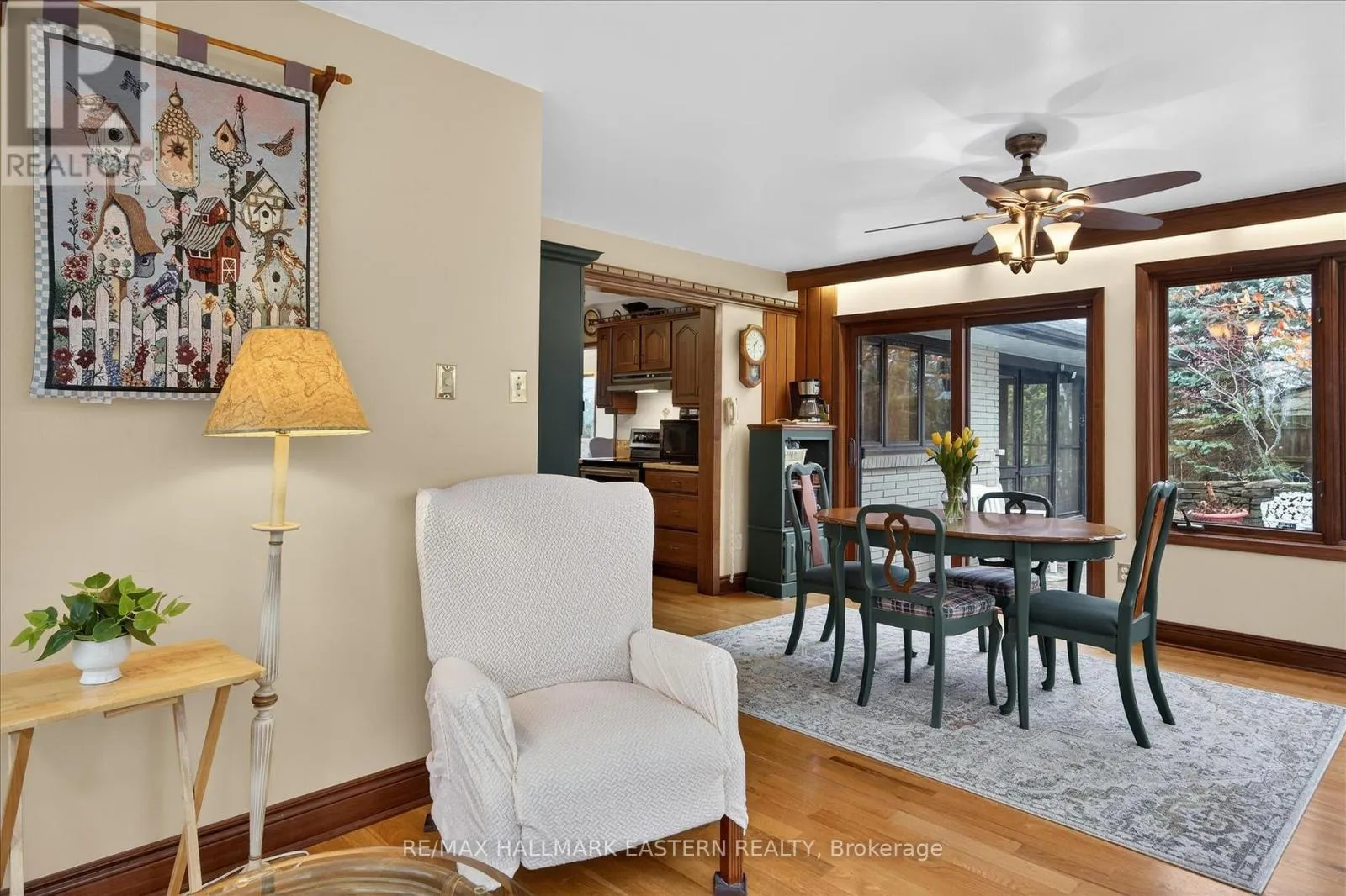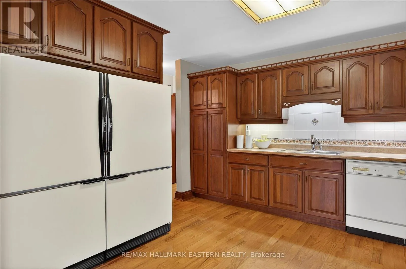 Cross Streets: kawartha Heights and Crestwood Ave. ** Directions: Sherbrooke St, south on Woodglade, first right on Ridgewood Road to 143. Rare opportunity to own this executive custom-built brick bungalow in one of Peterborough's most desirable west-end neighbourhoods. Situated on an elevated 1/2 acre private lot, this home offers sweeping views and backs directly onto the forested Oakwood Park. From the street the home exudes curb appeal with it's light shade of brick and stone complemented by dark trim. The interior features spacious primary rooms starting with the expansive living room (528 sq ft) a true showstopper, boasting floor-to-ceiling windows, luxurious wood accents and a wood-burning fireplace. The dining room includes a built in buffet and walk out to a screened in room, perfect for hot summer dining. The kitchen, featuring custom wood cabinetry, flows seamlessly into a spacious family room with sliding doors leading to a private flagstone patio. The main level includes three bedrooms and two bathrooms, including the primary ensuite with soaker tub. And if additional living space is needed the basement provides a versatile recreation room with a second wood fireplace, a home office, a third bathroom, and direct garage access, offering excellent in-law potential. Enjoy the tranquility of a quiet, treed setting while remaining minutes away from top-rated schools, grocery stores, and public transit. This home perfectly blends nature-inspired living with modern convenience. Experience the best of west-end living on a quiet street where you can hear the birds. (id:27476)