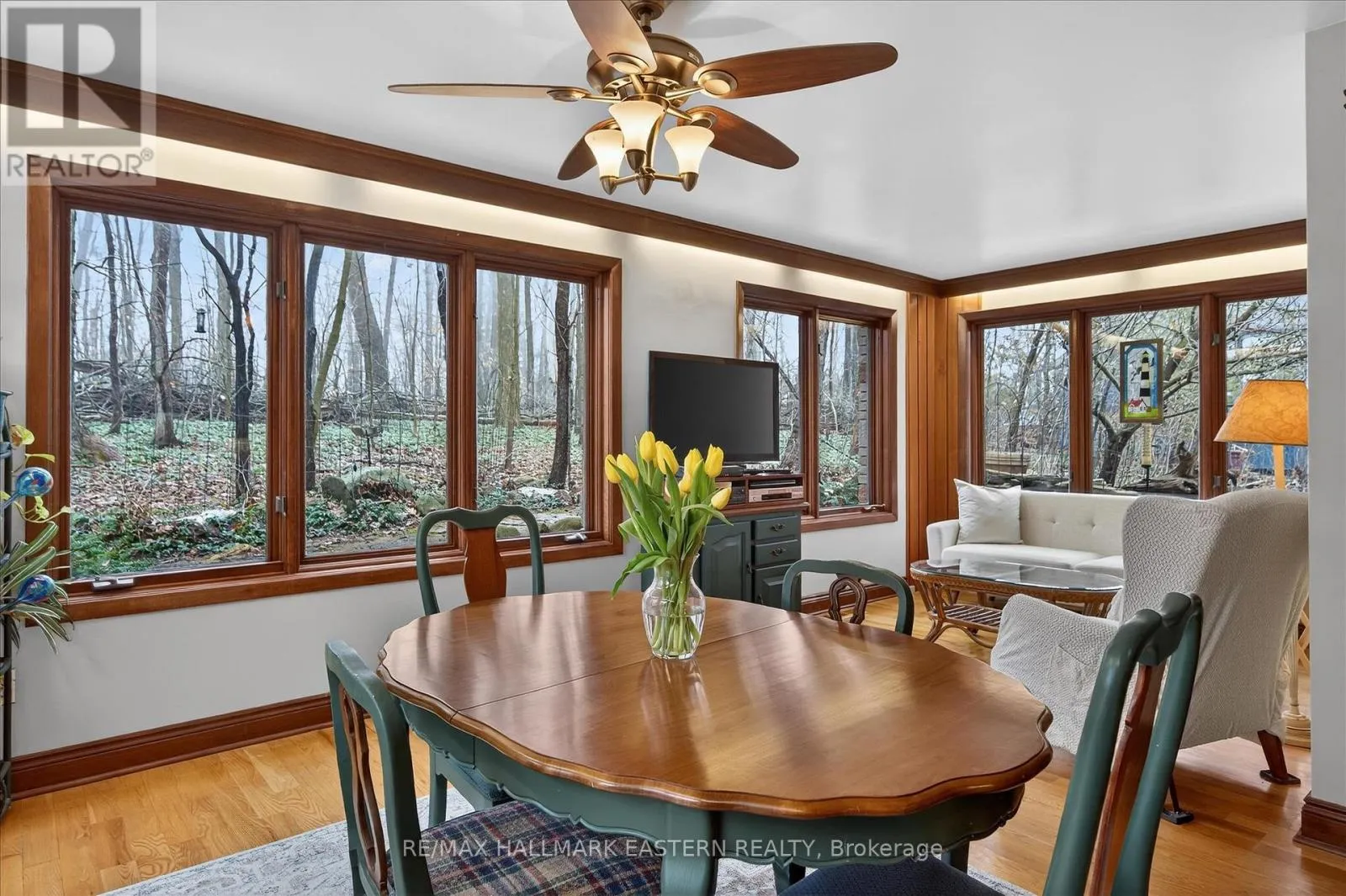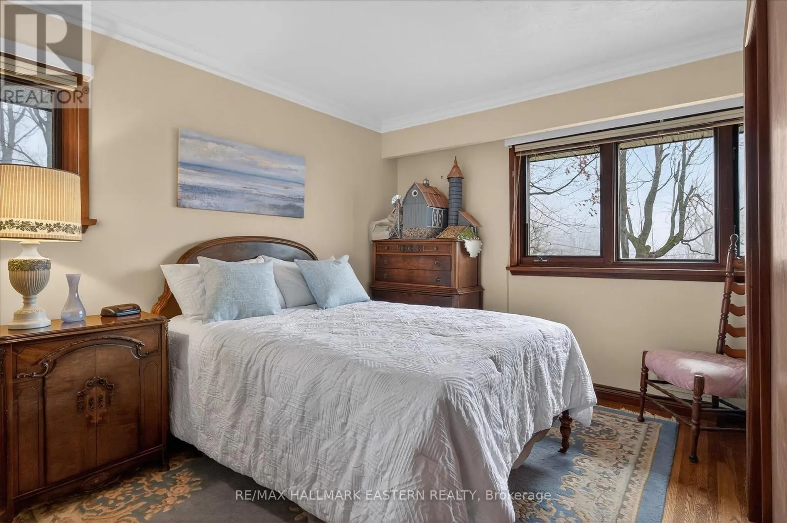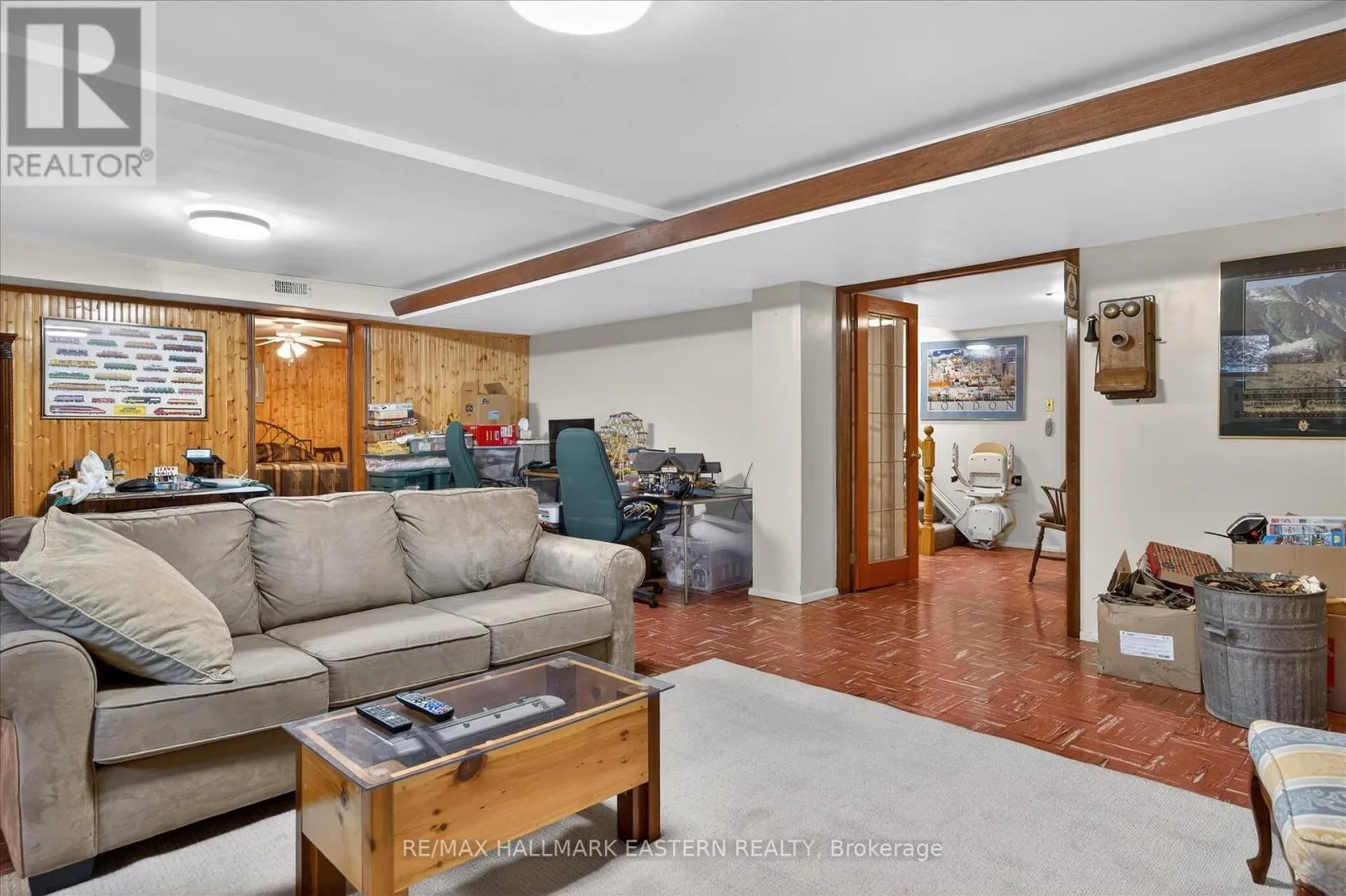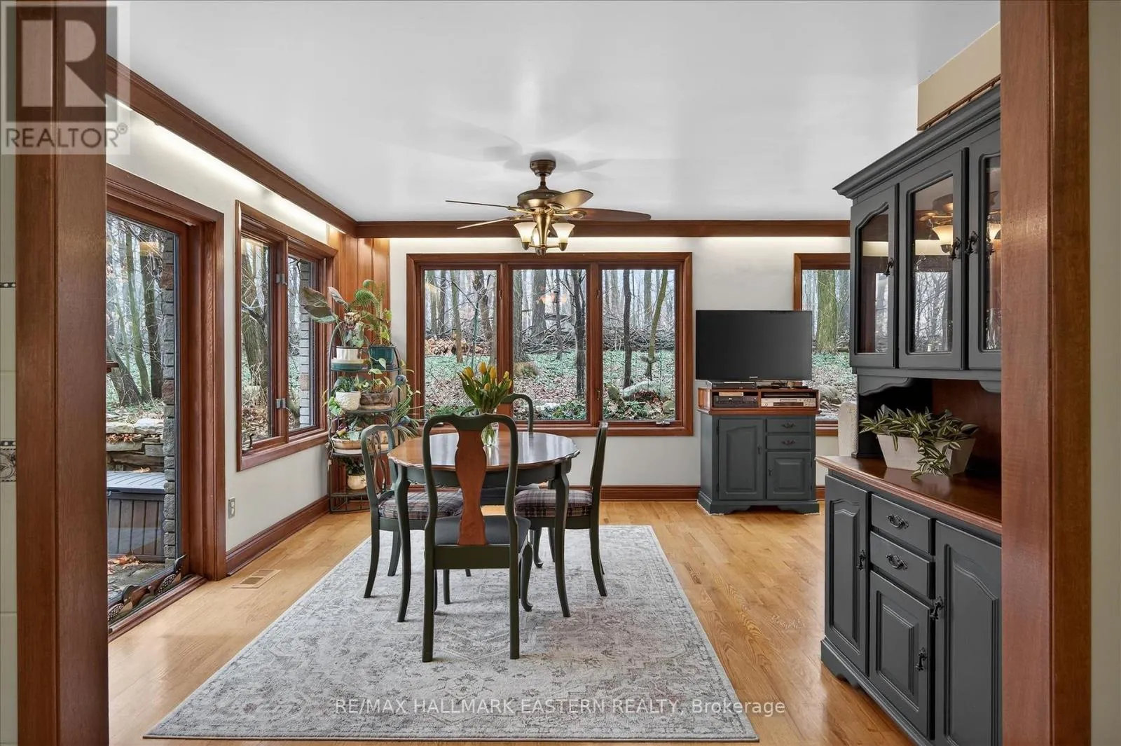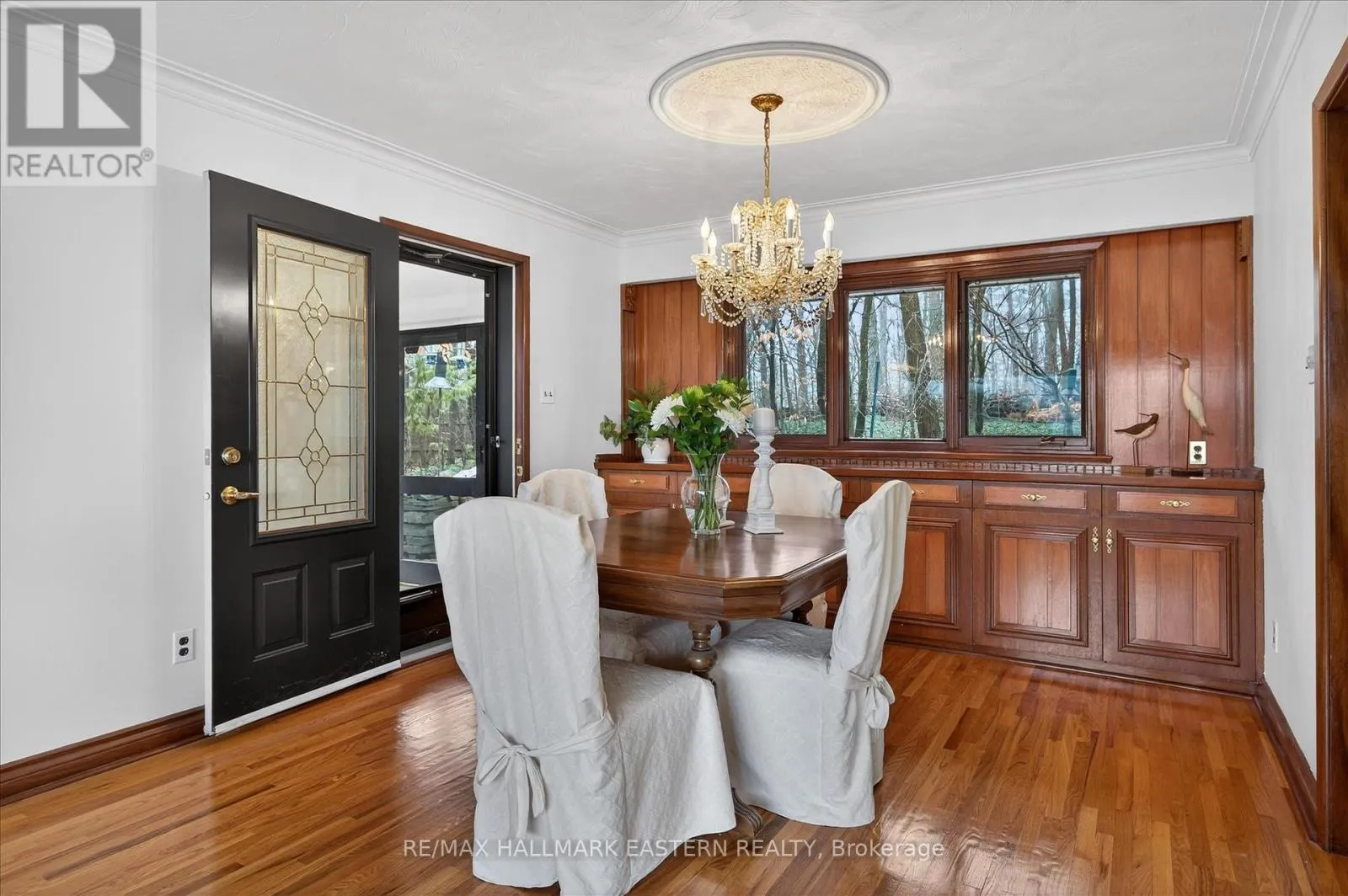 Cross Streets: kawartha Heights and Crestwood Ave. ** Directions: Sherbrooke St, south on Woodglade, first right on Ridgewood Road to 143. Rare opportunity to own this executive custom-built brick bungalow in one of Peterborough's most desirable west-end neighbourhoods. Situated on an elevated 1/2 acre private lot, this home offers sweeping views and backs directly onto the forested Oakwood Park. From the street the home exudes curb appeal with it's light shade of brick and stone complemented by dark trim. The interior features spacious primary rooms starting with the expansive living room (528 sq ft) a true showstopper, boasting floor-to-ceiling windows, luxurious wood accents and a wood-burning fireplace. The dining room includes a built in buffet and walk out to a screened in room, perfect for hot summer dining. The kitchen, featuring custom wood cabinetry, flows seamlessly into a spacious family room with sliding doors leading to a private flagstone patio. The main level includes three bedrooms and two bathrooms, including the primary ensuite with soaker tub. And if additional living space is needed the basement provides a versatile recreation room with a second wood fireplace, a home office, a third bathroom, and direct garage access, offering excellent in-law potential. Enjoy the tranquility of a quiet, treed setting while remaining minutes away from top-rated schools, grocery stores, and public transit. This home perfectly blends nature-inspired living with modern convenience. Experience the best of west-end living on a quiet street where you can hear the birds. (id:27476)