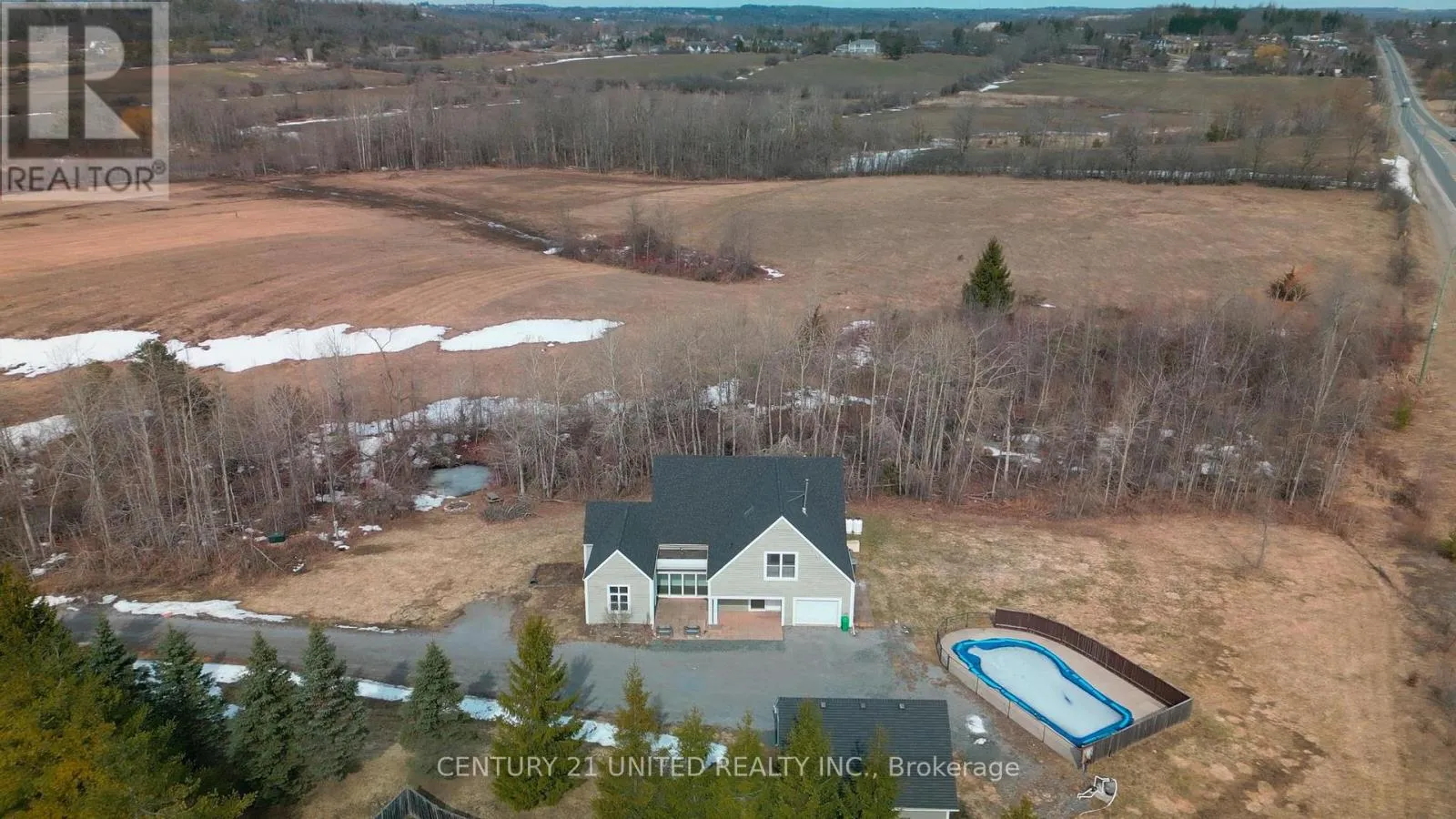 Television Road & Maniece Avenue WOW! Stunning Custom Estate on 7 Private Acres - 590 Maniece Drive is the Perfect Blend of Country Serenity & Urban Convenience. Welcome to 590 Maniece Drive, a breathtaking custom-built estate sitting on nearly 7 acres of rolling landscape. This rare property offers the tranquility of a stream running through your backyard and open farm fields, all while being located within the city. Boasting dual frontage on both Maniece Drive and Television Road, this is a premier land holding with unmatched potential. Designed with thoughtful versatility and luxury, this 4 bedroom home is divided into two distinct living areas, perfect for multi-generational families or those seeking a private guest retreat. The main home features four spacious bedrooms, soaring vaulted ceilings, and massive windows that bathe the open-concept living space in natural light. The accessible wing is a fully private, fully accessible bachelor suite. This custom built wing features extra-wide hallways and doors, a roll-in shower, a roll-in sink, and a transfer lift for the bathtub - providing ultimate comfort and accessibility. Outdoor Oasis, relax by your private in-ground pool or explore the sprawling acreage and winding stream. The Handy-person shop, is a detached double car garage comes equipped with a finished loft, ideal for a home office, gym, or hobbyist's playground. Location, experience "country living in the city." You are minutes away from easy commuting and quick access to Highway 115 for a seamless drive to the GTA. Lifestyle, moments from local golf courses and the scenic beauty of the Kawarthas. Convenience, all major amenities, including shopping and Lansdowne Street corridor, are just a short drive away. Discover the accessibility, privacy, and prestige of 590 Maniece Drive. (id:27476)