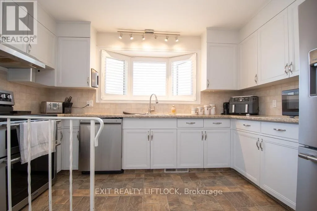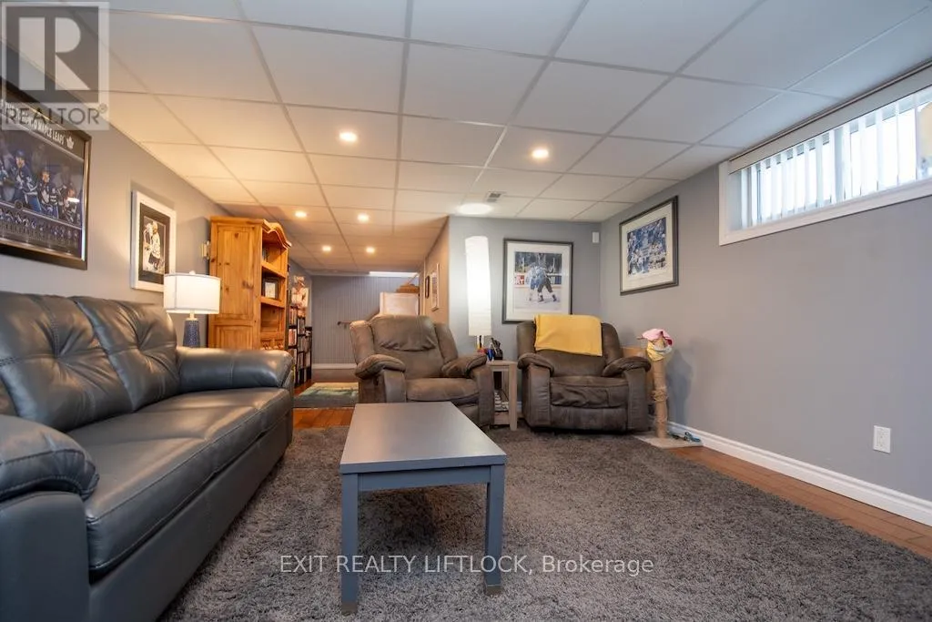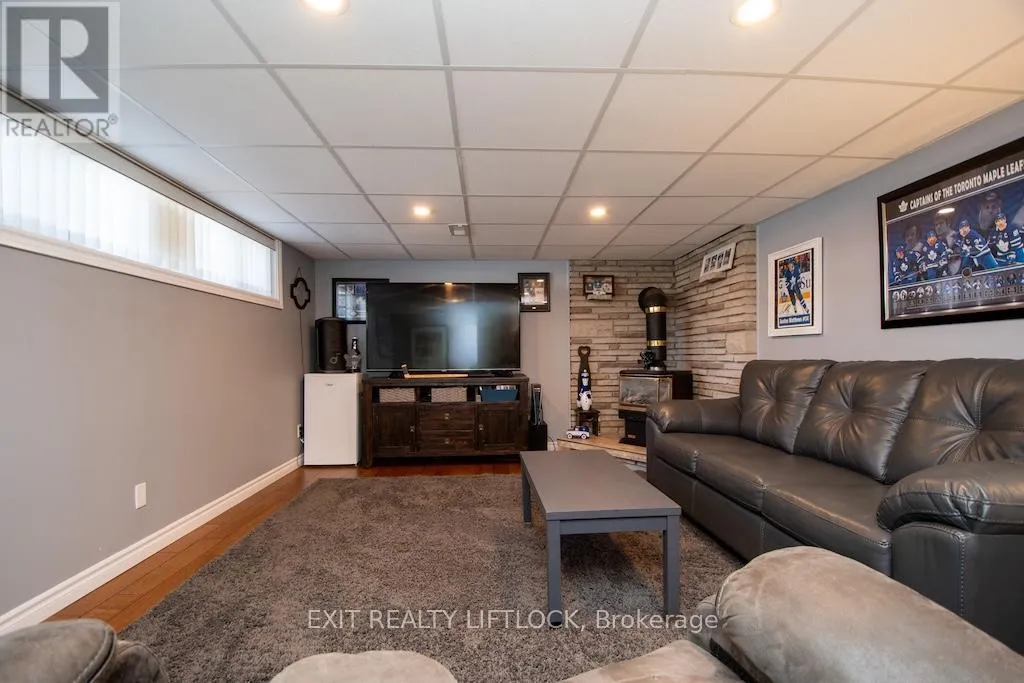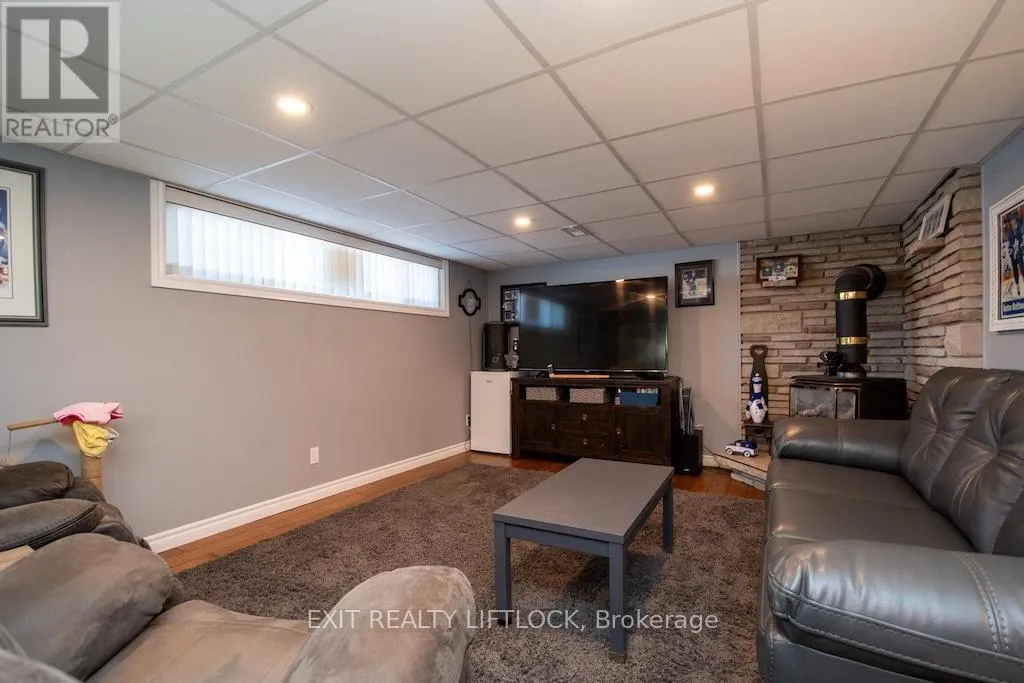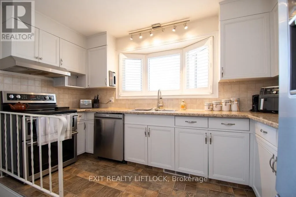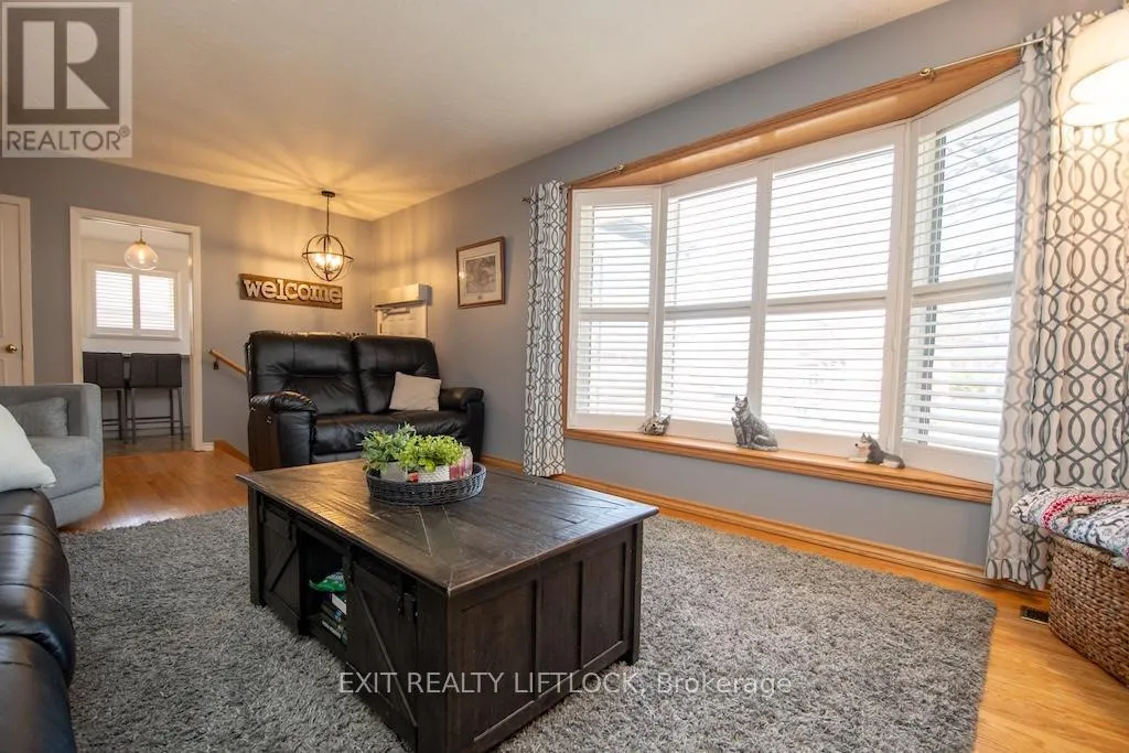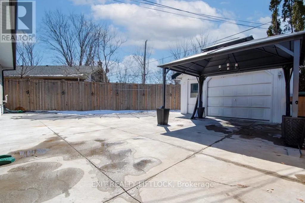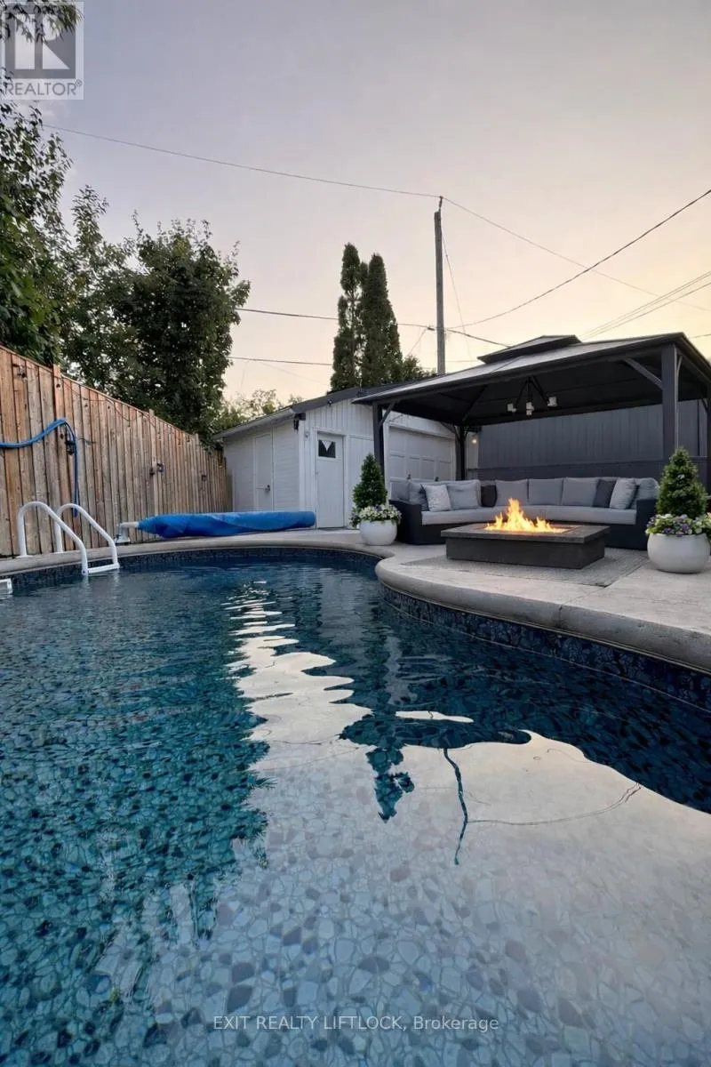 Fairbairn-Hillside-Westdale Welcome to this beautifully maintained all brick bungalow, ideally situated in Peterborough's sought-after north end. The main level offers three well-appointed bedrooms and a newly updated bathroom (2025), along with elegant hardwood flooring throughout. A bright and spacious living room is filled with natural light from a large front window, creating a warm and inviting atmosphere. The eat-in kitchen features newer, high-end stainless steel appliances and a functional layout designed for both everyday living and entertaining. A convenient side entrance leads to a fully finished lower level, complete with a cozy family room featuring a fireplace and pot lighting an additional bedroom, a bathroom, and a dedicated laundry area-ideal for extended family living or added versatility. Step outside to your private backyard retreat, highlighted by a newly installed heated, kidney-shaped saltwater in-ground pool surrounded by low-maintenance stamped concrete. A hardtop gazebo with solar lighting enhances the space, making it perfect for relaxing or hosting guests. The property also features a new fence along the north side (2025) for added privacy, as well as a detached 1.5 car garage. Recent updates include shingles, furnace, air conditioning, hot water tank, and the newly renovated upstairs bathroom (2025), offering peace of mind for years to come. Conveniently located near parks, walking and biking trails, schools, and essential amenities, this home clearly reflects pride of ownership throughout. (id:27476)