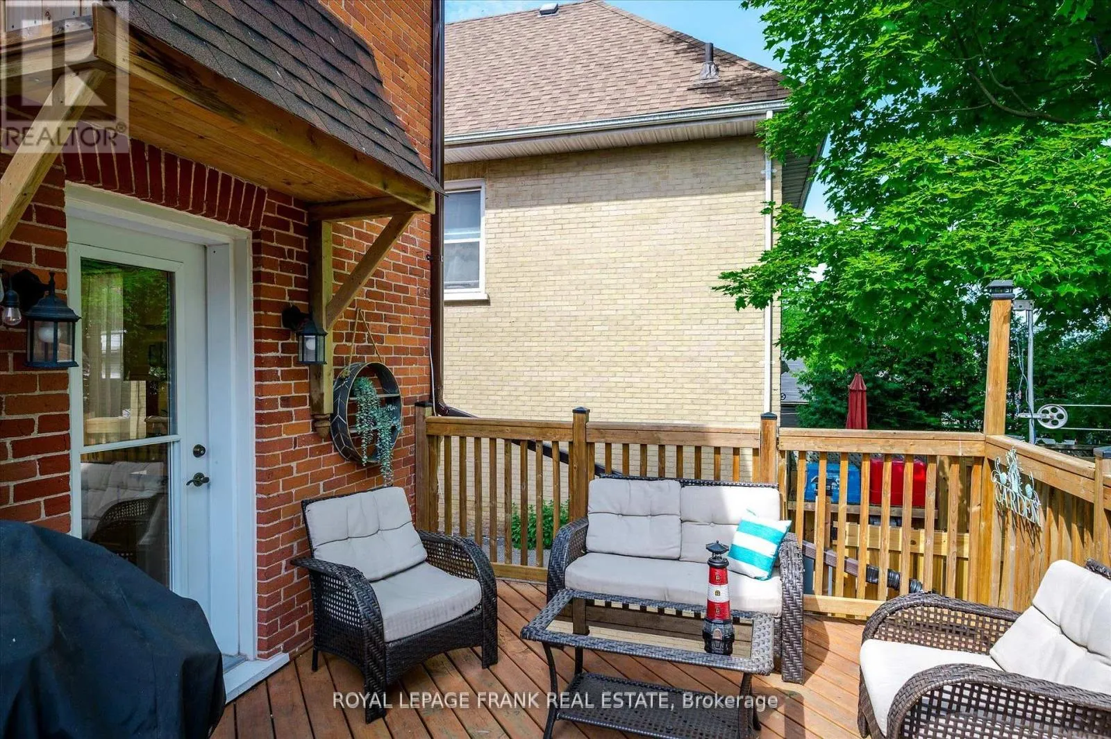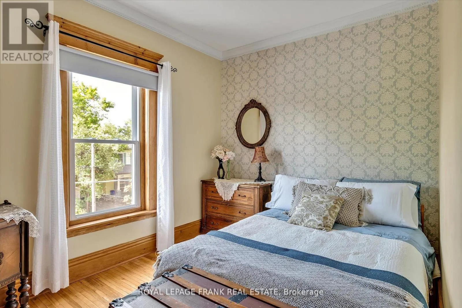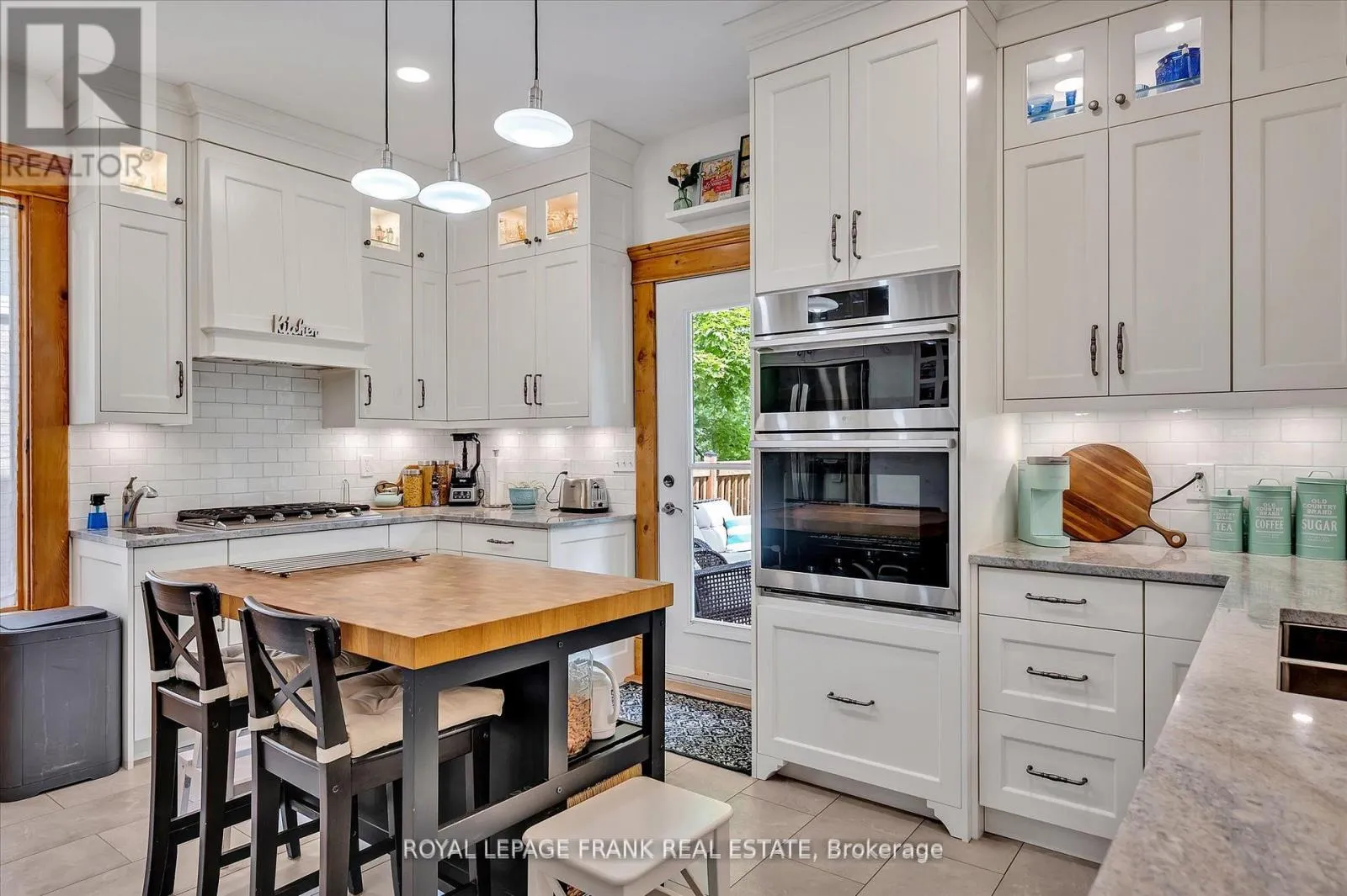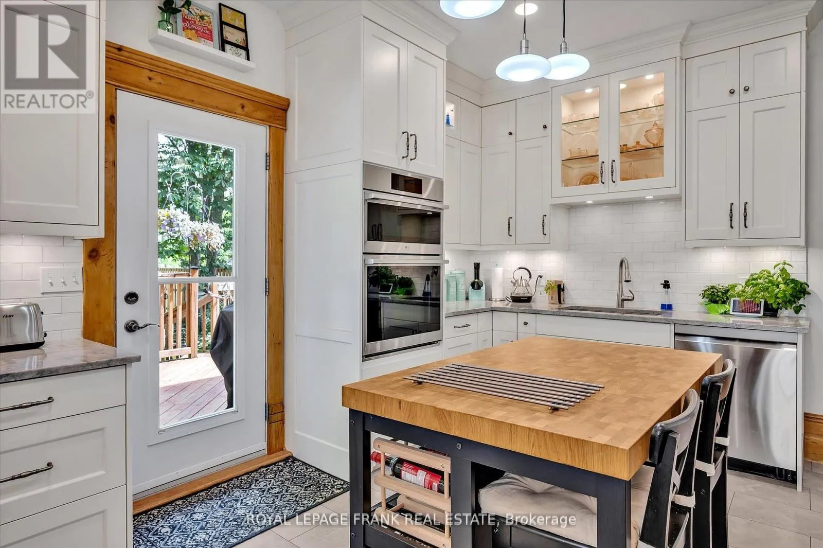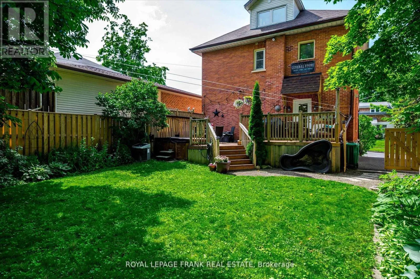 Sophia St Between Burnham and Mark St Absolutely beautiful century home in desirable East City in Peterborough. Lovingly restored and updated, this 5 bedroom, 3 bath home is sure to please. Gorgeous high baseboards, trim and bannisters show the exquisite craftsmanship and charm of homes of the era, including some gorgeous restored but original period light fixtures. The covered porch stretches the entire from of the house and you enter to a grand foyer which welcomes you with open arms. Main floor laundry, a spacious living room with archway to a formal dining room, main floor powder room and a newer spectacular Hickory Lane kitchen with granite counters, tile back splash, a Butcher Block island and high end appliances. Walk out to a private deck and hot tub and nicely treed backyard. The second floor boasts 4 spacious bedrooms and a four piece bath. Primary bedroom is on the 3rd floor with a brand new 3 piece ensuite with walk in shower. The lower level offers a great family/tv room with option for another bath as well as ample storage. Sophia Street is so desired because its a 10 minute walk to downtown, less than that to the historic Liftlocks on the Trent Severn Waterway, and to Ashburnham Village offering everything you could want or need. Great schools nearby, come and enjoy Peterborough at its finest. (id:27476)