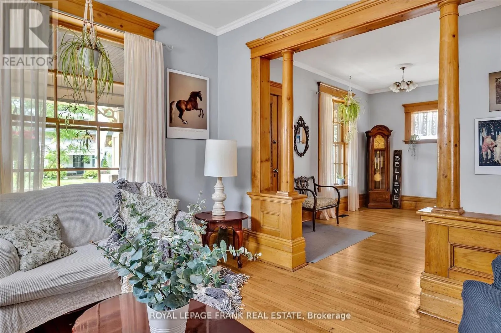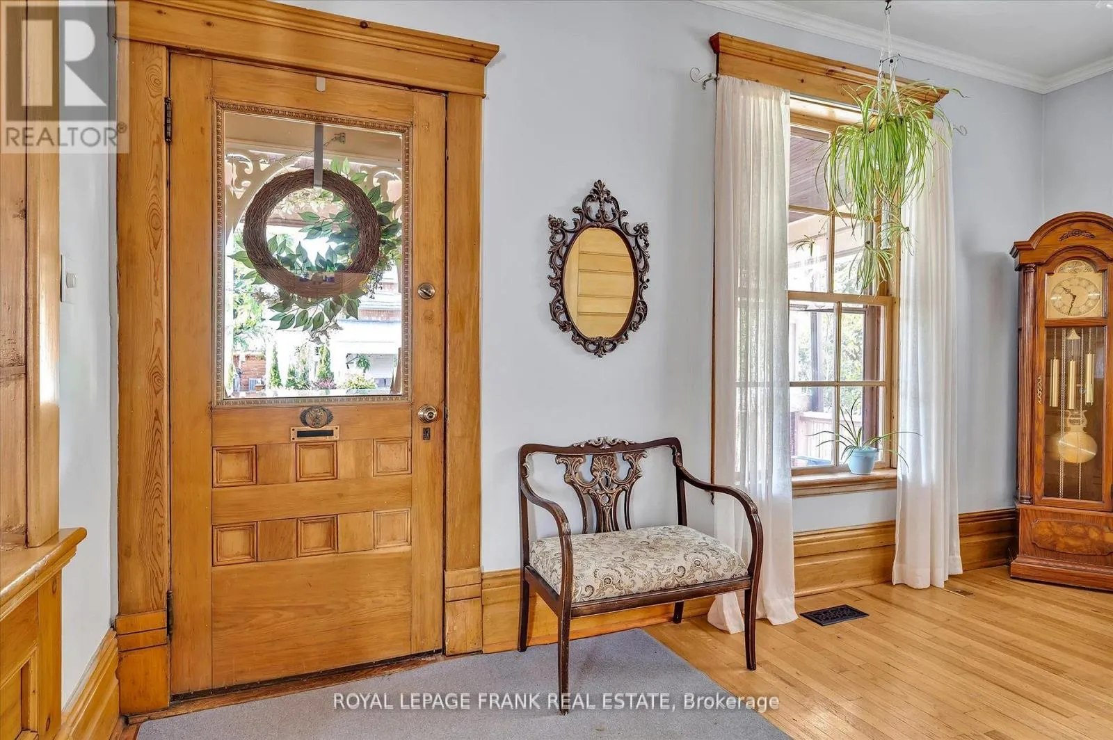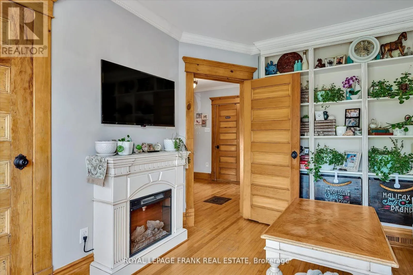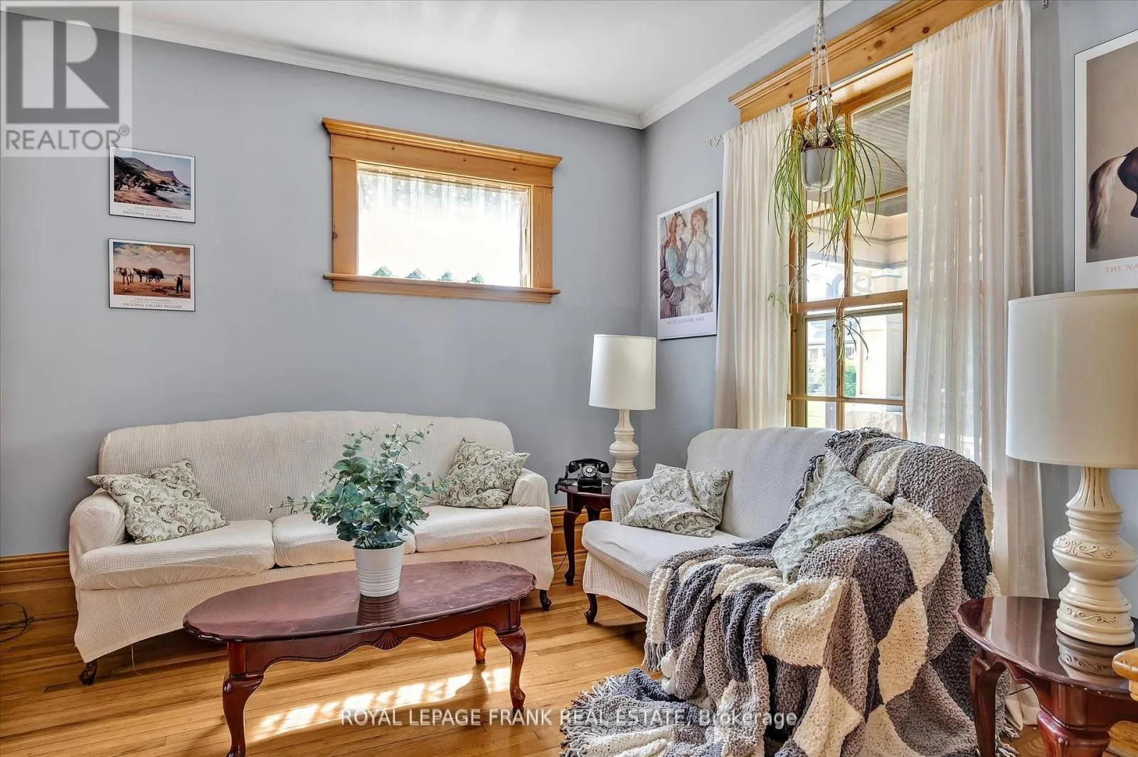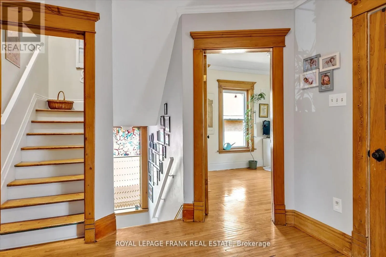 Sophia St Between Burnham and Mark St Absolutely beautiful century home in desirable East City in Peterborough. Lovingly restored and updated, this 5 bedroom, 3 bath home is sure to please. Gorgeous high baseboards, trim and bannisters show the exquisite craftsmanship and charm of homes of the era, including some gorgeous restored but original period light fixtures. The covered porch stretches the entire from of the house and you enter to a grand foyer which welcomes you with open arms. Main floor laundry, a spacious living room with archway to a formal dining room, main floor powder room and a newer spectacular Hickory Lane kitchen with granite counters, tile back splash, a Butcher Block island and high end appliances. Walk out to a private deck and hot tub and nicely treed backyard. The second floor boasts 4 spacious bedrooms and a four piece bath. Primary bedroom is on the 3rd floor with a brand new 3 piece ensuite with walk in shower. The lower level offers a great family/tv room with option for another bath as well as ample storage. Sophia Street is so desired because its a 10 minute walk to downtown, less than that to the historic Liftlocks on the Trent Severn Waterway, and to Ashburnham Village offering everything you could want or need. Great schools nearby, come and enjoy Peterborough at its finest. (id:27476)