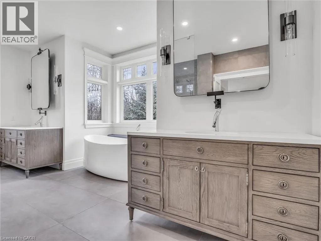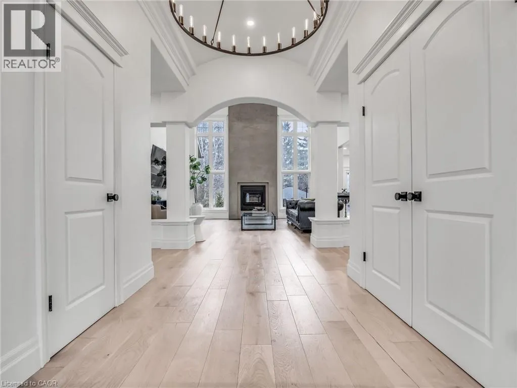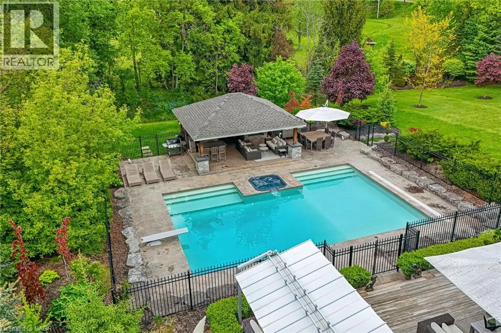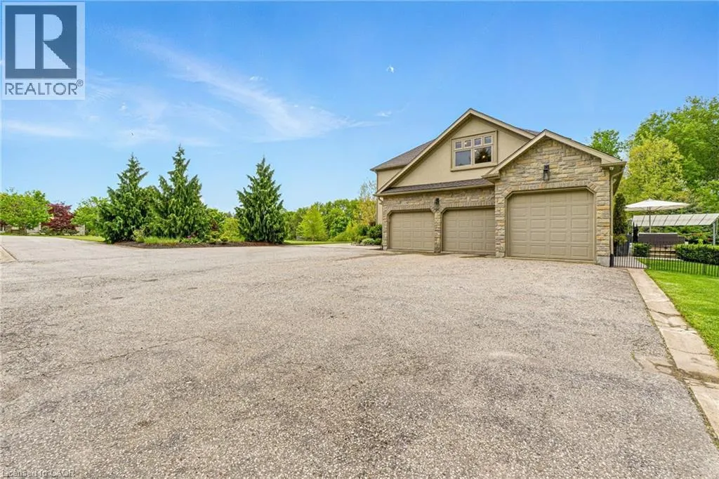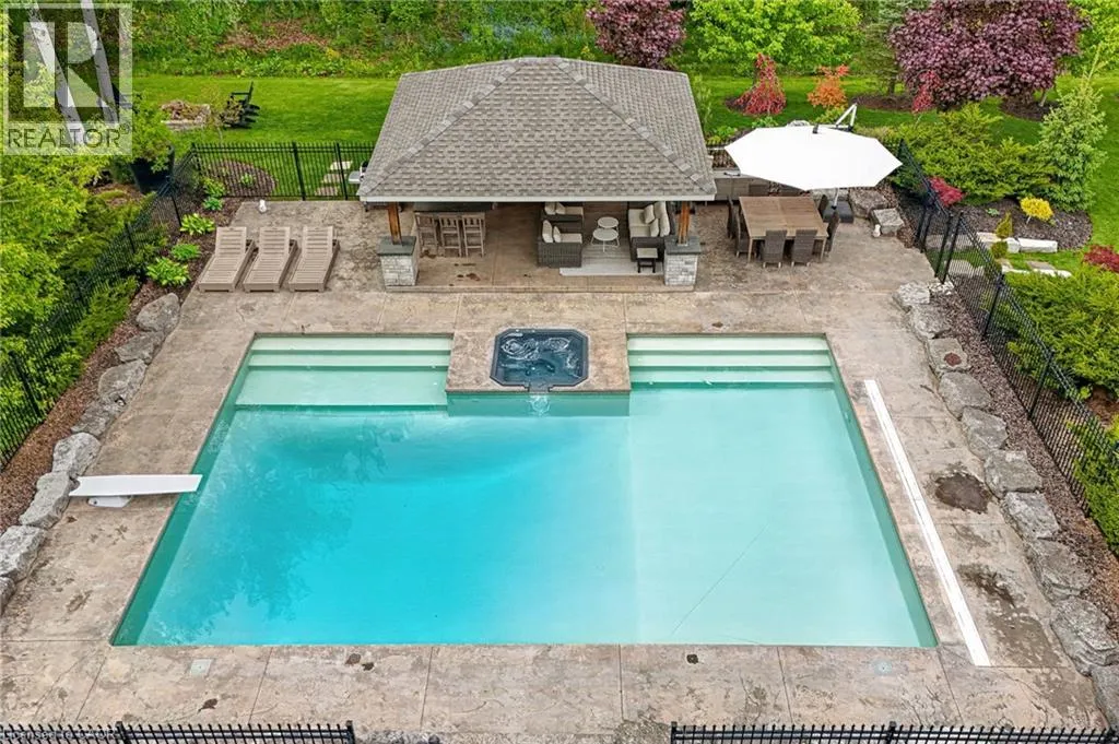 Notre Dame to Reinhart Place This is your Dynasty! Nestled on one of the most prestigious streets in Petersburg, this grand home sits on a 1.33-acre lot, showcasing craftsmanship and quality. Featuring 4 bedrooms, 5 baths, and triple-car garage. Step through the custom oversized wood front door or auxiliary entrance and experience clean, timeless décor. A two-story living room with coffered ceilings and a floor-to-ceiling fireplace sets the stage. A custom kitchen, with waterfall island, built-in Thermador appliances, and separate servery, alongside main-floor laundry, office, and a luxurious primary suite with walk-in closet and spa-like ensuite, including a two-person glass shower, soaker tub, heated floors, and high-end fixtures. Upstairs hosts 3 spacious bedrooms and 2 renovated bathrooms. The finished basement offers polished concrete floors, a central bar, wine cellar, games room, and updated bath. Professionally landscaped grounds feature trees, shrubs, rock, and lighting. The backyard is a paradise, with a heated 20x40 pool, built-in spa, pool house cabana with washroom, changeroom, dining area, and lounge with gas fireplace. A multi-level deck includes a hot tub, natural gas hookups for a fire table and BBQ. Adjacent greenspace offers potential for an outdoor rink, sports court, or workshop. This architectural masterpiece embodies luxury and convenience at every turn. With high-end finishes, state-of-the-art appliances, and thoughtfully designed spaces, it is the epitome of comfort and elegance; an unrivaled retreat. (id:27476)