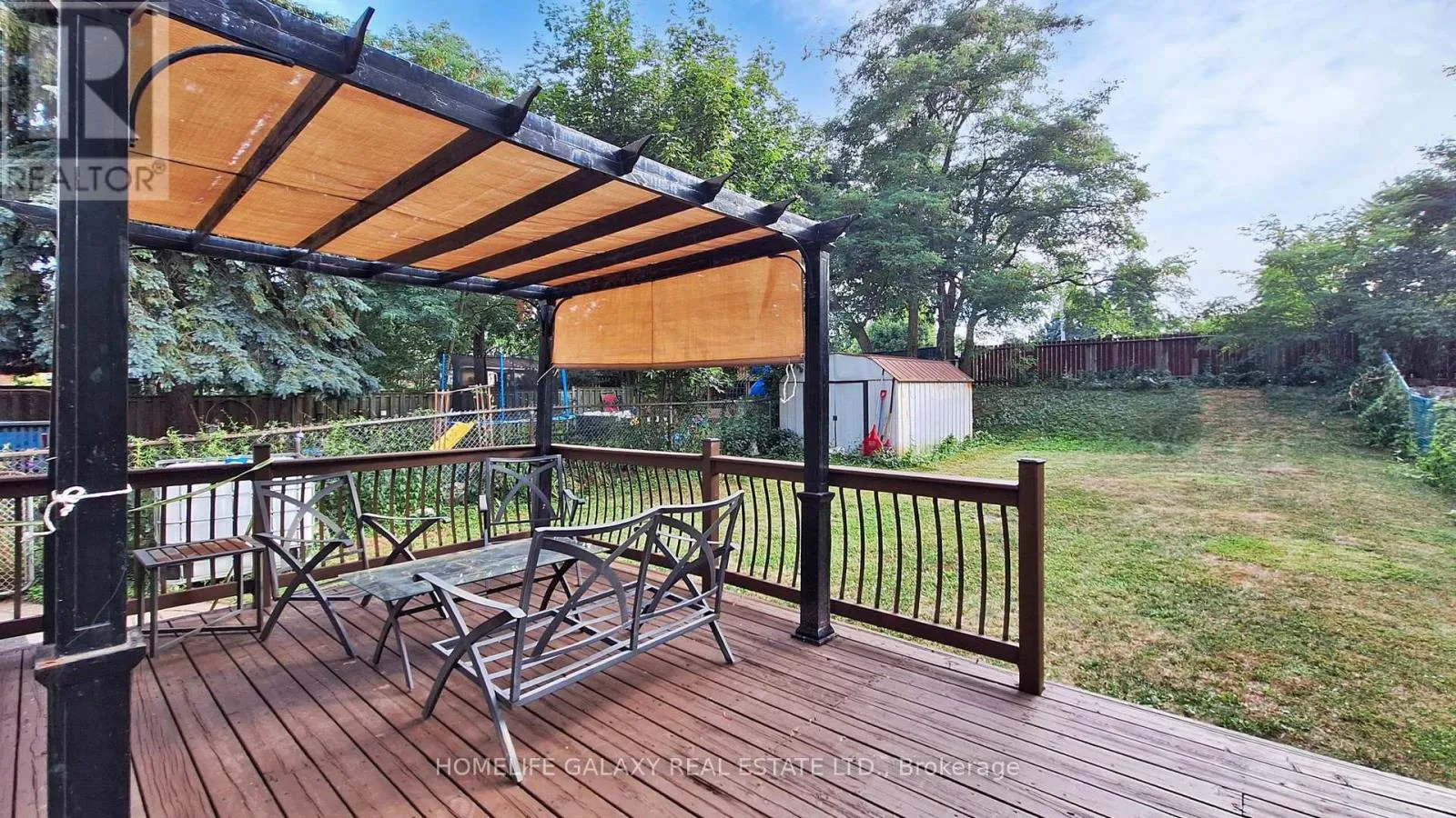 Whites N Of Sheppard Welcome to 1882 Shadybrook Dr, nestled in Pickerings highly sought-after Amberlea neighbourhood. This spacious and freshly painted 5-bedroom, 4-bathroom home offers a warm, functional layout perfect for growing families. The main level features gleaming hardwood floors, a sun-filled eat-in kitchen, and generous living and dining areas. The fully finished basement comes with a separate entrance and a kitchen rough-in, offering excellent potential for an in-law suite or future rental income. Step outside to a beautifully landscaped backyard designed for both relaxation and entertainingcomplete with a large deck, covered BBQ area, gazebo wired with lighting, and a separate play area for kids. The home also includes a double garage with direct access, extended driveway parking, and sits within walking distance to top-rated schools, parks, trails, grocery stores, and transit. With quick access to Highway 401, this move-in ready home combines comfort, convenience, and value in one of Pickerings most family-friendly communities. (id:27476)