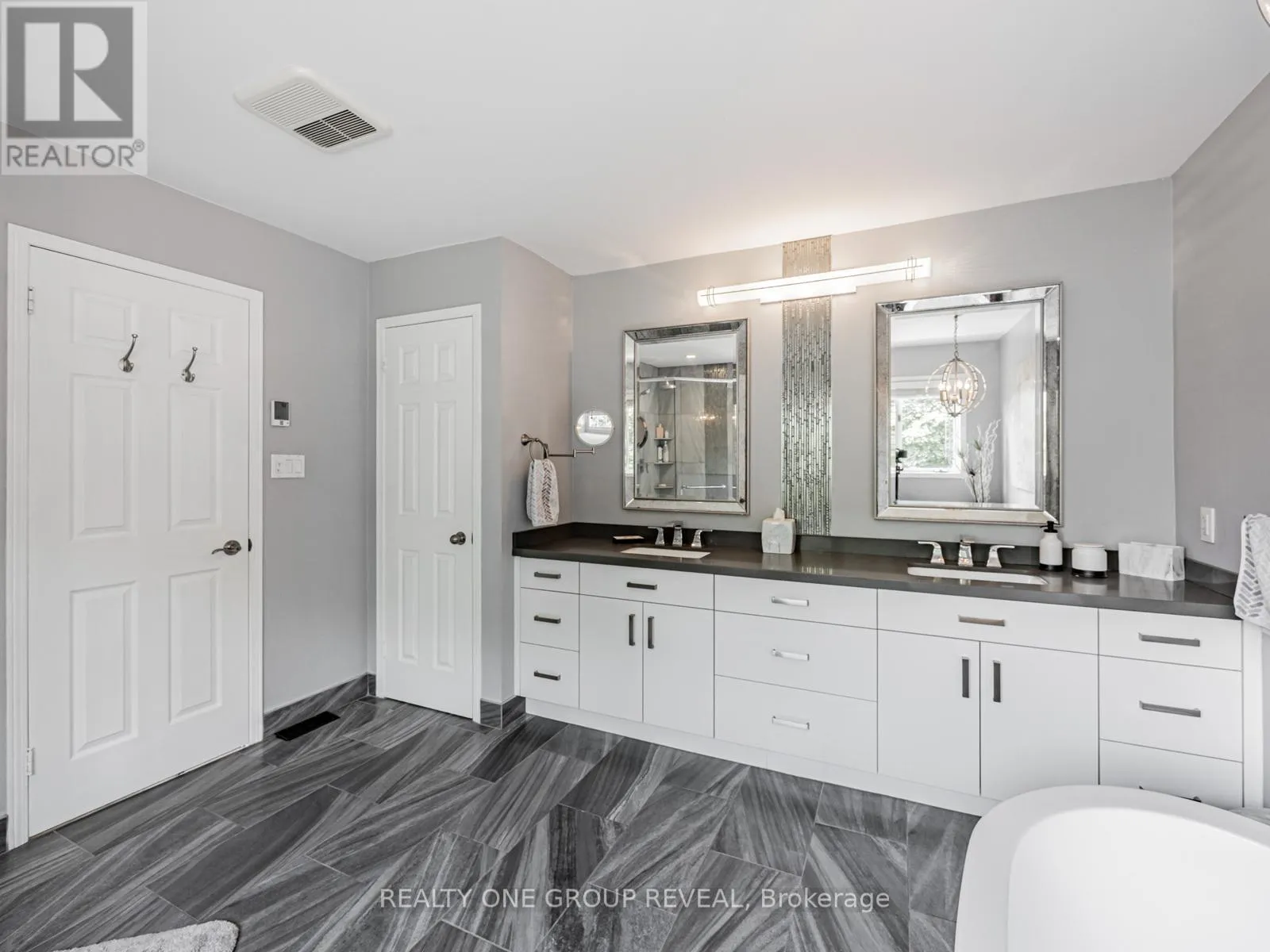 Cross Streets: Fairport North of Finch. ** Directions: From Kingston Rd head north on Whites Rd, east on Finch Ave, north on Fairport Rd, west on Baylawn Dr. Located on one of Pickerings most prestigious streets, this Coughlan-built 4 BR, 4 Bath home ticks all the boxes. $$$ of upgrades. No carpeting! 9' ceilings! Travertine floors and hardwood on main floor. 5-1/2" baseboards throughout; crown molding in many of the rooms. Large, bright kitchen refreshed in 2024 with quartz counters and new patio slider 2021. Most windows replaced. New double door entry 2019 and new garage doors 2021. New gas fireplace and quartz surround 2025. Double-entry doors to a huge Master bedroom with custom walk-in closet. Master spa-like ensuite has glass enclosure shower, free-standing tub, large double vanity, linen closet and bidet. 2nd bedroom has ensuite was redesigned with glass and ceramic tiles + glass shower door. 3rd bathroom is an ensuite for 3rd bedroom and services the 4th bedroom currently being used as an office. Curved oak staircases restained and painted with a new Australian wool stair runner. Private backyard with large stone patio and inground spa being used as a hot tub but can be a plunge pool in the summer. IG sprinklers. Basement boasts an extra-large storage/furnace room and RI for additional bathroom to create an in-law suite. Easily parks 6; driveway recently paved. Located on a quiet cul-de-sac and steps to green space and walking trail. Close to all amenities schools, groceries stores, banks, restaurants, gyms etc. 10 minutes to the 401 and lake/conservation area; 10 minutes to the 407. Book a showing today to see your dream home in person!Inclusions: Inground spa, spa equipment, shed, built-in BBQ, stove, fridge, dishwasher, microwave, washer, dryer, all ELFs, built-in speakers in kitchen with Sonos; basement workbench, 2nd fridge, chest freezer, basement desk, bookshelves and shoe storage units; all shutters and draperies, one GDO (id:27476)