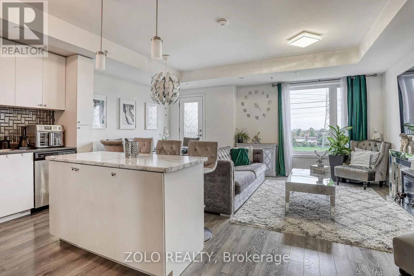 Cross Streets: Kingston Rd & Valley Farm Rd. ** Directions: Just East of Valley Farm Rd on Kingston Rd. Welcome to this beautiful stacked townhouse by Marshall Homes in Pickering's sought-after Center Point Towns community. This stylish home offers a bright open-concept layout featuring a modern bright kitchen with center island, stainless steel appliances, and a double sink, flowing into a cozy living area with laminate flooring and a balcony with sunny east exposure. The upper level offers a spacious primary bedroom boasts his-and-hers closets and a 4-piece ensuite, while the second bedroom includes a large window & double-door closet. Enjoy the convenience of a second full bath and in-unit laundry. Step up to the large sun filled private rooftop terrace with gas BBQ hookup, privacy fencing, hose bib, and plenty of room to relax or entertain. Close to GO Transit, Hwy 401, shopping, restaurants, and more. A perfect turnkey home in a vibrant location! (id:27476)