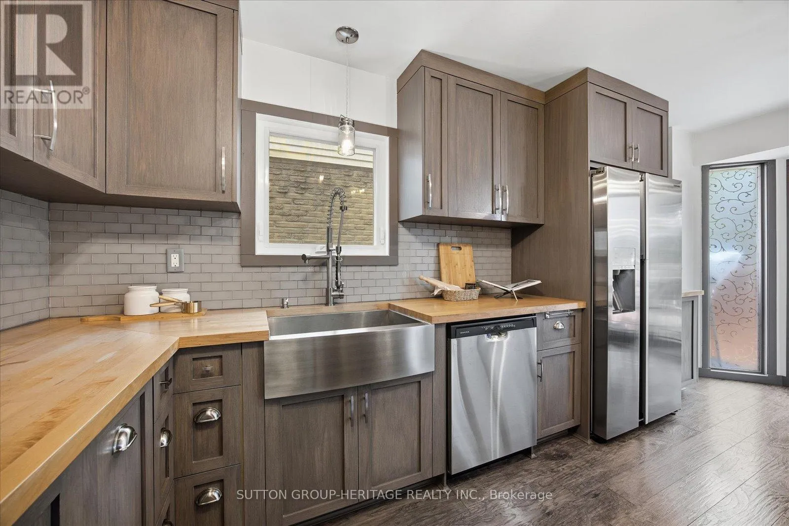 Cross Streets: Whites Road & Strouds Lane. ** Directions: 401 to Whites, north to Strouds Lane. East on Strouds,North on Cricket, East on New, North on Woodruff. Listing on East Side. Welcome to this beautifully renovated 3-bedroom home in one of Pickerings' most sought-after family communities -- Amberlea. Combining modern farmhouse style with everyday comfort, this home offers a truly move-in-ready experience for todays discerning buyer. Step inside to modern décor, stylish finishes, and natural light throughout. The upper level features luxury vinyl plank flooring adding durability and contemporary charm to every room. The heart of the home is a custom-designed eat-in kitchen (2017) with stainless steel appliances, where the butcher block counter and stainless steel apron sink add to the character of this inviting, open space. Custom cabinets ensure abundant storage and counter space. From here, walk out to a large deck overlooking the backyard perfect for morning coffee or summer entertaining. Upstairs, retreat to your spacious primary bedroom complete with a rare walk-in closet large enough to host a home office (2021). A full ensuite bathroom completes your own private sanctuary. Additional bedrooms are generously sized and ideal for family, guests, or a work from home space. The fully finished walk-out basement offers even more living space perfect for a recreation room, gym, games room or future in-law suite with direct access to the private backyard for seamless indoor-outdoor living. (Furnace/AC 2021) Located close to top-rated schools(including Gandatsetiagon Public School which is highly rated by the Fraser Institute); parks; shopping (Amberlea Plaza with groceries, a pharmacy and more); transit and with quick access to Highway 401 and the GO Station, this house is ready for you to move in and call it home. Don't miss this opportunity to own in one of Pickering's most desirable neighbourhoods. (id:27476)