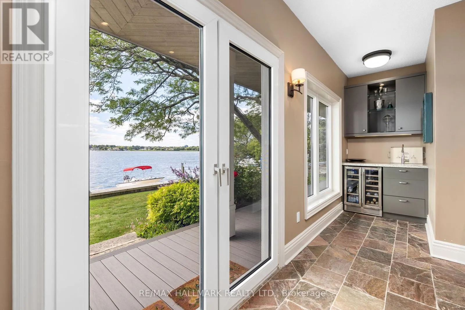 Cross Streets: Wharf St / Liverpool Rd. ** Directions: South of Bayly Street and West of Liverpool Road. An impressive 90 feet of private shoreline on Frenchmans Bay! This amazing property offers true direct and sheltered waterfront access a rarity anywhere in the GTA. Complete with 4-bedrooms and three full baths, this custom home offers a unique layout with breathtaking views from the second-story kitchen and living room, where expansive windows open onto a spacious wraparound veranda. Nestled in the heart of Frenchmans Bay Nautical Village, youre steps from the beach, scenic trails, marinas, and restaurants in a vibrant, southern-inspired community. The lifestyle is unmatched paddleboarding, sailing, and kitesurfing in summer, ice fishing and skating in winter all right at your doorstep. A rare opportunity, the property features a rebuilt breakwater and private dock with capacity for multiple vessels with direct access to Lake Ontario. Lovingly maintained by its original owners, this timeless home is ready for its next chapter of sunsets, waterfront beauty, and year-round recreation. (id:27476)