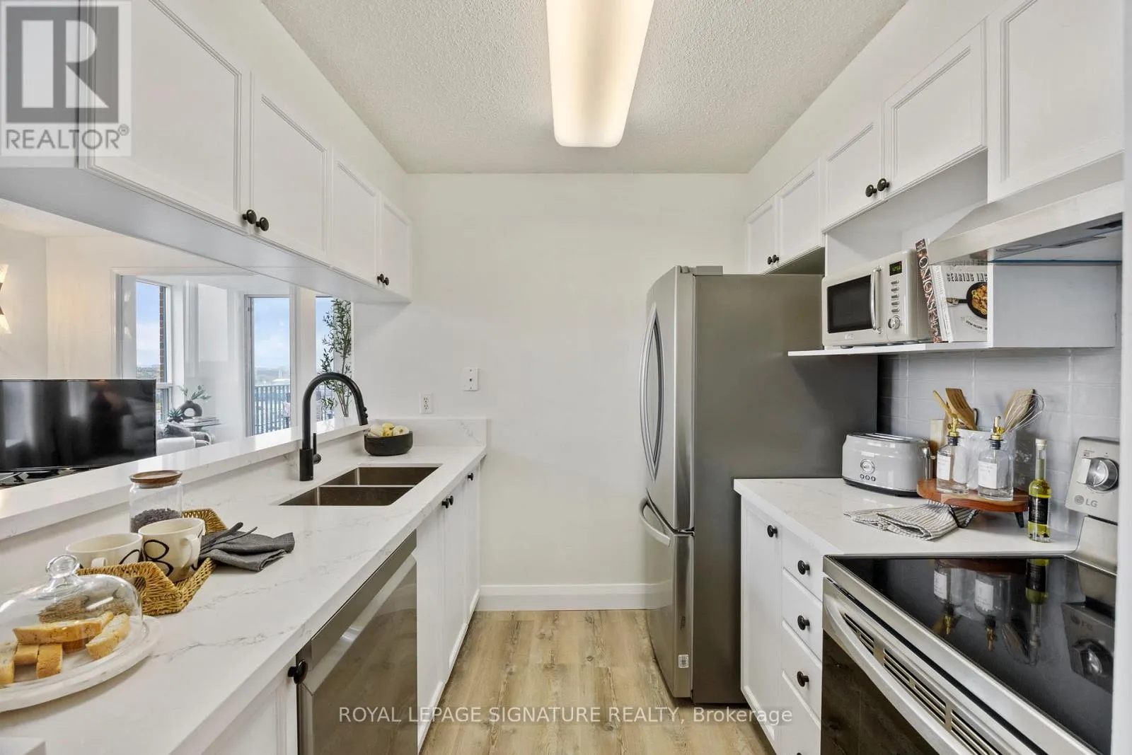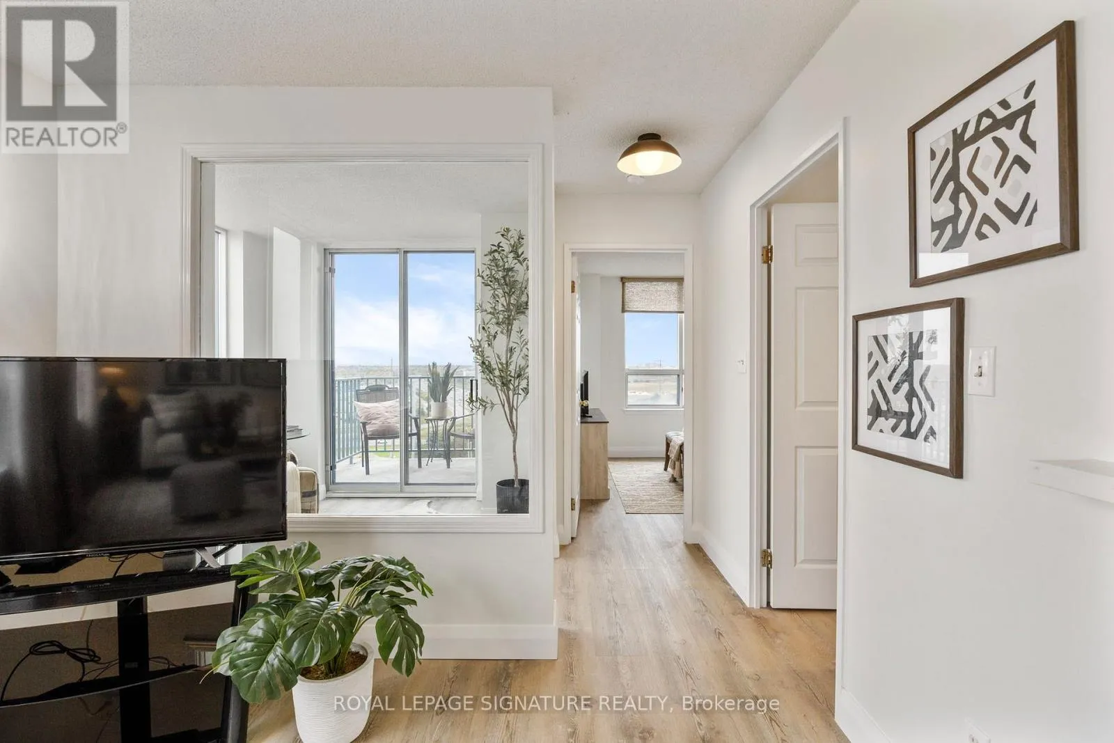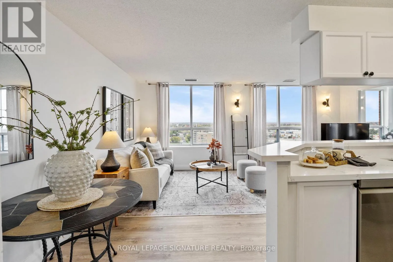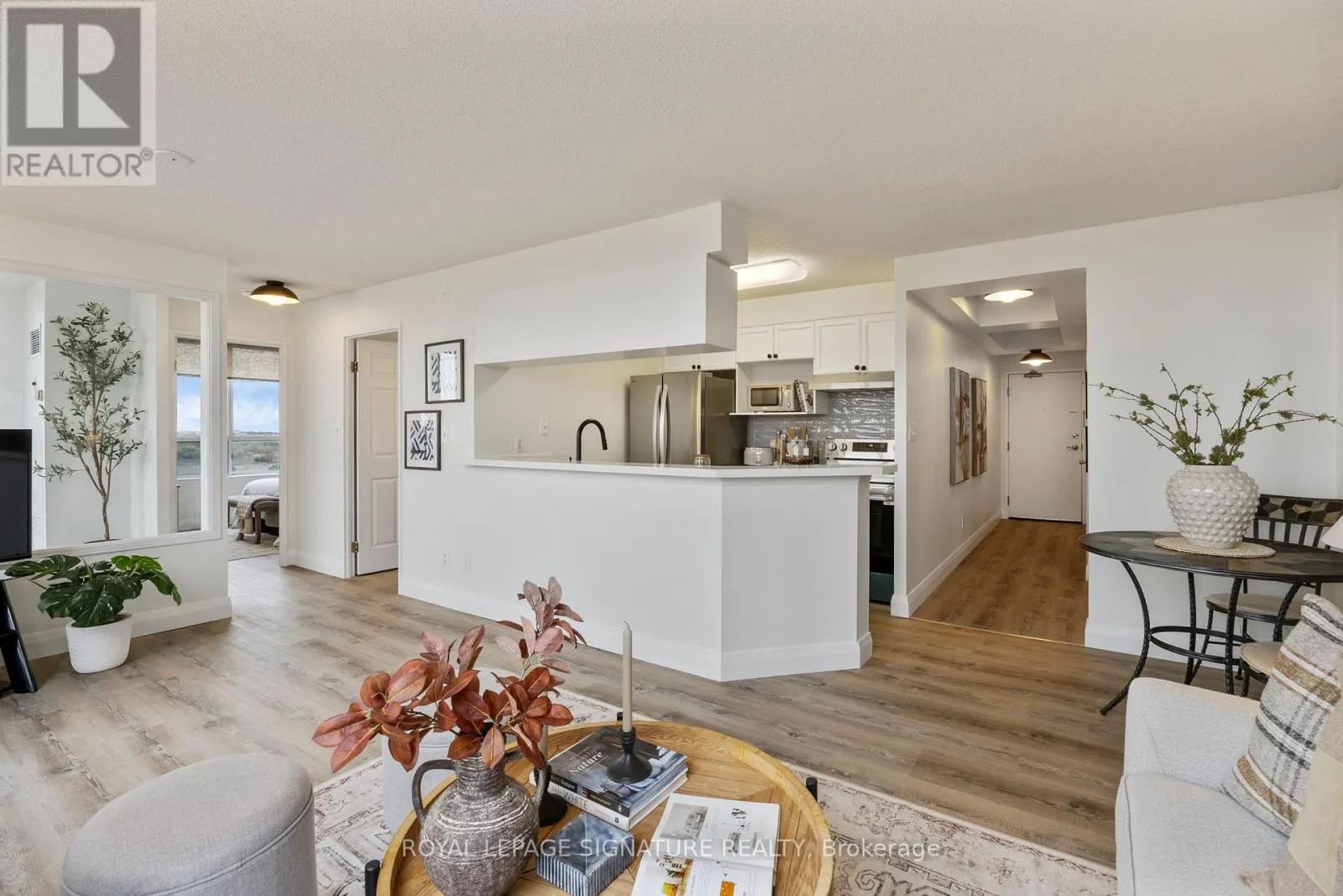 Brock Rd/Pickering Pkwy Don't Miss This Rare Opportunity to Own This Exceptional Brockstone Penthouse! Fully renovated in 2025, this stunning penthouse suite offers 771 sq ft of luxurious living space - the largest one-bedroom plus den layout in the building. Featuring two bathrooms, two parking spaces, and a locker, this suite showcases breathtaking northeast views with gorgeous sunrises and abundant natural light. Truly Turnkey Perfection! Brand new open-concept kitchen boasts sleek cabinetry, quartz countertops, stainless steel appliances (2025), a stylish backsplash and modern finishes. The spacious primary bedroom includes a walk-through with his and hers closets and direct access to a beautifully renovated 4-piece semi-ensuite. The bright den is ideal for working from home and offers access to the covered balcony, perfect for enjoying morning coffee or quiet evenings. Luxury vinyl plank flooring flows throughout. This move-in-ready penthouse gem combines luxury, convenience, and lifestyle - perfect for first-time buyers, professionals, or downsizers alike.The all-inclusive $661.39/month maintenance fee covers heat, hydro, water, air conditioning, parking, locker, common elements, and building insurance for truly worry-free living. Ideally located steps to Shops At Pickering City Centre, restaurants, parks, library, recreation centre and offering quick access to Hwy 401, Pickering GO Station, and the exciting new Pickering Casino & Arena District. Families will appreciate proximity to top-rated schools, parks, as well as Lake Ontario waterfront beach and trails, the marina, fantastic shops and restaurants at the south end of Liverpool. (id:27476)