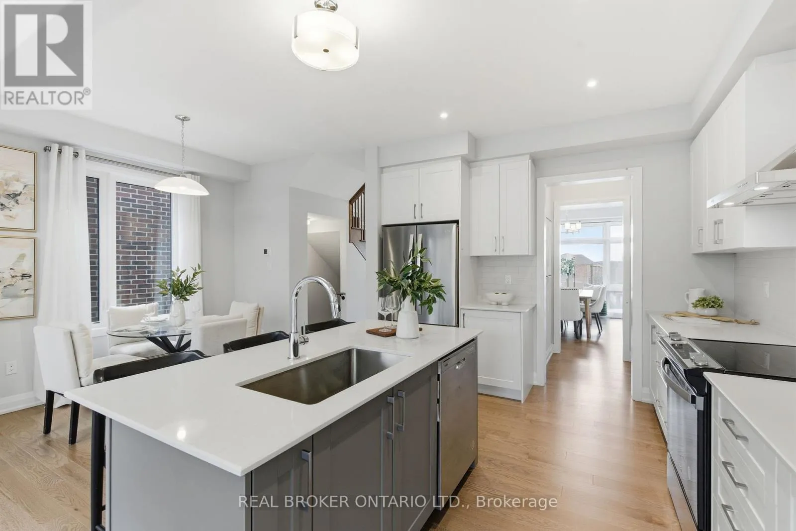 Taunton & Whites Rd Modern Elegance in the Heart of New Seaton. Welcome to this nearly new, end-unit freehold townhome offering over 2,000 sq. ft. of beautifully upgraded living space in one of North Pickering's most sought-after communities. Built less than a year ago by a top-rated builder, Brookfield, this home blends luxury, comfort, and functionality with countless builder upgrades and thoughtful design throughout.The bright, open-concept main floor is flooded with natural light from extra-large windows, creating a warm and inviting atmosphere. The chef-inspired kitchen features quartz countertops, premium appliances, and a butler's pantry that connects seamlessly to the formal dining room, perfect for entertaining or family gatherings. Step through your family room and walkout to a private back deck overlooking protected green space, where you can enjoy tranquil views year-round. Upstairs, a smart and spacious layout offers four well-appointed bedrooms, providing ample space for family and guests alike. The primary retreat includes a walk-in closet and a spa-like ensuite, while the convenient second-floor laundry makes everyday living effortless. The unfinished lower level features a rough-in for a future bathroom, offering potential for a recreation room or additional living space. Complete with an attached garage, this home combines modern elegance with everyday practicality. Enjoy peace of mind with a Tarion transferable Warranty and an unbeatable location close to parks, trails, schools, shopping, and quick access to Highways 401, 407, and GO Transit. Experience the best of contemporary living in this stunning, upgraded home backing onto nature in the vibrant New Seaton community of Pickering. (id:27476)
