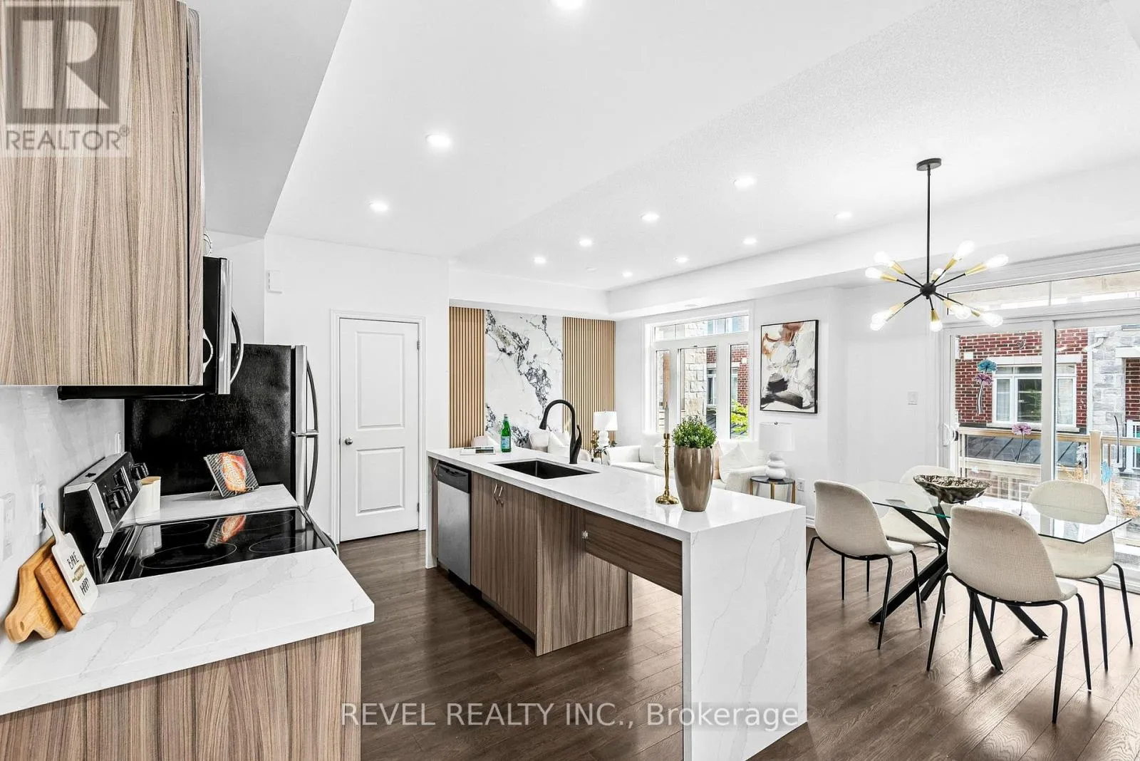 Brock & Taunton Welcome to 2621 Garrison Crossing in Pickering's sought-after Duffin Heights! This spacious end-unit townhome, just under 1,400 sq. ft. above grade plus a finished lower level, featuring 3 bedrooms, 2 bathrooms, and premium upgrades throughout. Enjoy all hard-surface flooring, solid oak stairs, 9 smooth ceilings, designer lighting, and custom window coverings. The gourmet kitchen boasts extended shaker cabinetry, stainless steel appliances, composite under mount sink, and an oversized island with breakfast bar. The open-concept living/dining area walks out to a balcony, while the primary suite features its own private balcony, walk-in closet, and upgraded ensuite. The finished ground level with garage access provides versatile space for a home office, gym, or family room. Located minutes from parks, schools, shopping, transit, golf, and conservation areas, this turn-key home offers low-maintenance living at its best. (id:27476)