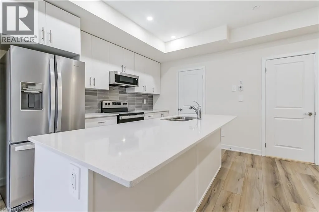 Exit 401 at Whites Road, north 1 block to Kingston, east 1 block to Delta and north past the Tim Horton's around the back to the right to surface level visitor parking. Welcome to modern living in the heart of Pickering at a price you can afford! This brand-new, contemporary townhome offers over 1,100 square feet of thoughtfully designed living space, complete with soaring 9-foot ceilings on the main floor, creating a bright and open ambiance. The upgraded kitchen is a culinary masterpiece, featuring sleek quartz countertops, premium stainless steel appliances, and a stunning island perfect for gatherings. A separate pantry space enhances the kitchenâs functionality, providing ample storage to meet all your needs. The open-concept layout seamlessly connects the kitchen, dining, and living areas, making it perfect for entertaining or relaxing with loved ones. The upper floor boasts two generously sized bedrooms, including a luxurious primary suite with its own private ensuite bathroom for ultimate comfort and convenience. A second full bathroom on this floor accommodates family or guests, while a powder room on the main floor adds an extra layer of functionality. Step outside and enjoy two private balconiesâone on each floorâideal for morning coffee or evening relaxation. This home also includes a secure underground parking space. Located just steps from urban amenities, public transit and one minute from the 401, this townhome offers a perfect balance of modern convenience and prime accessibility. Donât miss your chance to make this stunning property your new home! (id:27476)
