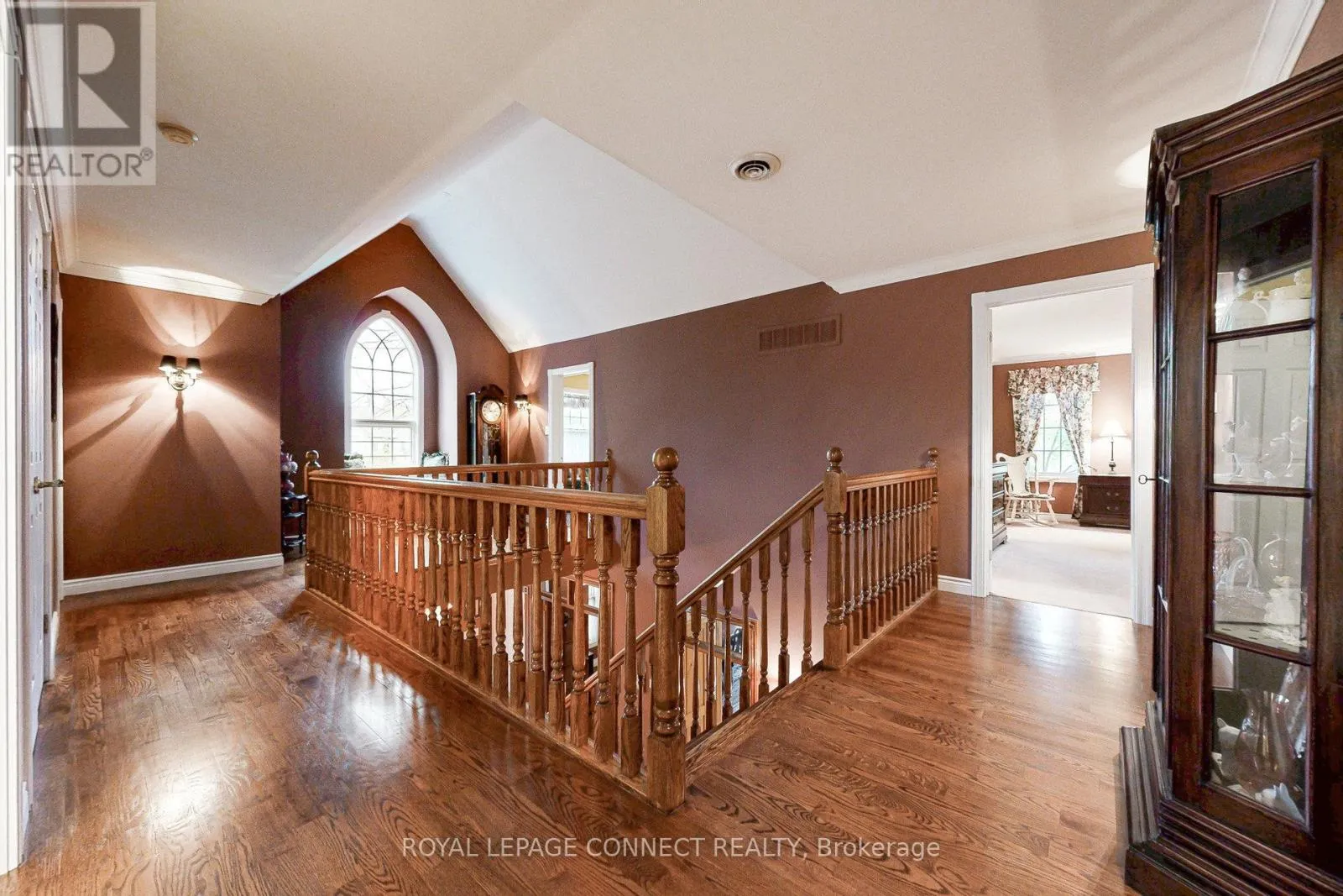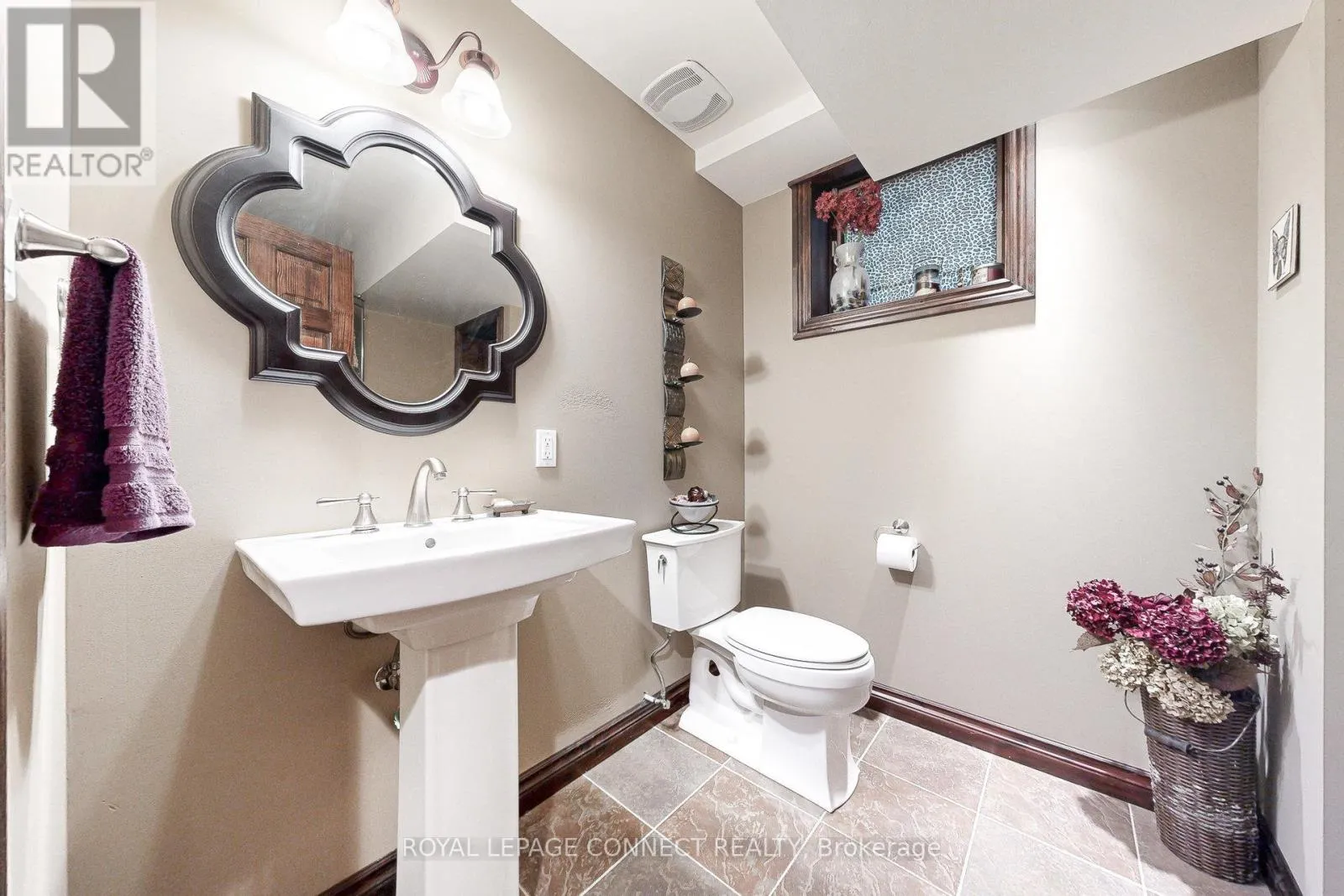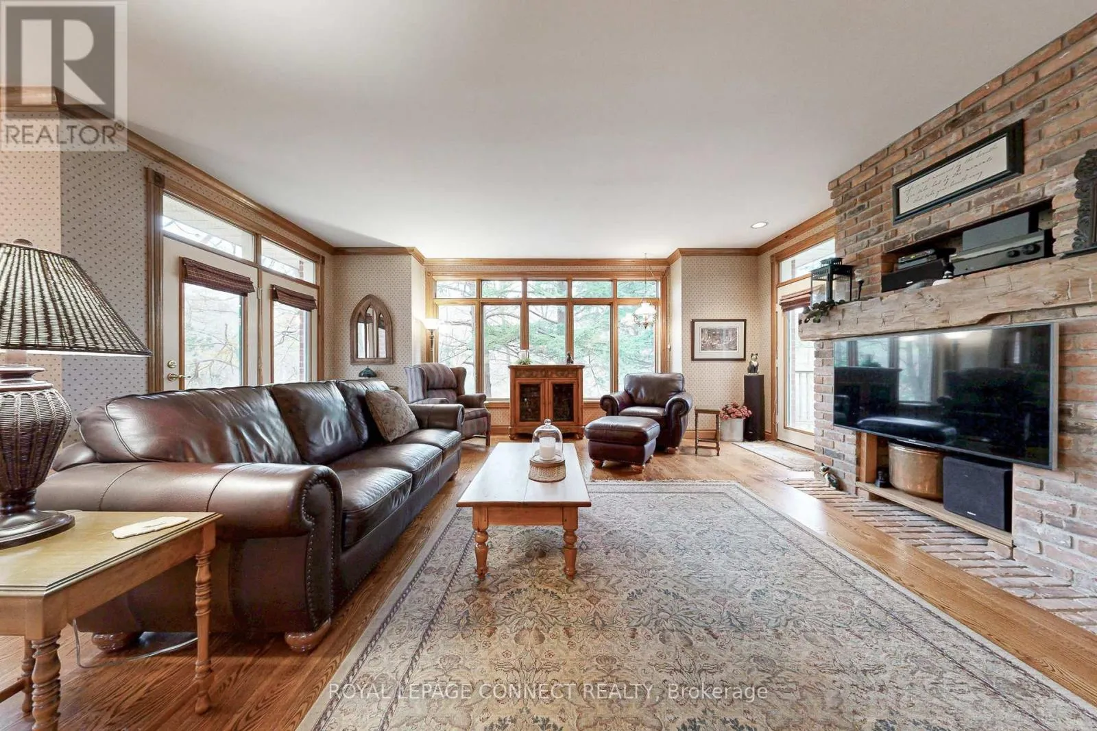 Rosebank Road and Kingston Road Welcome to this custom built, Victorian farmhouse-style home on a double premium lot backing onto tranquil Petticoat Creek in one of Pickering's most desirable neighbourhoods. This 4 bedroom, 2 storey home features an inviting wrap-around porch that offers the perfect place to relax and unwind. Walking through the front door, the magnificent wooden staircase rises before you & is banked by the formal living and dining rooms. It is the ideal space for entertaining, featuring hardwood floors, detailed millwork & high ceilings. The hallway leads to an open-concept kitchen & family room to expand your entertaining area & forms the heart of the home. The large windows showcase the lush ravine & fill the space with natural light. The double-sided fireplace adds warmth & charm throughout the area & into the adjoining den. Accessible from the family room is the main floor laundry room, which provides access to outside. Upstairs, 4 spacious bedrooms provide comfort & privacy. The primary suite offers a serene retreat with a large walk-in closet, ensuite bath & a ravine view. A unique feature of the 2nd floor is a linen closet with a laundry chute to the laundry room. Downstairs is a large entertainment room featuring a walk out to the ravine & accommodates a pool table, games table, a comfortable area to watch TV & an area ready for a bar of your design. This level also has a laundry room, 3 pc washroom, a room for crafting & relaxing, a storage room & a workroom, with sink & additional storage. Outdoors, the property continues to impress with an oversized detached 2 car garage, mature trees & a large private yard for relaxation & entertaining while listening to the gentle sounds of Petticoat Creek. Located close to parks, trails, library, schools, transit, shopping, & only minutes from Toronto, this home offers a rare blend of natural beauty, privacy, & convenience. A perfect balance of Victorian farmhouse elegance & modern living - truly a place to call home. (id:27476)