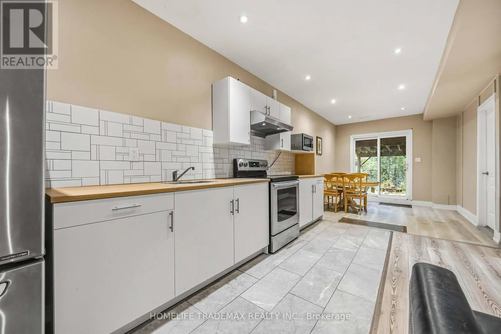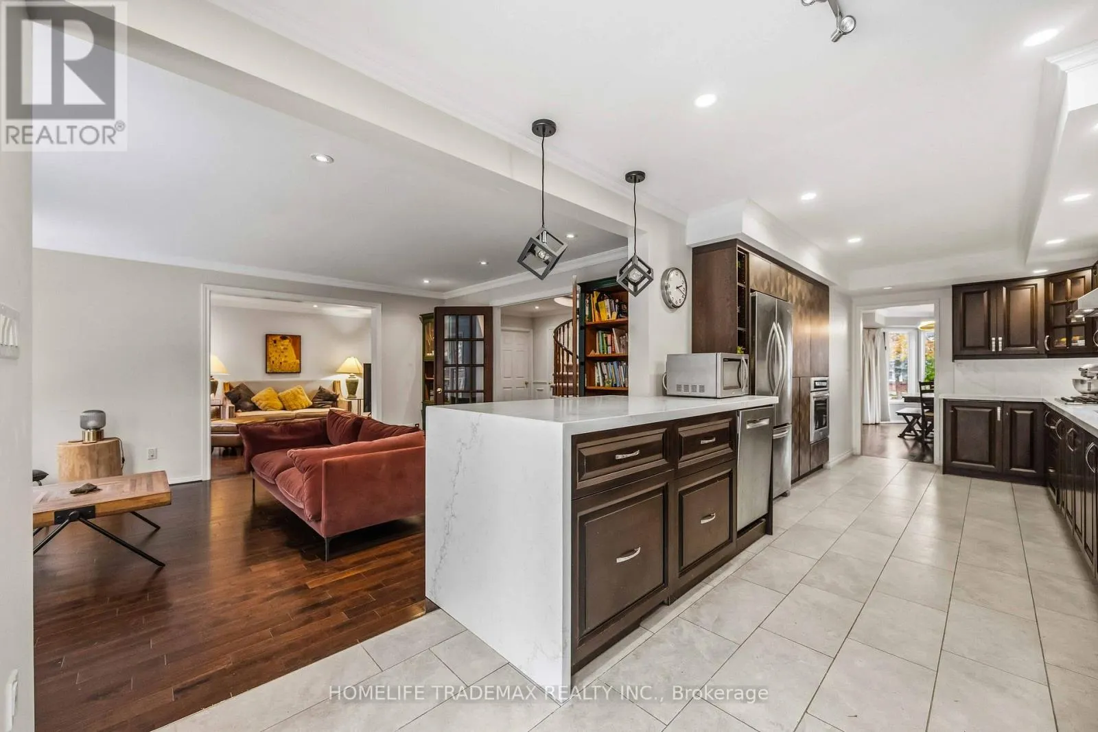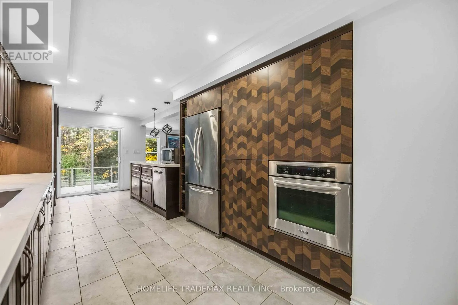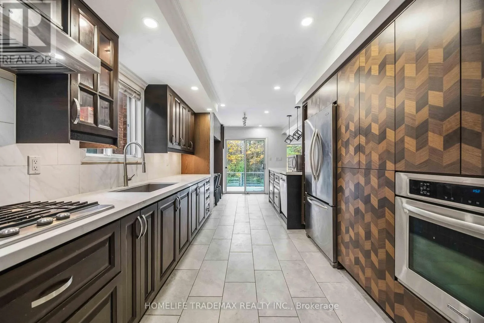 Finch Ave & Fairport Rd Tucked on a quiet court, this sought-after John Boddy-built home backs onto a private, treed ravine with sunny south exposure, offering a serene nature retreat. A double-door entry opens to a sunken foyer and an airy open-concept layout. The front living room features a bay window, and the bright, newly upgraded eat-in kitchen with island walks out to an oversized deck and secluded ravine-facing yard, ideal for relaxing or entertaining. The great room includes pot lights and a cozy fireplace and connects to a large versatile room perfect for dining, office, or playroom. A spiral staircase with skylight leads to 5 spacious bedrooms. The primary suite overlooks the ravine and includes a walk-in closet, double closet, and 5-piece ensuite. The walkout lower level offers a new full kitchen, 3 bedrooms, and direct yard access, providing excellent space for extended family, guests, or recreation. With a nature-facing backyard, perfect for a serene summer evening drink or a busy BBQ party . Large windows fill the home with natural light throughout. (id:27476)