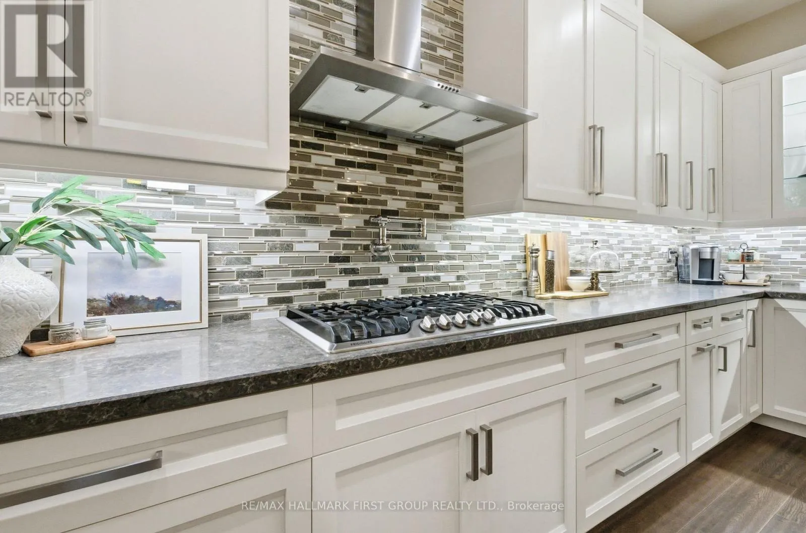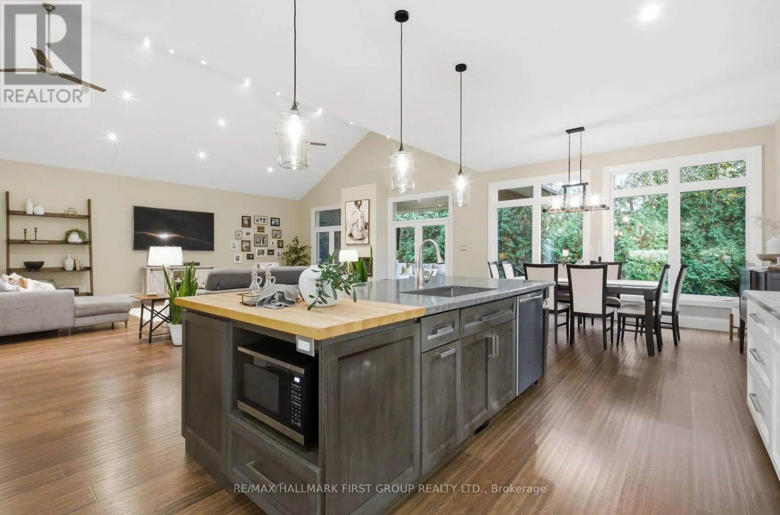 Dixie Rd & Glenanna Rd A rare offering in central Pickering-this custom-built bungalow blends timeless architecture with modern luxury, steps from one of the city's top-rated elementary schools. From the moment you walk in, soaring 10ft ceilings and a dramatic 15ft vaulted great room set an unmistakably upscale tone.The open-concept layout delivers over 2,500sqft of refined main-floor living, perfectly suited for both large families and sophisticated downsizers who value space and comfort.The kitchen stands as the home's showpiece-a true chef's haven featuring quartz countertops, premium stainless-steel appliances, b/i double ovens, a gas range with pot filler, butcher-block island with prep sink, and a dedicated wine fridge.The living space extends outdoors through dual French door walkouts to a covered patio complete with illuminated glass railings, a mounted TV, designer fan, and a privacy screen, creating an effortless indoor-outdoor lifestyle.The bedroom wing offers serene luxury, including custom closets throughout and a primary suite with a spa-like ensuite showcasing an oversized glass shower, sculptural soaker tub, and a brilliantly designed walk-through dressing room that connects to a second bedroom-perfect for a nursery or home office.A floating staircase leads to the expansive 9ft high lower level, designed with remarkable versatility.Here you'll find a large rec area, wet bar, two additional bedrooms, three bathrooms, and two impressive bonus rooms-including an 800sqft room beneath the garage ideal for a gym, theatre, or storage.A second private entrance accesses a dedicated lower-level suite currently used as a salon-ideal for a home-based business or future kitchen/in-law suite.Completing the home is a heated garage with oversized doors, adding to the thoughtful functionality throughout this meticulously crafted property.Opportunities like this don't come often.Schedule a private tour and see firsthand why this home stands in a class of its own. (id:27476)