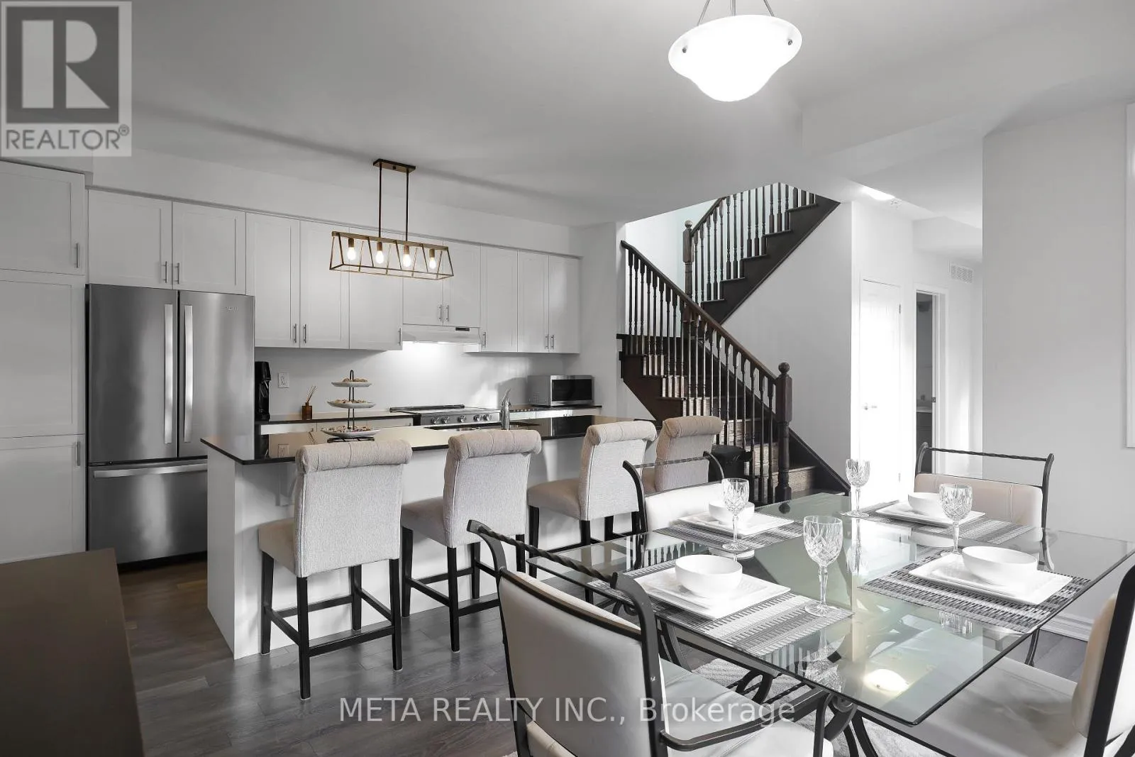 Cross Streets: Taunton Rd and Burkholder Dr. ** Directions: Head east on Taunton Rd, turn right onto Burkholder Dr, then take the first right to Dragonfly Ave. Turn right onto Dormer Ave. The destination is on your right in the second row of stacked condos. Welcome to this rarely offered 1,794 sq. ft. premium stacked condo townhome in Pickering's sought-after Seaton community. This corner unit offers a functional 3-bedroom plus den and 3 bathrooms, thoughtfully upgraded for modern comfort, generous living space, and exceptional commuter convenience. Main floor features an inviting open-concept design with 9ft ceilings that create a bright, airy atmosphere. The upgraded kitchen stands out with its large island, stainless steel appliances, contemporary cabinetry, and ample storage-ideal for daily living and entertaining. This space flows into the dining and living areas and opens to a private balcony. A rare main-floor bedroom with a walk-in closet provides valuable flexibility for guests or multi-generational living. Main floor also features a den currently setup as an office, offering privacy for remote work or study. The upper level includes two spacious bedrooms, each with a private ensuite and walk-in closet. The primary suite offers dual walk-in closets. A dedicated laundry room with a sink and storage enhances functionality, and a second private balcony completes the floor. The property is minutes from Highways 401, 407, 412, and the Pickering GO Station, ensuring seamless connectivity across the GTA. With highly rated public schools nearby, this neighbourhood offers an ideal environment for your children to learn and grow. Grocery stores, parks, and scenic trails are all close by, with the Seaton community continuing its strong growth. Additional upgrades include smart lighting controls, an Ecobee smart thermostat, premium main-floor lighting, and efficient under-stair storage. Parking features an EV-ready garage plus a private driveway. Condo fees cover snow removal for pathways and roads, contributing to low-maintenance living. This turnkey home blends contemporary design, functional enhancements, and an unbeatable location-offering an excellent opportunity in one of Pickering's most desirable communities. (id:27476)