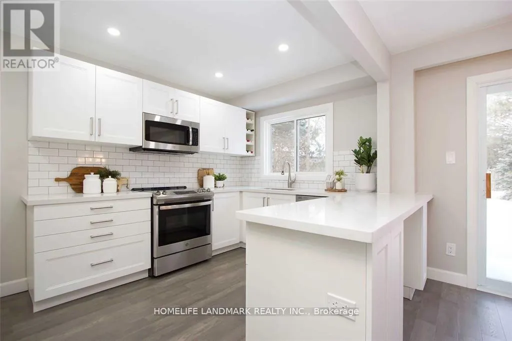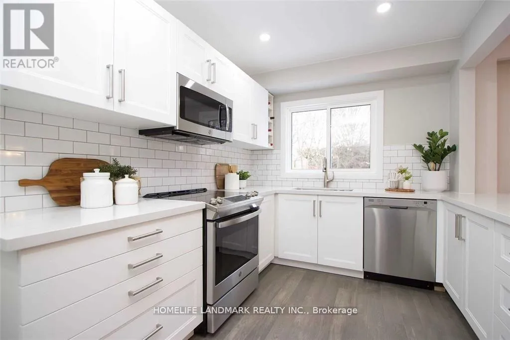 Cross Streets: Mulmur Crt & Bowler Dr. ** Directions: South. Beautifully updated home that feels like a detached, connected only by the garage. Located on a quiet court beside a park and playground, this property offers a rare combination of privacy and convenience. The large pie-shaped lot features a private backyard, perfect for families or entertaining.Fully renovated from top to bottom, the main floor showcases engineered hardwood, a modern kitchen with brand-new stainless-steel appliances, quartz countertops, a breakfast bar, and an open view to the formal dining area with a walk-out to the deck.Upstairs, you'll find four generous bedrooms, including two with access to a balcony. One bedroom can easily function as a family room or home office.This home sits at the quiet end of the court, right beside green space, offering a peaceful and family-friendly setting. (id:27476)