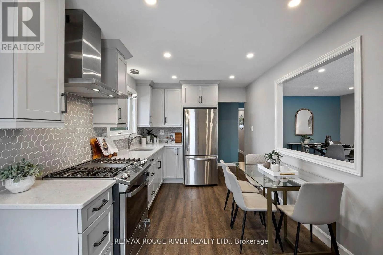 West Shore/Bayly This beautiful, spacious, bright, semi-detached bungalow has a legal basement apartment and is move-in ready! This home offers lots of versatility and possibilities for the future. It's a great home for first time buyers, empty nesters, or as a home to share with extended family or adult children. The main floor has a renovated kitchen overlooking the sun-filled living and dining room, three bedrooms and a renovated four-piece bathroom. The basement has a separate entrance and a lovely one-bedroom apartment with a renovated kitchen, a renovated bathroom and its own private washer and dryer. The basement also has an additional finished area with a bedroom, games room, a workshop and another separate laundry area with a washer and dryer that can be used by upstairs residents. The backyard is fully enclosed with a shed, a side patio and another patio with a gazebo. There is a lovely front entranceway with a sitting area and parking for multiple vehicles. This home has fantastic curb appeal! Other features include dimmable pot lights, stainless steel appliances, hard wearing vinyl floors and plenty of closet space! Use the legal basement apartment to help pay down the mortgage or use the entire basement for yourself. It's always good to have the basement apartment as a source of income if needed in the future! This home is spotlessly clean and has been meticulously maintained. Located in sought after West Shore, it is Steps to Lakefront and Conservation Area Parks and trails with easy access to the 401, Go Train, Shopping, Recreation Complex, Library and Schools (Public, Catholic and French Immersion). (id:27476)