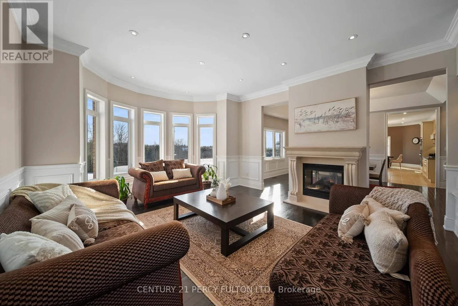 Brock Rd & 9th Concession Rd Welcome to an extraordinary custom estate in the heart of Claremont-one of Pickering's most exclusive and tightly held communities. Set on a private lot just under 1 acre at the end of a prestigious court, this 7,956 SF residence offers unmatched scale, privacy, and refined living. Nearly $450,000 in recent renovations elevate the property, including a newly constructed crescent driveway accommodating up to 20 vehicles, an oversized 4-car garage with upgraded doors, professional landscaping, and two tiers of custom decks with glass railings and privacy screening overlooking the expansive grounds.Inside, timeless architecture is paired with modern luxury. The main level showcases wainscoting, custom millwork, and an executive office with hand-built shelving. An oversized chef's kitchen anchors the home with extensive cabinetry and prep space, seamlessly connecting to the family and dining rooms through a dramatic double-sided stone gas fireplace. Four generous bedroom suites-each with its own private ensuite-provide exceptional comfort, while the primary suite offers a grand retreat with a luxurious 7-piece spa bath and extensive closet space.The lower level redefines expectations, offering over 4,000 SF of bright, above-grade-feeling space with high ceilings, wall-to-wall windows, and large bedroom suites ideal for extended family or multi-generational living. An additional unfinished area of nearly 1,000 SF allows endless possibilities for a future suite, gym, studio, or workshop.Located in a tight-knit, family-friendly enclave surrounded by scenic trails, parks, and everyday amenities, and minutes to Old Elm GO and Hwy 407, this estate delivers exceptional craftsmanship, space, and lifestyle in one of Durham Region's most coveted neighbourhoods. (id:27476)
