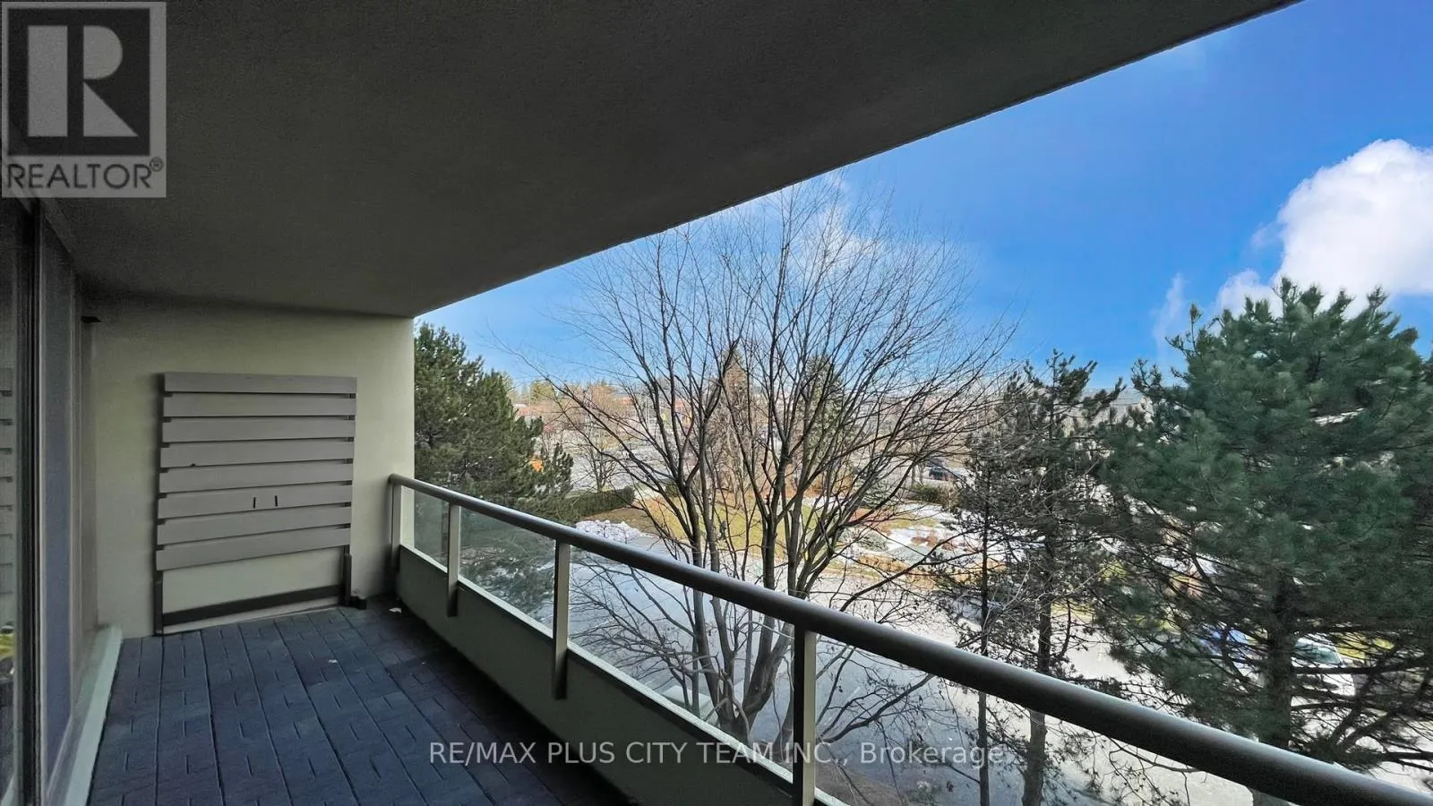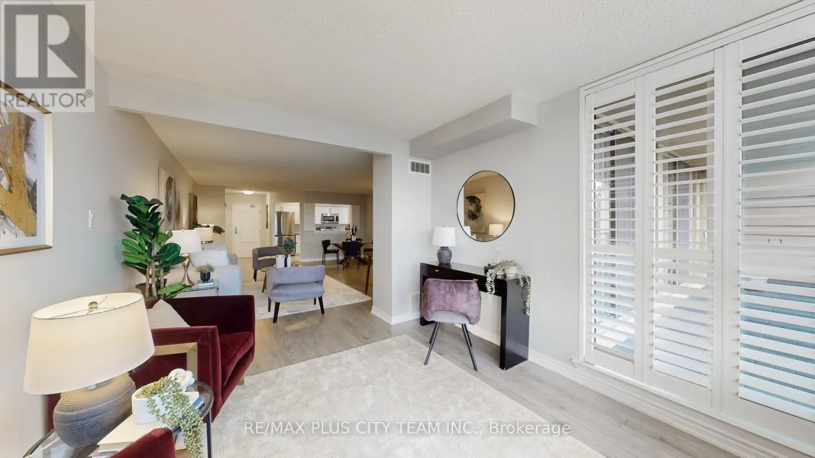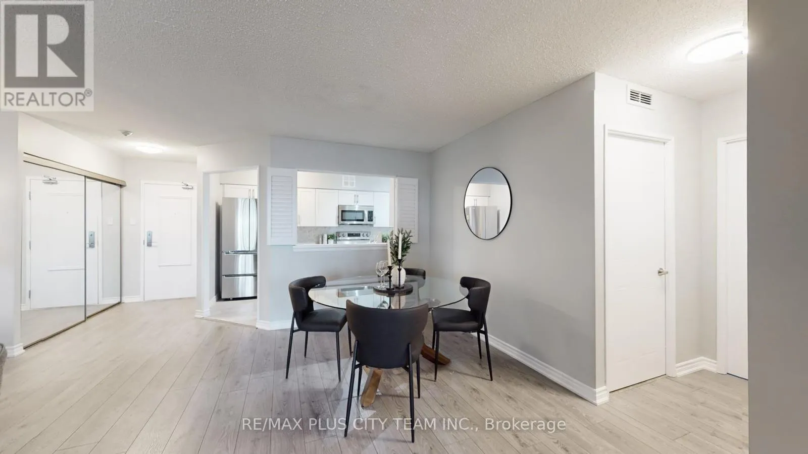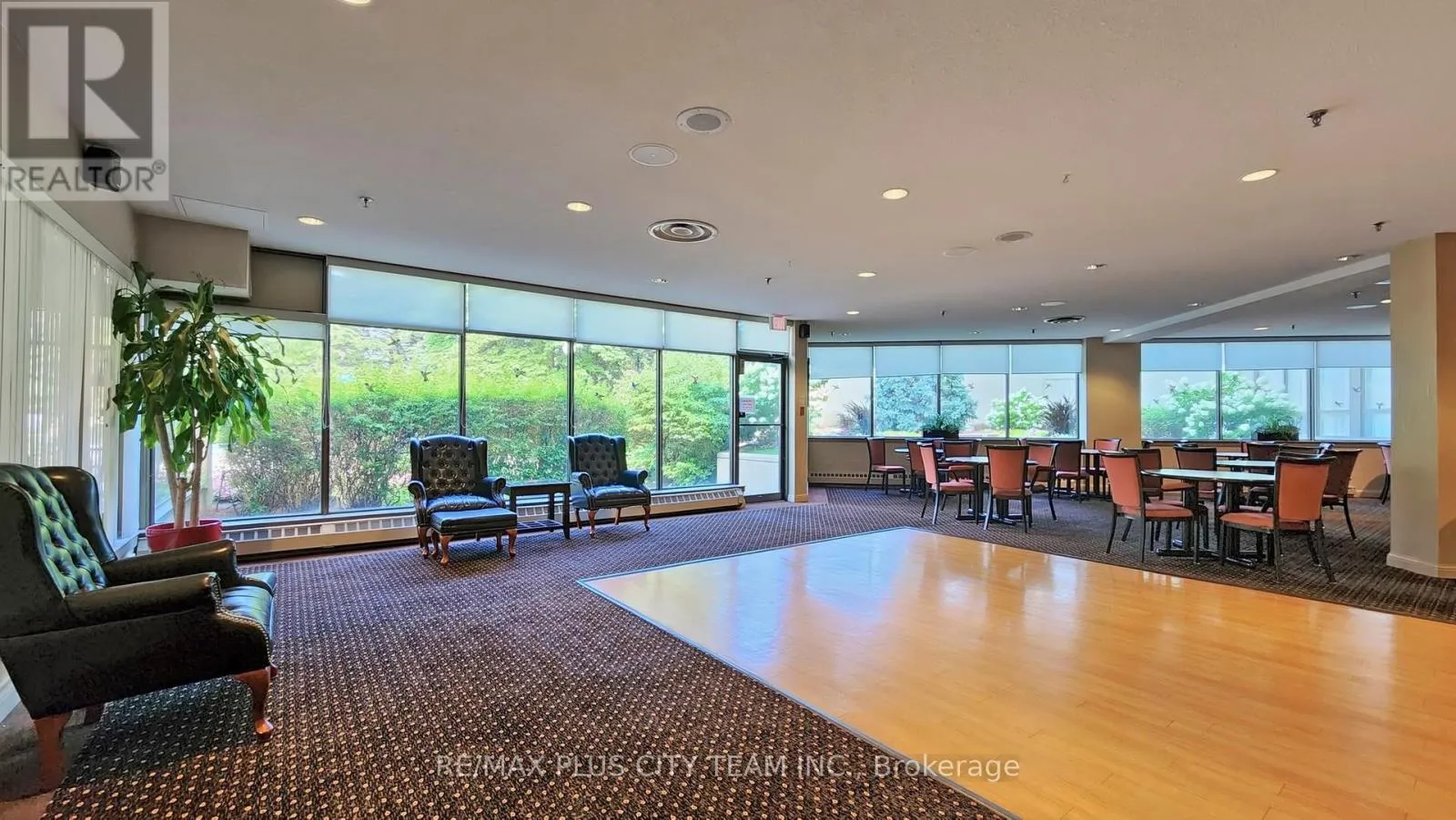 Kingston/Valley Farm Welcome to Discovery Place by Tridel. This 2-bedroom plus den, 2-washroom suite offers approximately 1,200 sq. ft. of thoughtfully designed living space. The bright living and dining area features large windows that fill the room with natural light and a walkout to a private balcony, creating a welcoming space for relaxing or entertaining. The kitchen is separate from the main living area, providing a functional, defined cooking space complete with stainless steel appliances, ample cabinetry, and generous counter space. The primary bedroom includes a double mirrored closet and a 3-piece ensuite, while the second bedroom features French doors and a walkout to the large balcony. The den is perfect for a home office or a cozy nook. In-suite laundry with extra storage and two owned parking spaces adds everyday convenience. Residents enjoy an impressive array of amenities, including 24-hour gated security, indoor and outdoor pools, tennis and squash courts, party and meeting rooms, a fitness centre, games room, and library. Ideally located steps from Pickering Town Centre, restaurants, parks, and public transit, with quick access to the GO Station, Highway 401 and 407, and scenic waterfront trails. (id:27476)