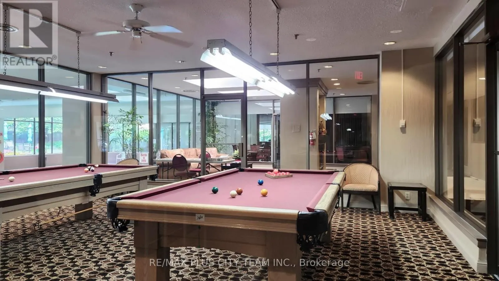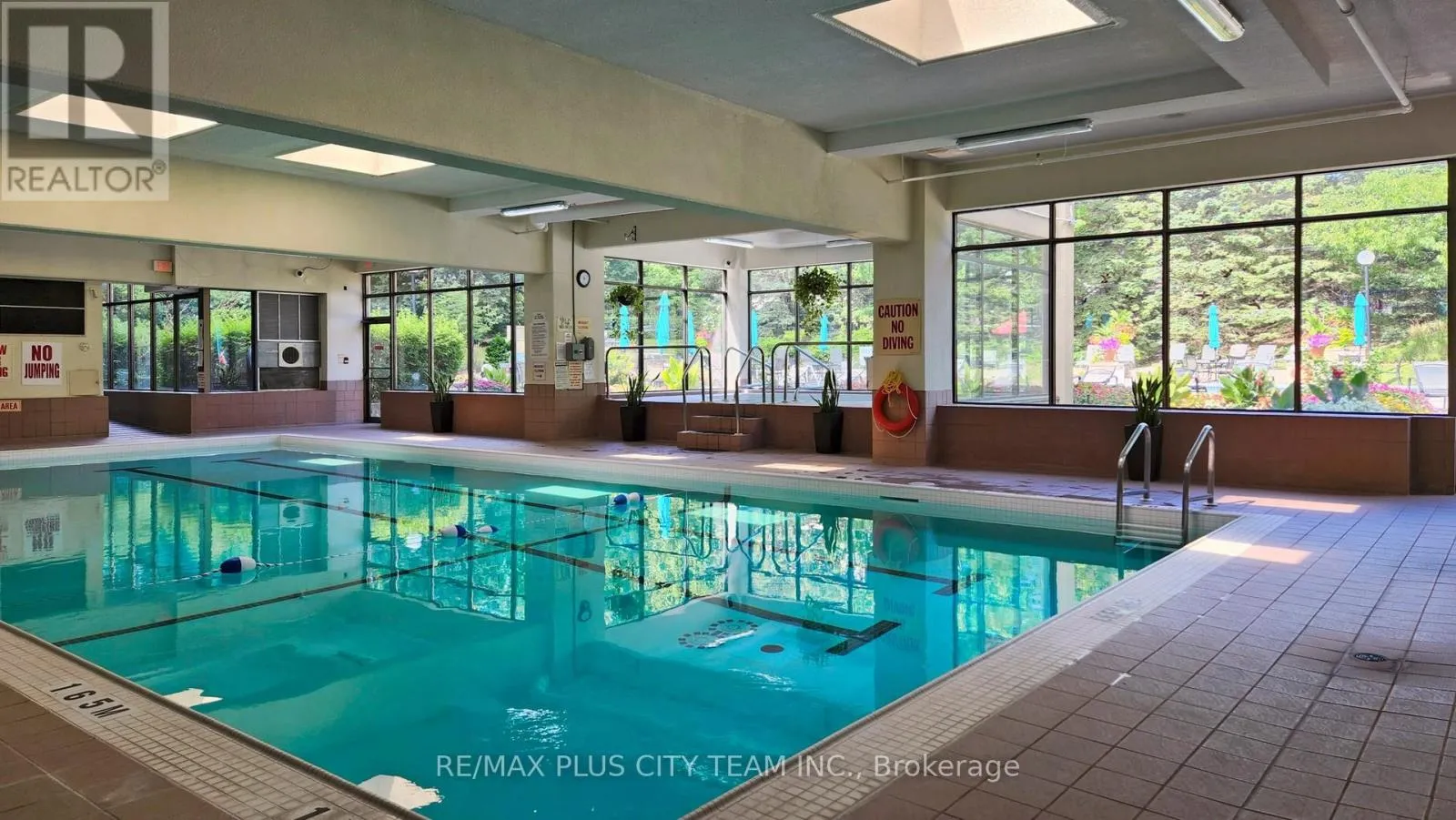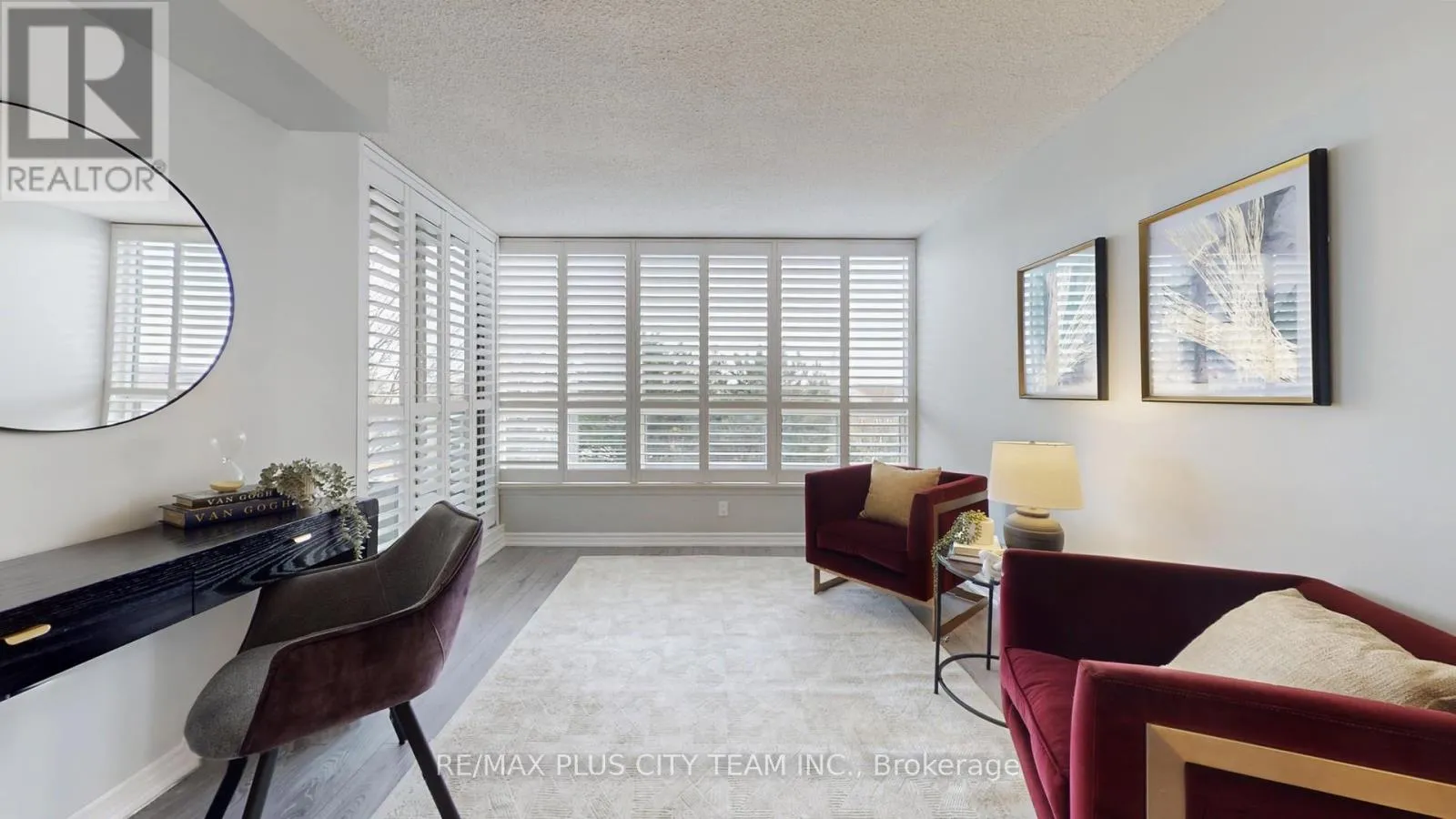 Kingston/Valley Farm Welcome to Discovery Place by Tridel. This 2-bedroom plus den, 2-washroom suite offers approximately 1,200 sq. ft. of thoughtfully designed living space. The bright living and dining area features large windows that fill the room with natural light and a walkout to a private balcony, creating a welcoming space for relaxing or entertaining. The kitchen is separate from the main living area, providing a functional, defined cooking space complete with stainless steel appliances, ample cabinetry, and generous counter space. The primary bedroom includes a double mirrored closet and a 3-piece ensuite, while the second bedroom features French doors and a walkout to the large balcony. The den is perfect for a home office or a cozy nook. In-suite laundry with extra storage and two owned parking spaces adds everyday convenience. Residents enjoy an impressive array of amenities, including 24-hour gated security, indoor and outdoor pools, tennis and squash courts, party and meeting rooms, a fitness centre, games room, and library. Ideally located steps from Pickering Town Centre, restaurants, parks, and public transit, with quick access to the GO Station, Highway 401 and 407, and scenic waterfront trails. (id:27476)