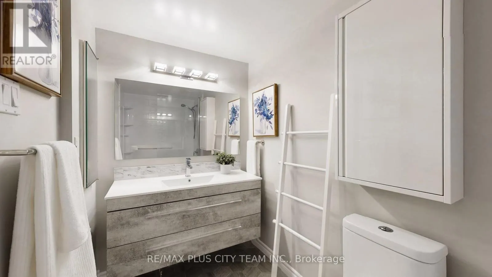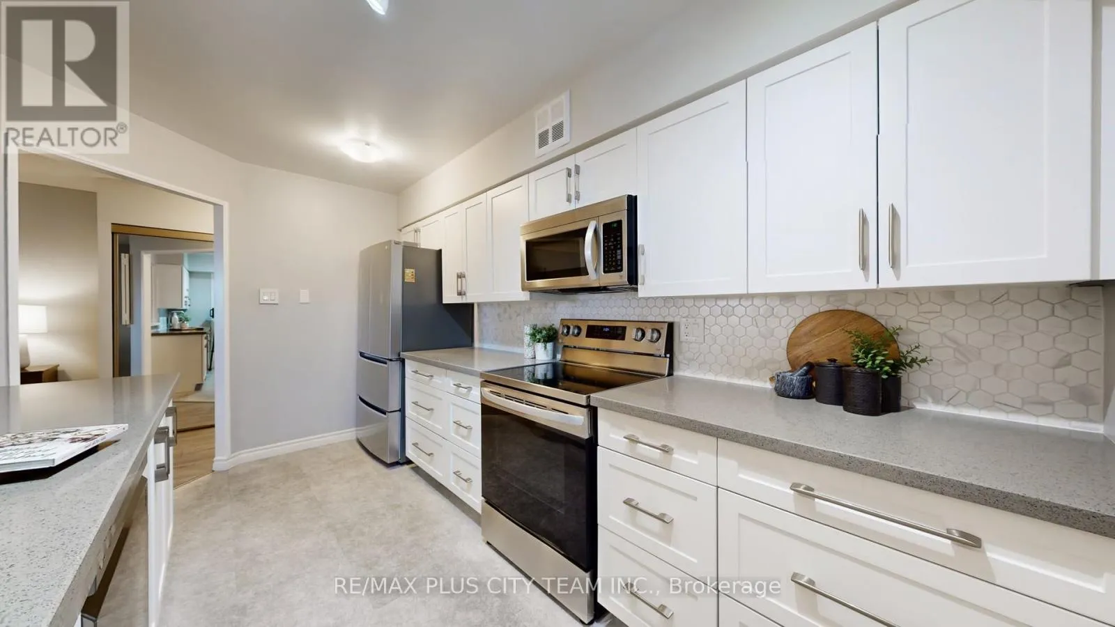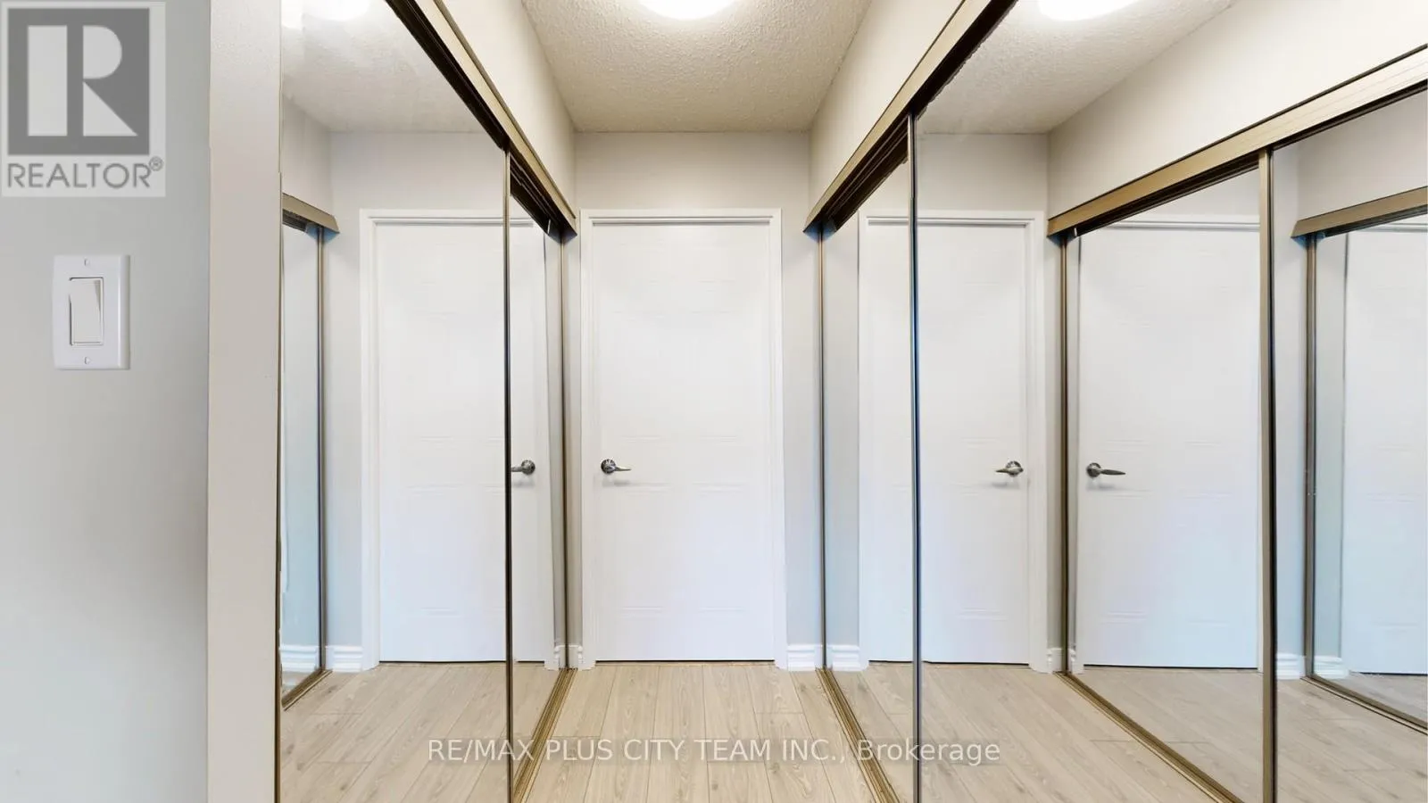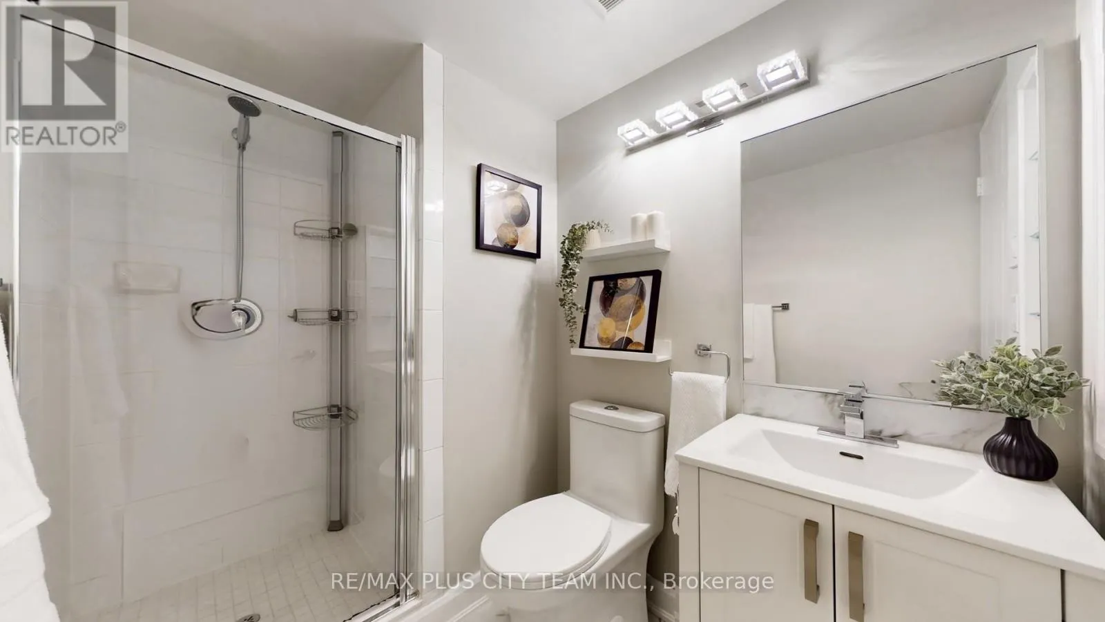 Kingston/Valley Farm Welcome to Discovery Place by Tridel. This 2-bedroom plus den, 2-washroom suite offers approximately 1,200 sq. ft. of thoughtfully designed living space. The bright living and dining area features large windows that fill the room with natural light and a walkout to a private balcony, creating a welcoming space for relaxing or entertaining. The kitchen is separate from the main living area, providing a functional, defined cooking space complete with stainless steel appliances, ample cabinetry, and generous counter space. The primary bedroom includes a double mirrored closet and a 3-piece ensuite, while the second bedroom features French doors and a walkout to the large balcony. The den is perfect for a home office or a cozy nook. In-suite laundry with extra storage and two owned parking spaces adds everyday convenience. Residents enjoy an impressive array of amenities, including 24-hour gated security, indoor and outdoor pools, tennis and squash courts, party and meeting rooms, a fitness centre, games room, and library. Ideally located steps from Pickering Town Centre, restaurants, parks, and public transit, with quick access to the GO Station, Highway 401 and 407, and scenic waterfront trails. (id:27476)