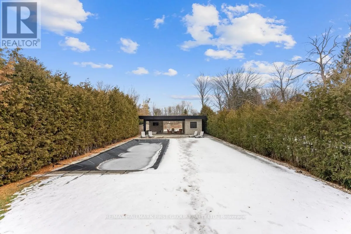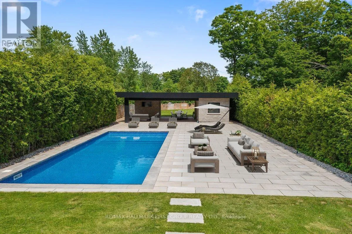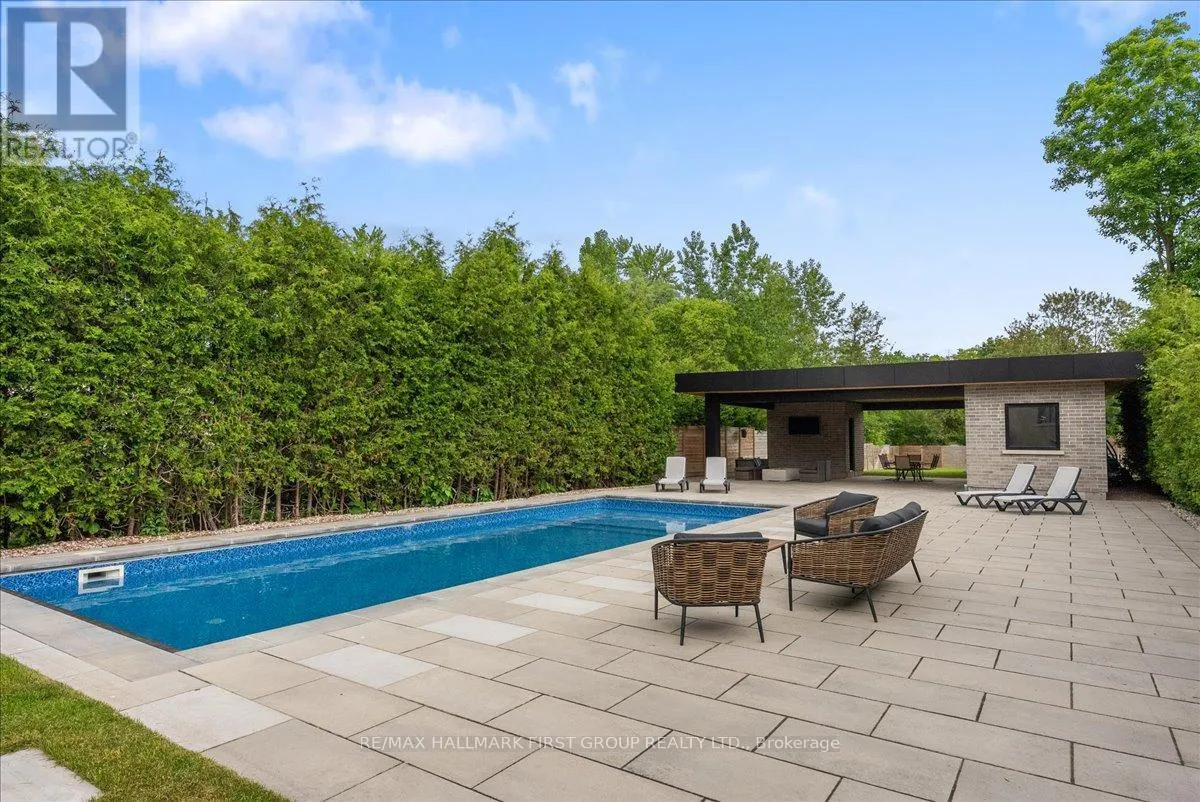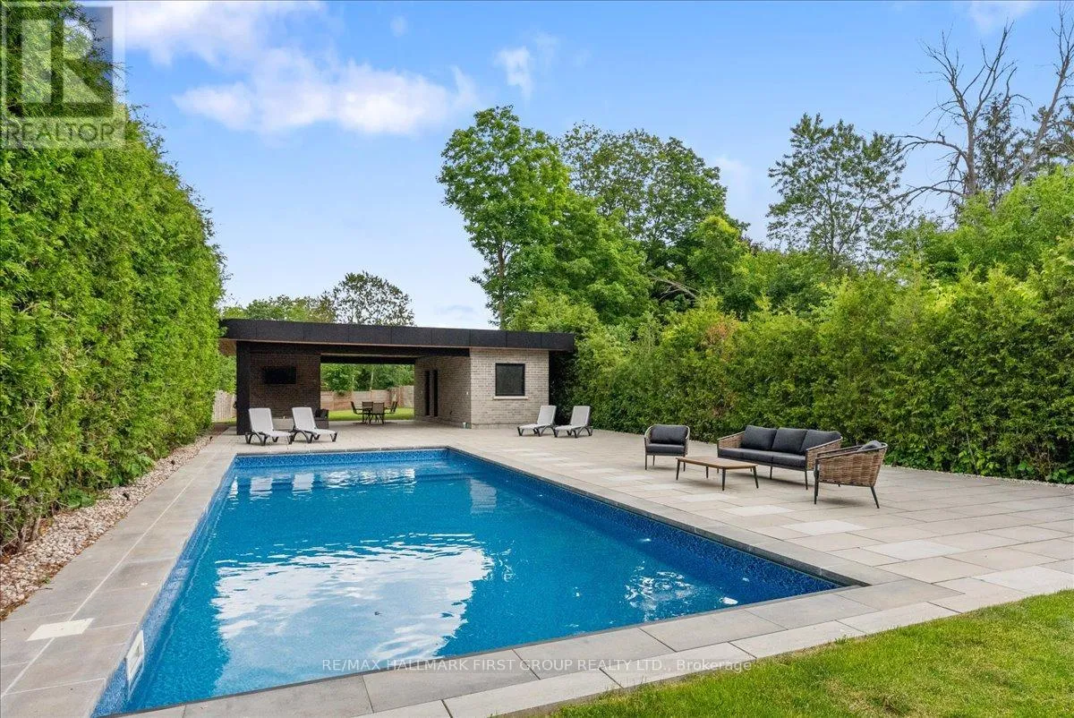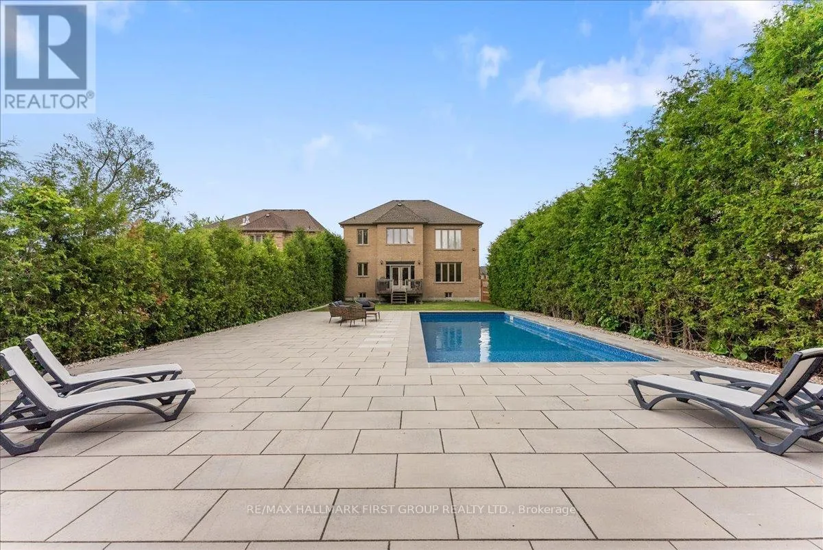 Altona / Sheppard Welcome to this spectacular custom executive home, nestled on a RARE 374FT DEEP PREMIUM LOT offering ultimate privacy and serenity. Surrounded by trees and fully fenced, the professionally landscaped backyard is a true oasis featuring over $200K in recent upgrades. Enjoy resort style living with an INGROUND SALTWATER POOL with automatic cover, expansive patio, and stunning covered cabana with pot lights and gas lines ready for your firepit and BBQ. Whether you're entertaining guests or enjoying a quiet evening outdoors, the large grassy area and ambient lighting create the perfect setting. Inside, enjoy luxury finishes throughout, including hardwood floors, smooth ceilings with elegant crown moulding, pot lights, and generously sized rooms. The gourmet eat-in kitchen boasts stainless steel appliances, a center island with breakfast bar, a butlers pantry with prep sink, walk-in closet, and ample storage. The great room features soaring ceilings, and the main floor includes a private office. Upstairs, the primary suite offers double-door entry, vaulted ceilings, a 6-piece spa-like ensuite, and his/her walk-in closets. Oversized secondary bedrooms come with ensuites or semi-ensuites. Additional highlights include a balcony library/piano room and an unspoiled basement ready for your personal touch! With a spacious double car garage and third tandem spot, this home truly has it all - just minutes to the 401, the GO Station, shopping, restaurants, schools, and parks. (id:27476)