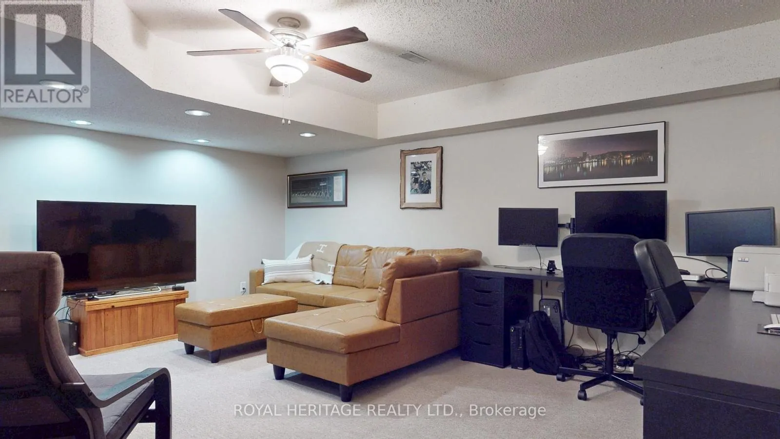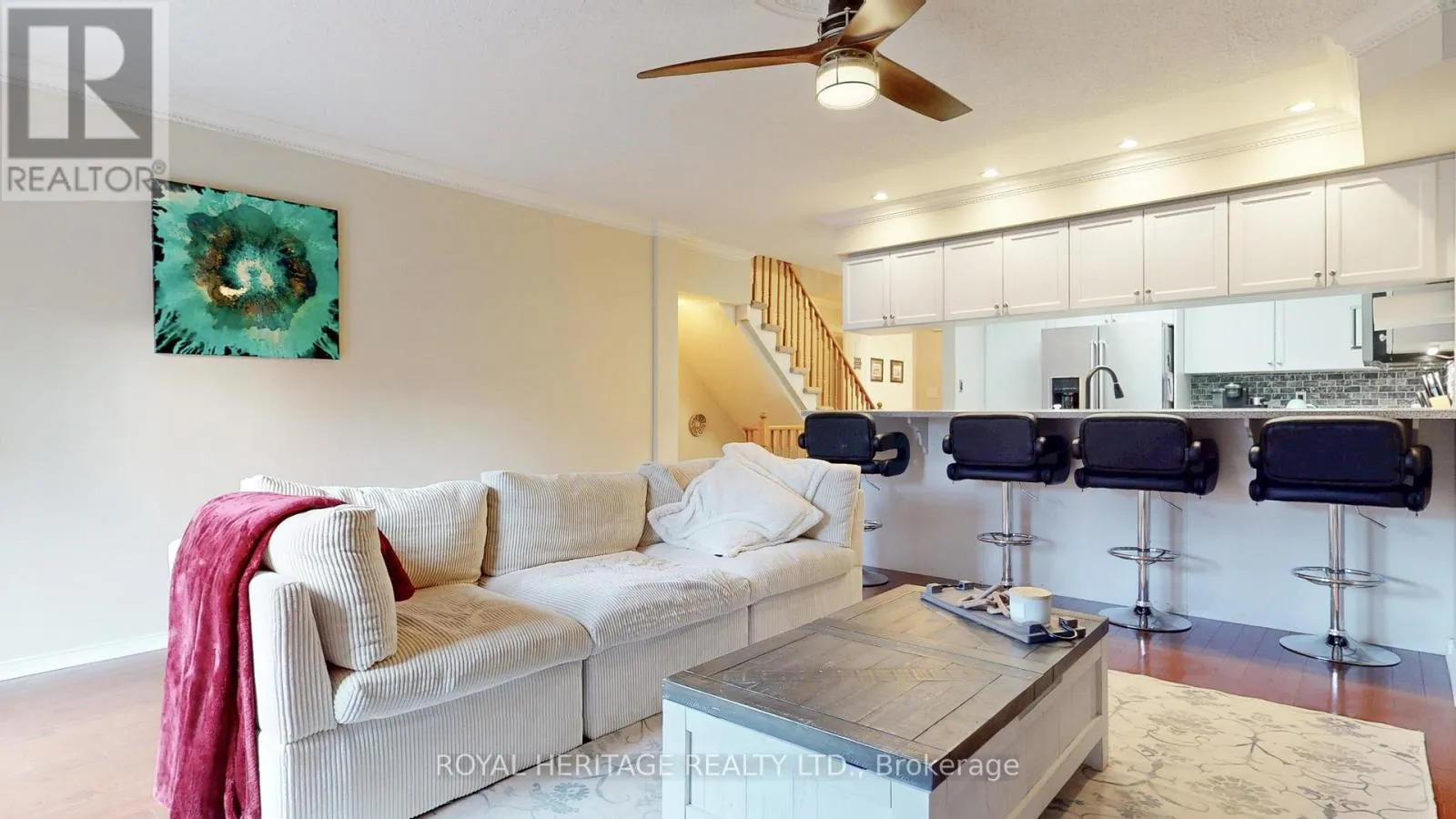 Cross Streets: Finch Ave & Brock Rd. ** Directions: Brock Rd To Hwy 2 to Royal Rd. This outstanding executive townhouse with parking for 2 is ideally situated in the best block of Chateau By The Park. Built by Coughlan Homes & Spanning over 2,000 square feet across three generous floors plus a finished basement, the home features an open-concept main level with a formal dining room, a well-equipped kitchen and a family room complete with a gas fireplace. French doors open to a private west-facing deck, perfect for entertaining or unwinding. Upstairs, the second floor offers two large bedrooms-one with two walk-in closets & a four-piece bathroom, and a convenient laundry room. The entire third floor is dedicated to the luxurious primary bedroom suite, boasting a sitting area, a four-piece ensuite, his and hers closets, and a juliette balcony. The lower level provides a spacious recreation area, ample storage, a two-piece bathroom, and direct access to heated underground parking with two side-by-side spots at the door and an additional spot close by. Water tap for washing your car. Kitchen-Aid kitchen appliances are still under warranty, and recent upgrades include new two pc baths. Every level features a bathroom, and the property has very low annual heating and hydro costs. The complex is well maintained with all exterior maintenance-roof, doors, decks, tree replacement, and grass cutting-handled for you, supported by a large reserve fund for ongoing upkeep. Residents enjoy a range of amenities, including Rogers Xfinity cable, high-speed internet, water, parking, snow removal, landscaping, and exterior window maintenance included in the condo fees. The community offers a newly renovated party room for gatherings and a private mailroom for convenience, as well as abundant visitor parking and easy access to transportation and shopping, including quick entry to Highway 401. This well-appointed home presents a unique opportunity for spacious, comfortable, and maintenance-free living in a prime location. Be sure to click through the virtual tour. (id:27476)